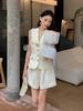 Verano Ropa Nueva para Mujer Lino Sin Mangas Top Ajustado Solapa Cárdigan Shorts Cintura Alta Look Delgado Piernas Largas Traje