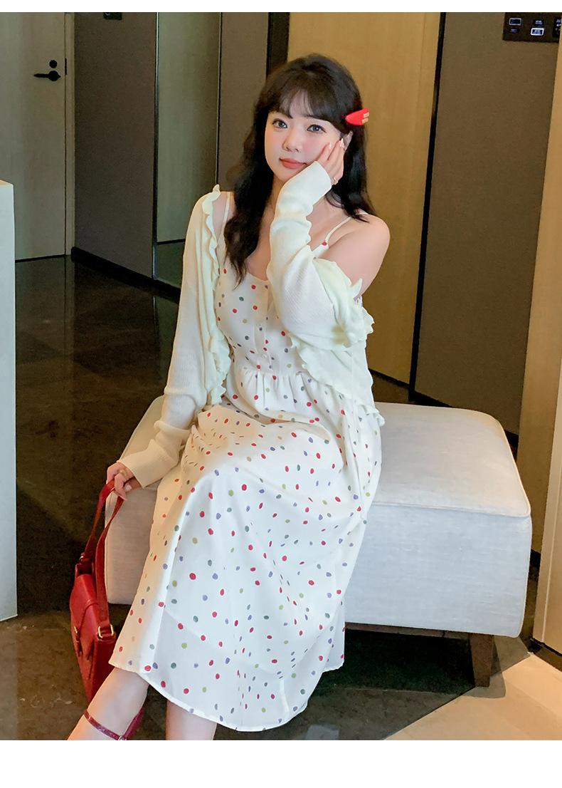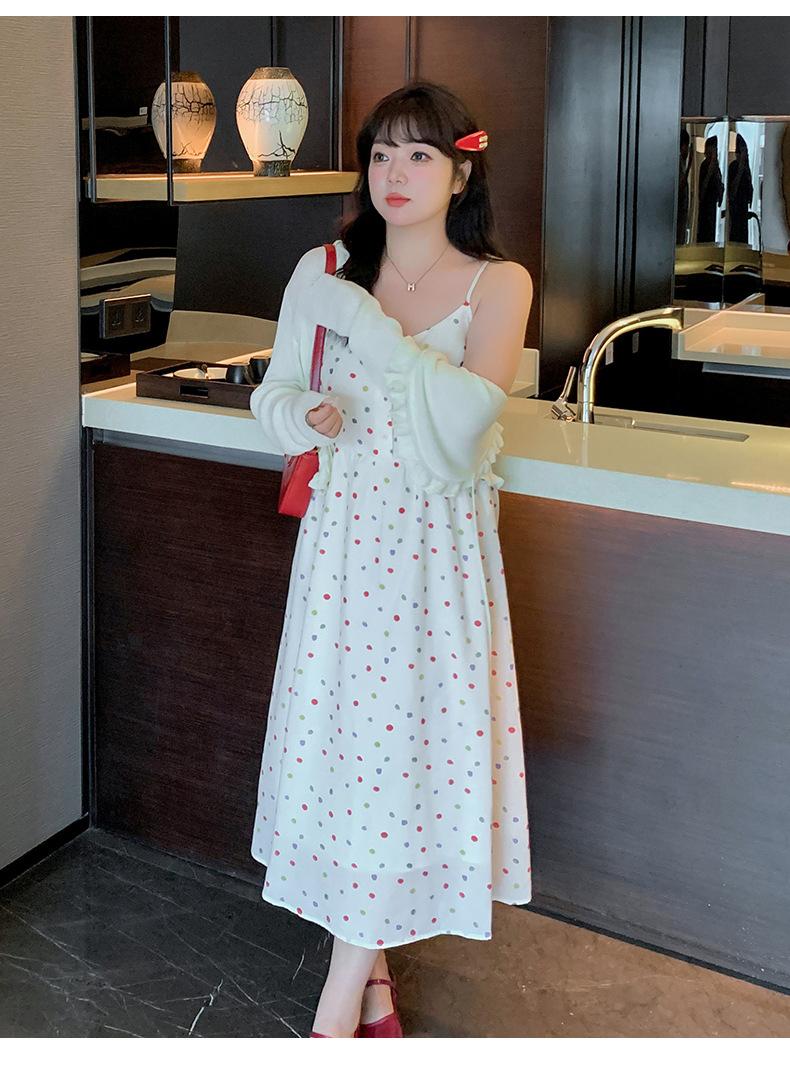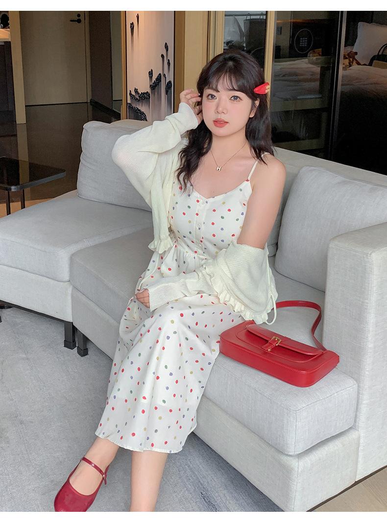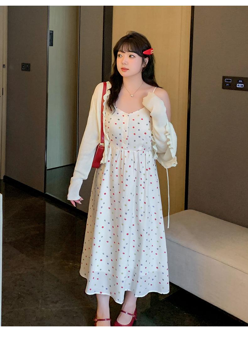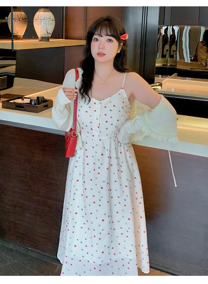 Inno Talla Grande Vestido de Lunares de Color Contrastante para Mujer Verano Nuevo Temperamento Hermanas Falda de Tirantes 260449