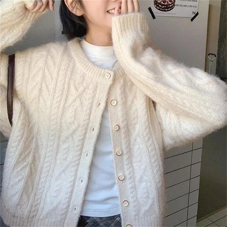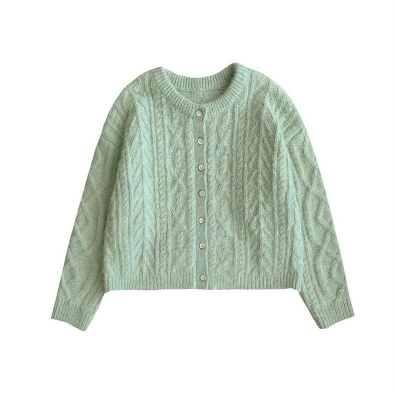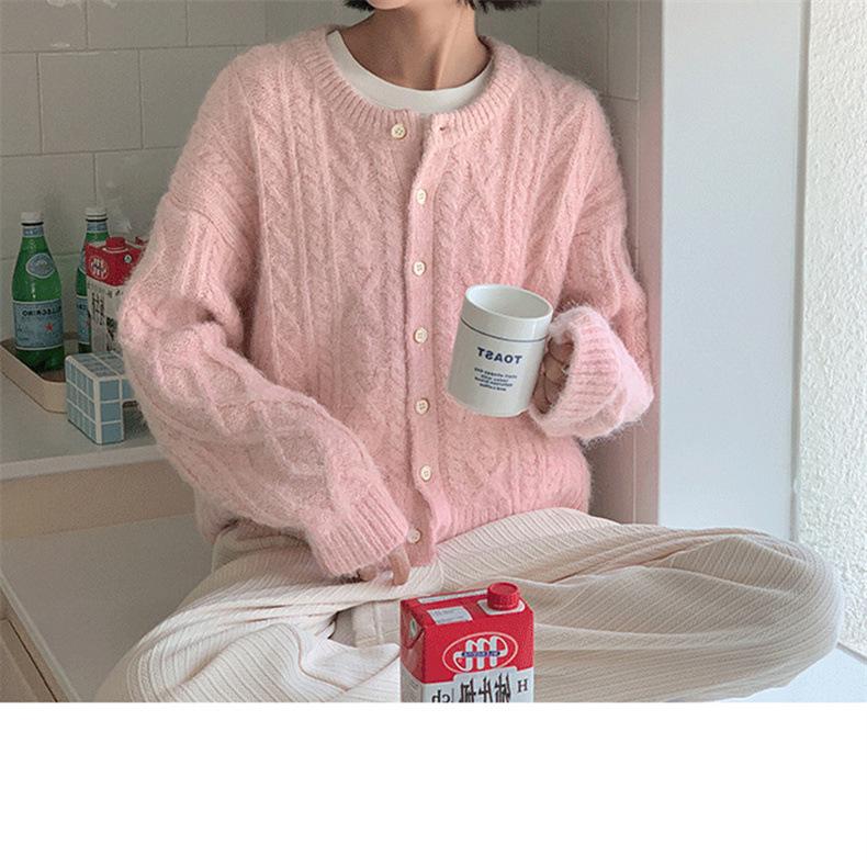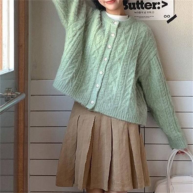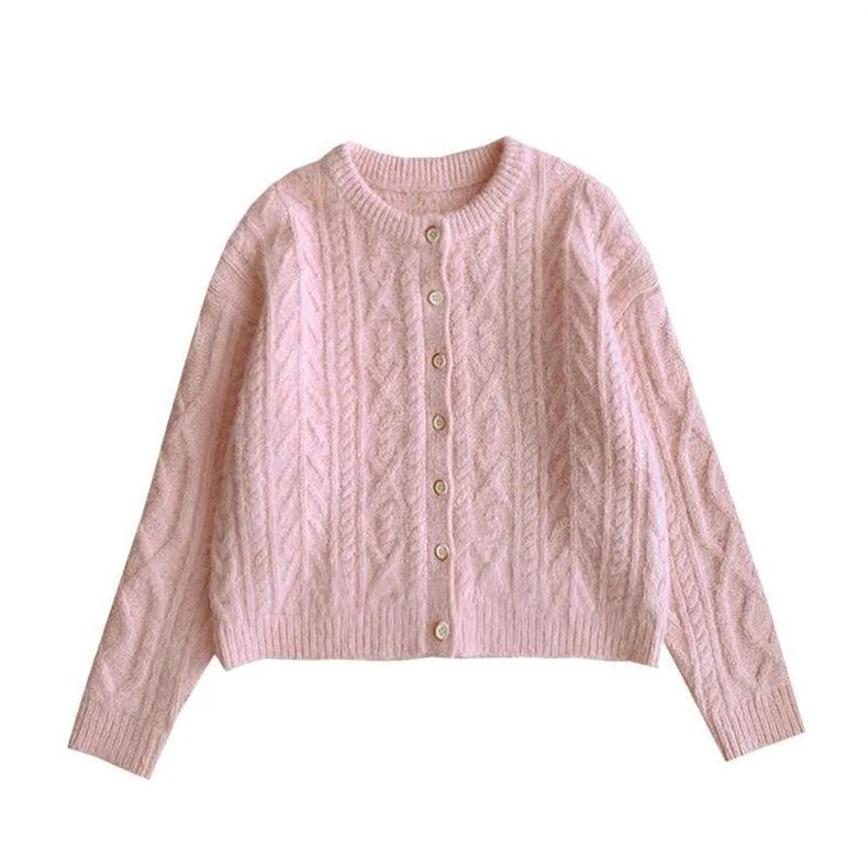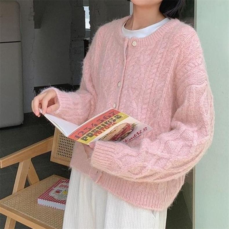 Cárdigan de mujer otoño e invierno nuevo estilo coreano estilo suave color sólido suave ceroso giro elegante cuello redondo suéter de punto cárdigan para mujer