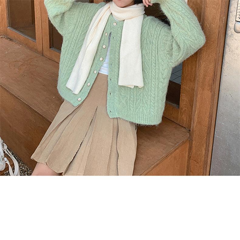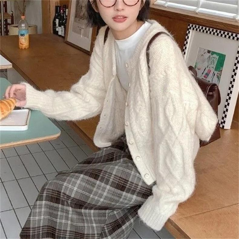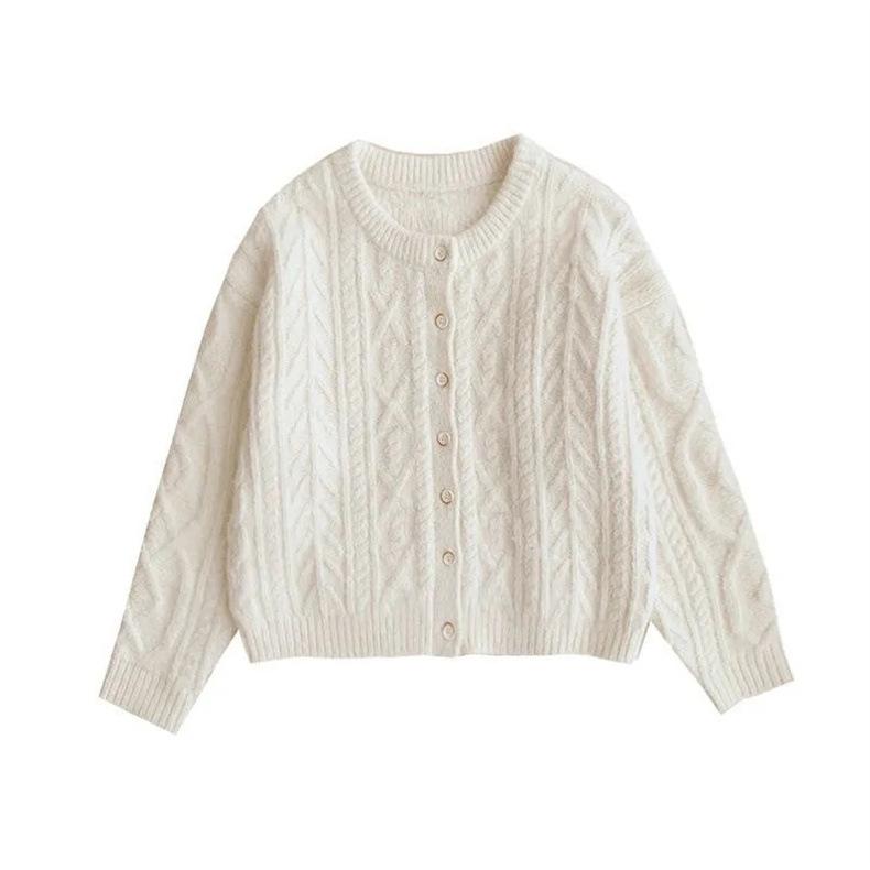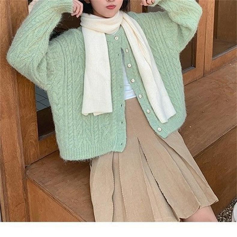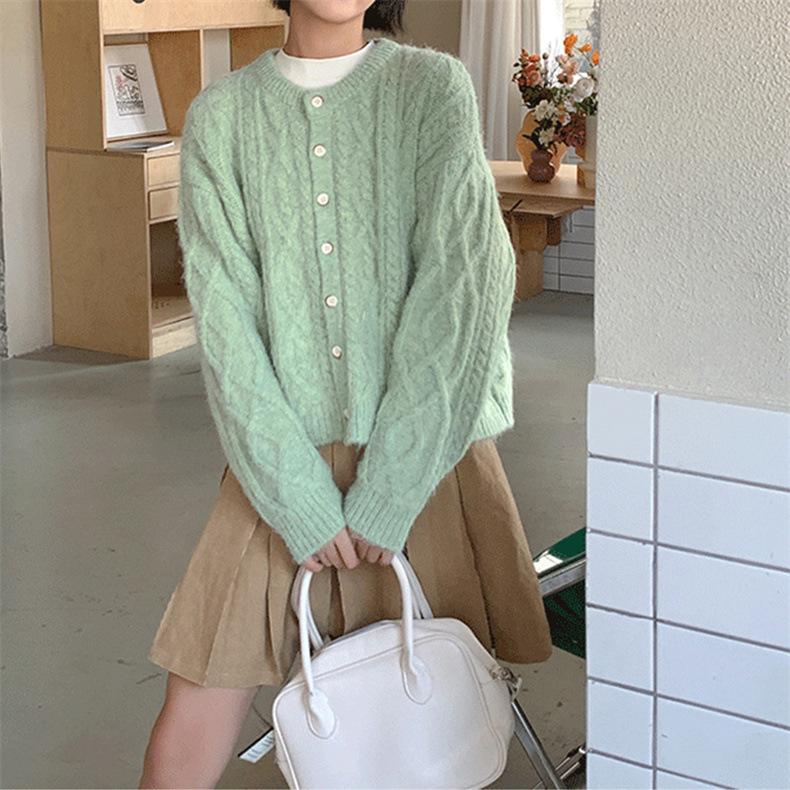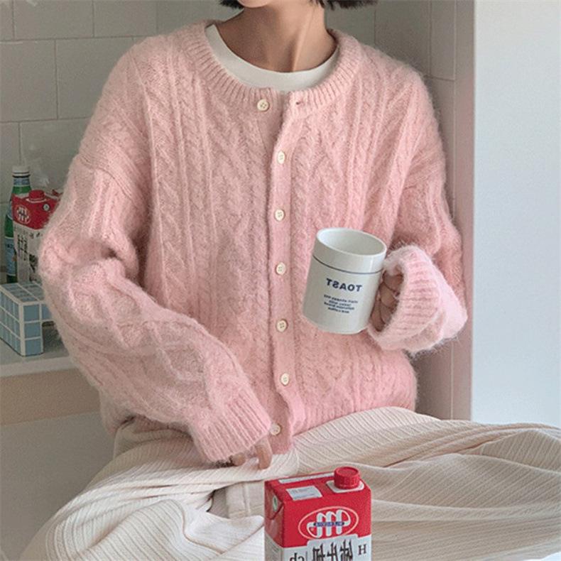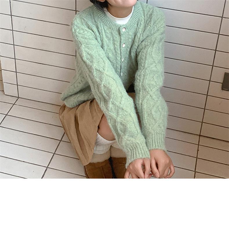 Cárdigan de mujer otoño e invierno nuevo estilo coreano estilo suave color sólido suave ceroso giro elegante cuello redondo suéter de punto cárdigan para mujer