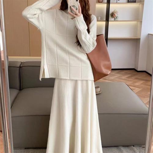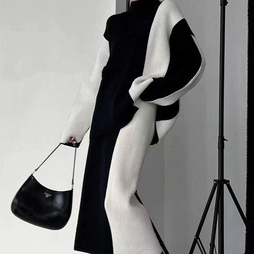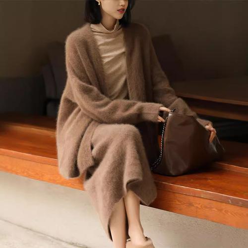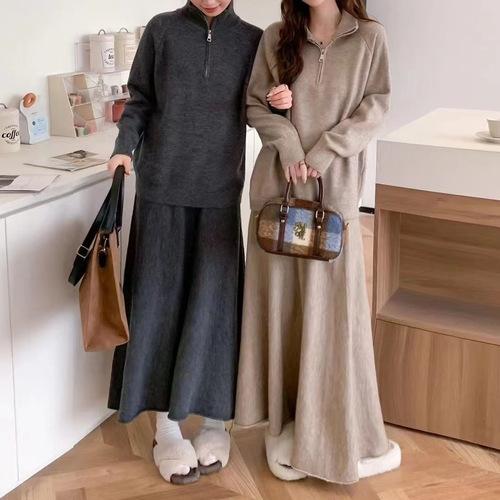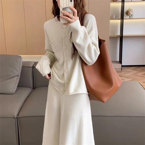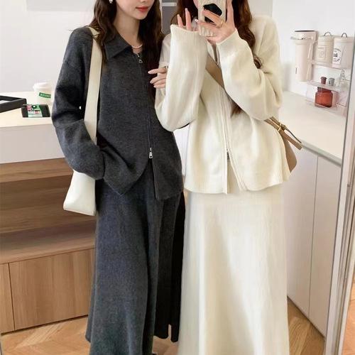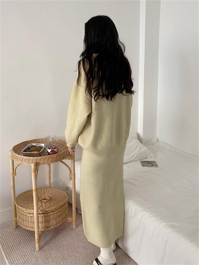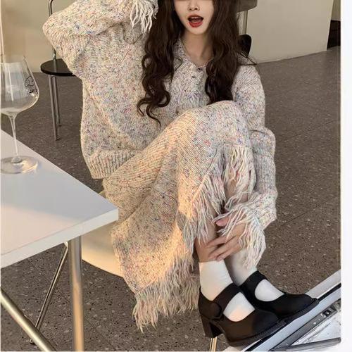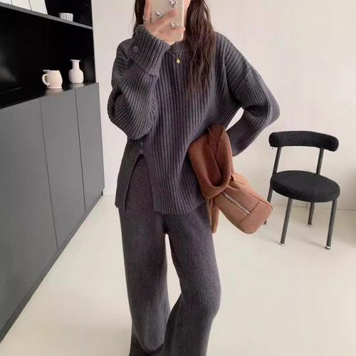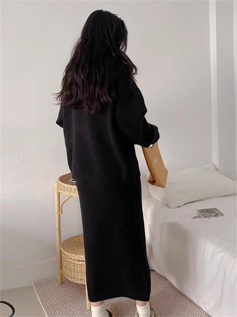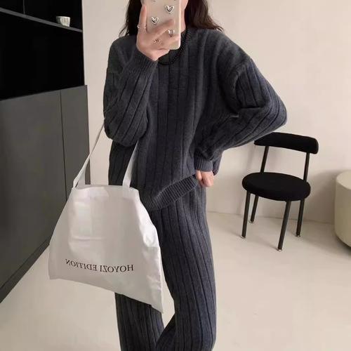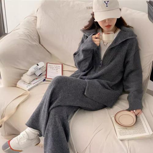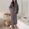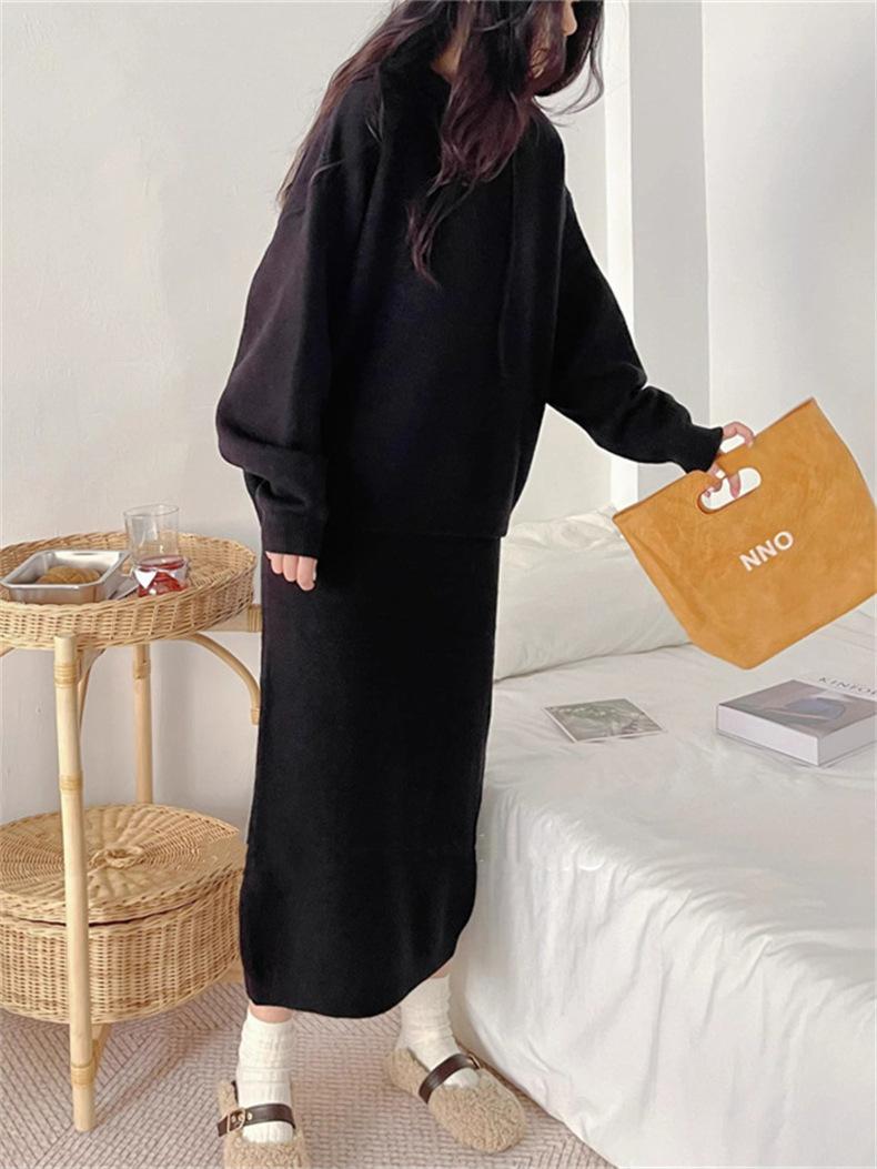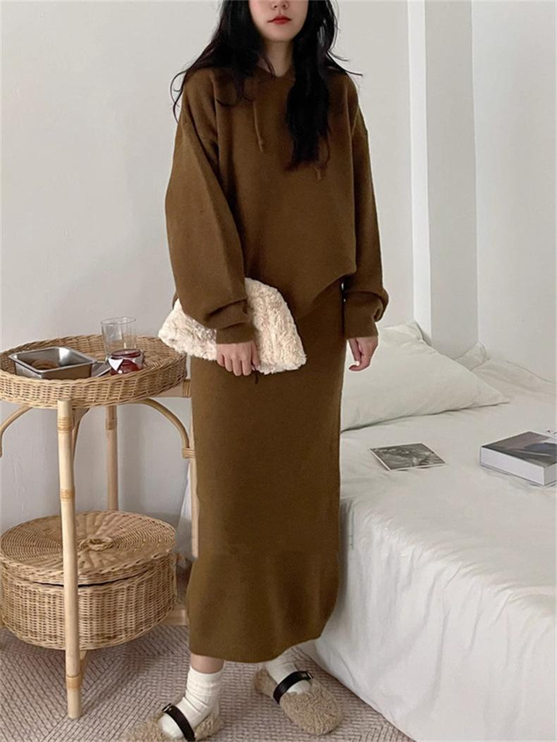 Conjunto de Dos Piezas de Punto con Capucha de Color Puro Estilo Coreano 2024 Otoño e Invierno Nuevo Conjunto de Punto Estilo Holgado Relajado