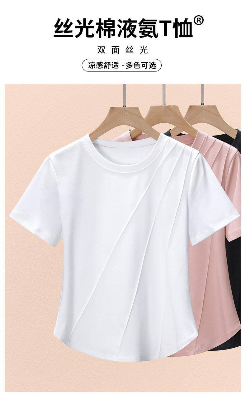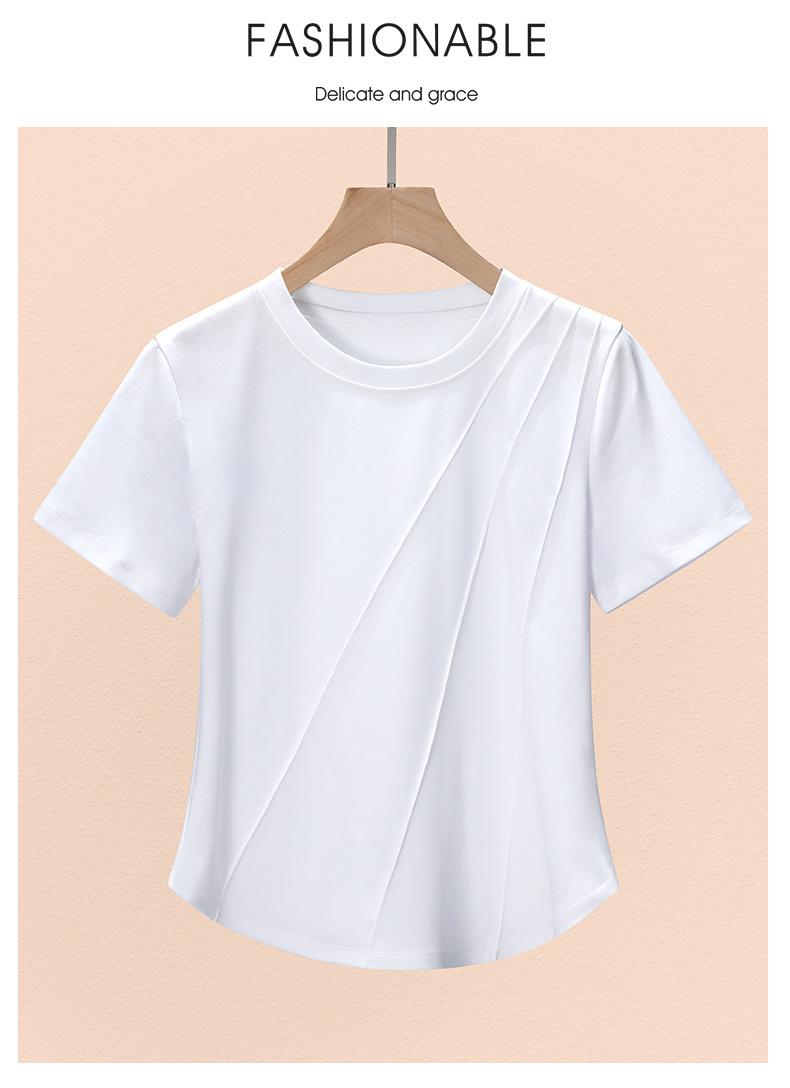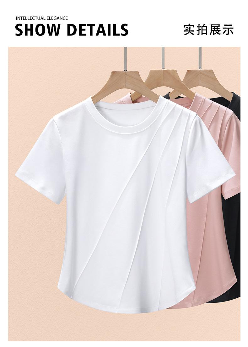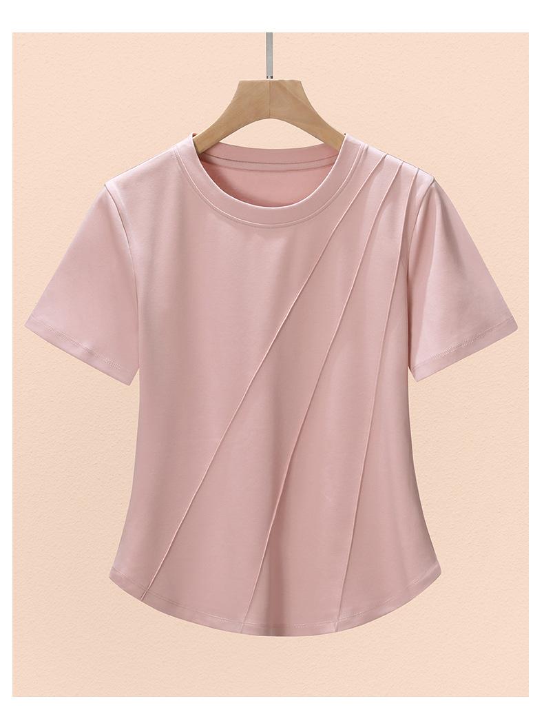 Playera de manga corta de algodón mercerizado para mujer sensación fresca hombro 2025 verano nueva casual holgada camisa base 1688 top ropa