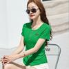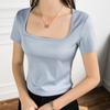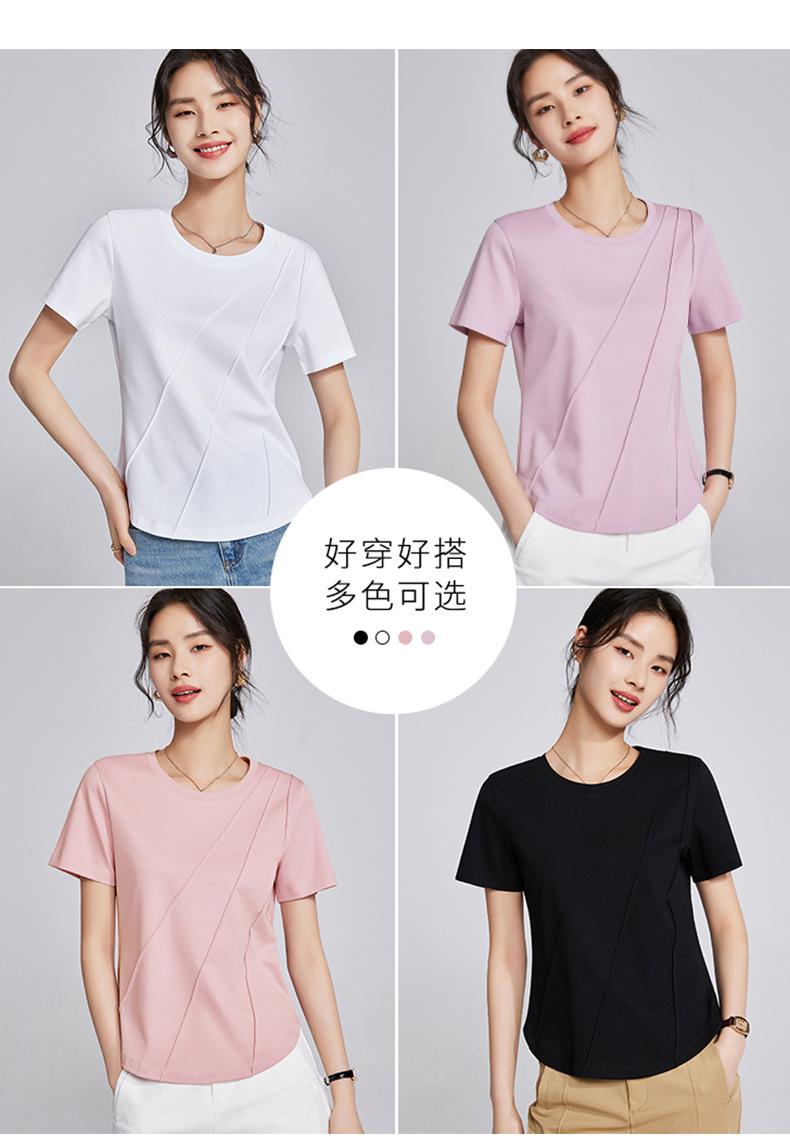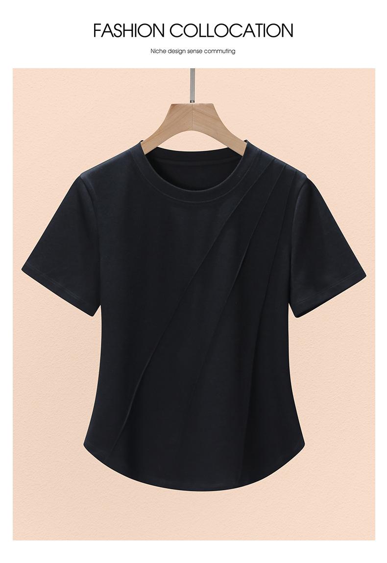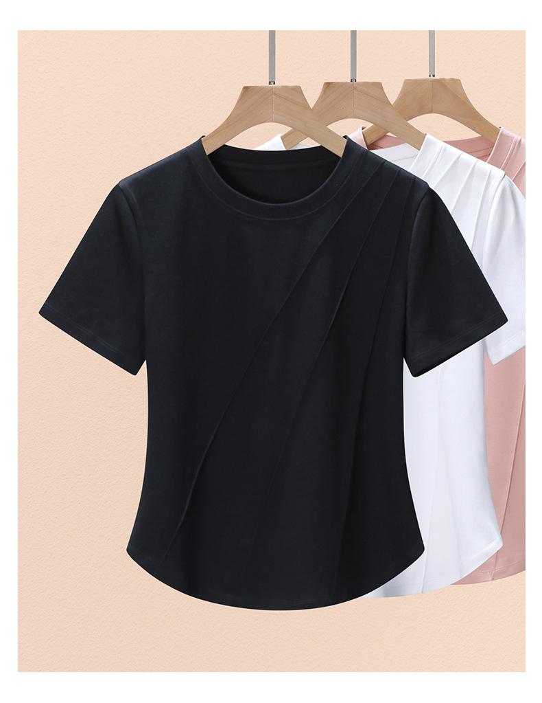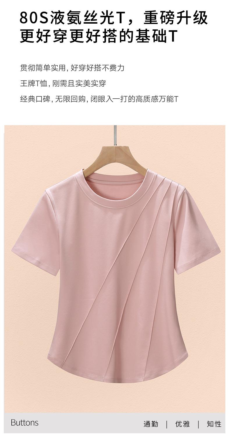 Playera de manga corta de algodón mercerizado para mujer sensación fresca hombro 2025 verano nueva casual holgada camisa base 1688 top ropa