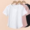Camiseta de manga larga de algodón mercerizado con cuello redondo para mujer, nuevo estilo de otoño 2025, dobladillo redondeado, ropa interior, cintura baja, top ajustado