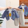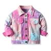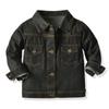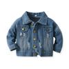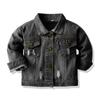 Chaqueta vaquera corta unisex de otoño, estilo coreano, para bebés, niños y niñas, con solapa vieja, de manga larga y mezclilla rota, estilo moderno.