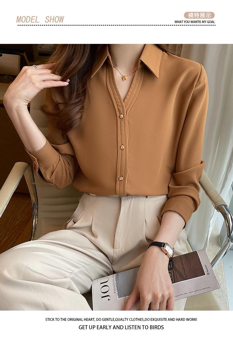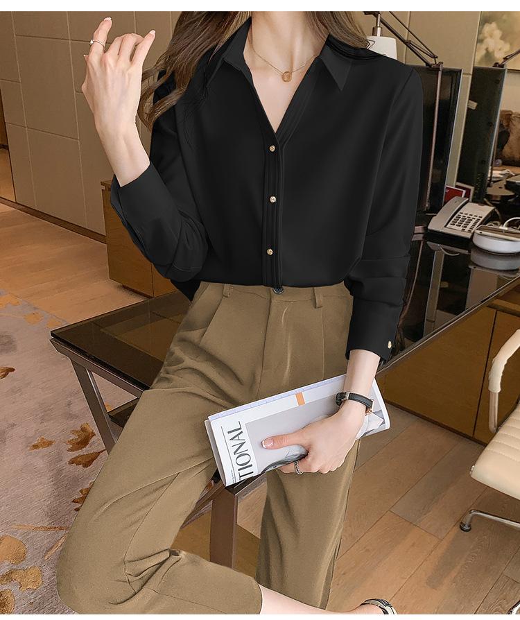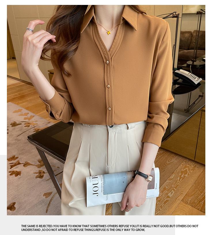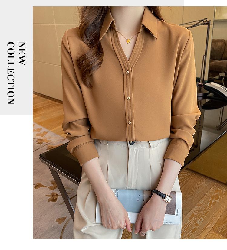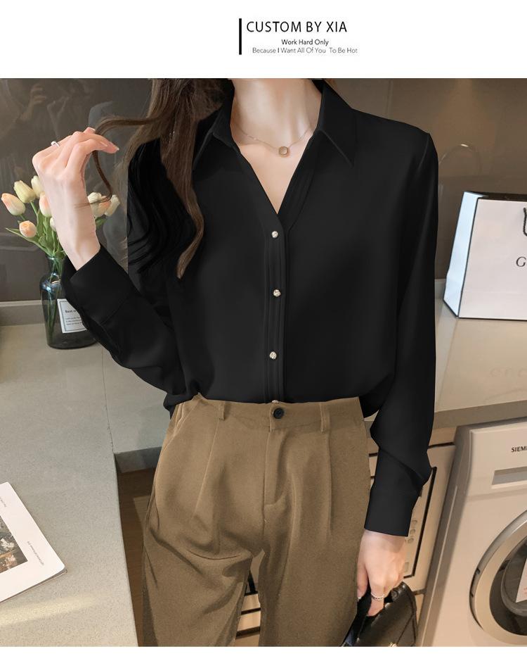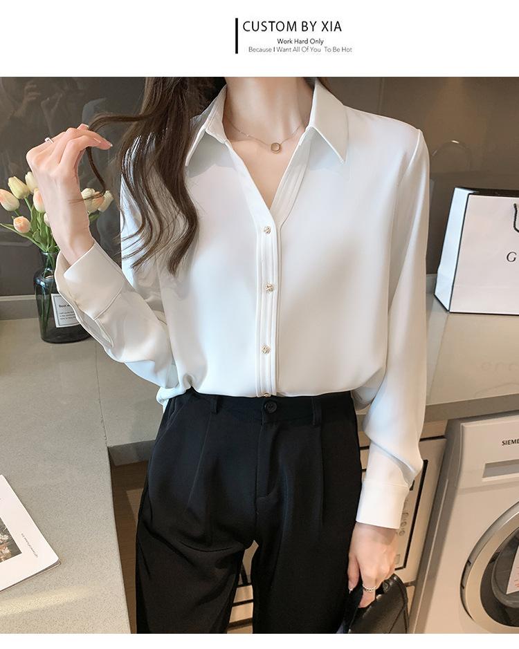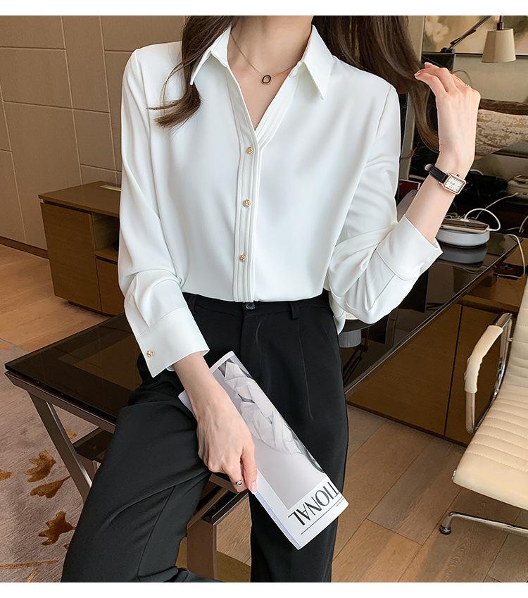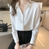 Camisa Profesional Blanca Nueva de Primavera 2025 para Mujer de Manga Larga con Cuello en V Diseño Nicho Top