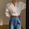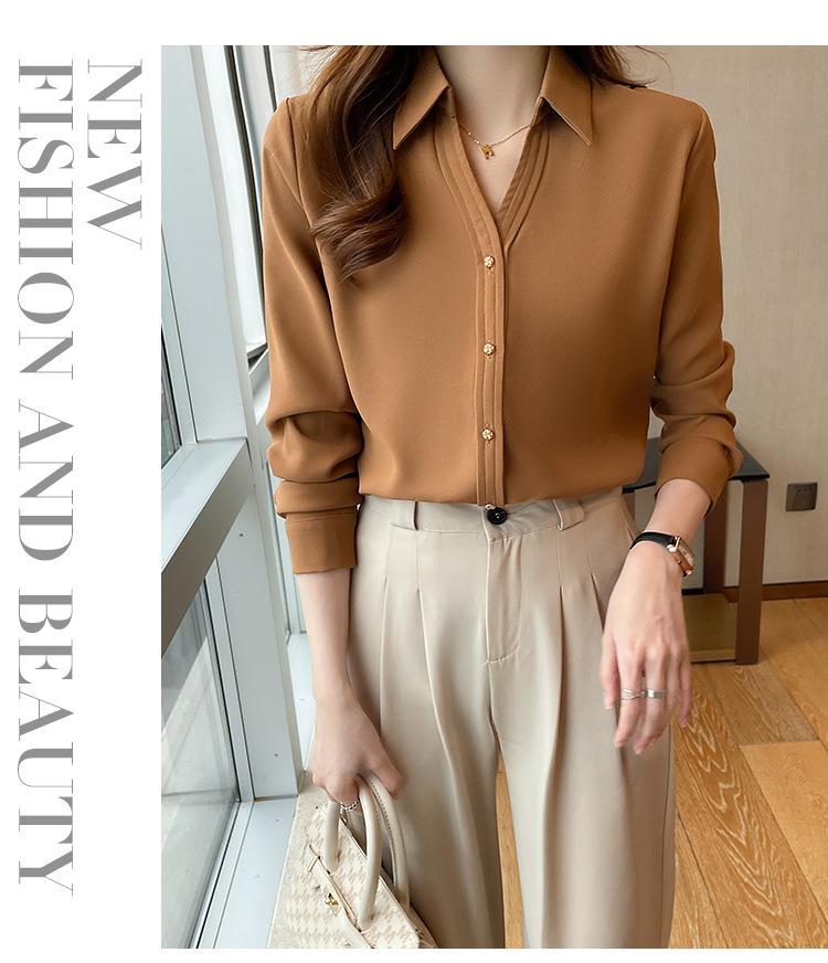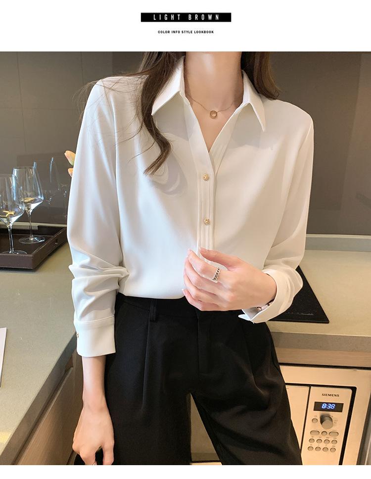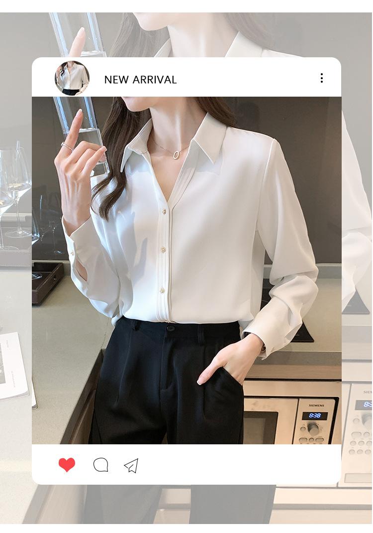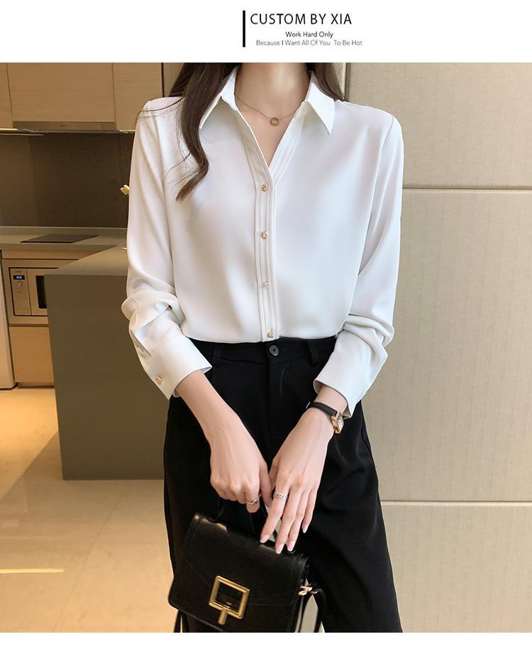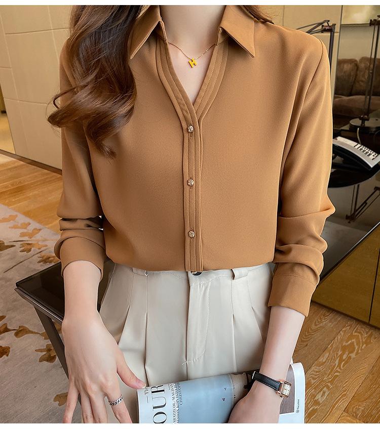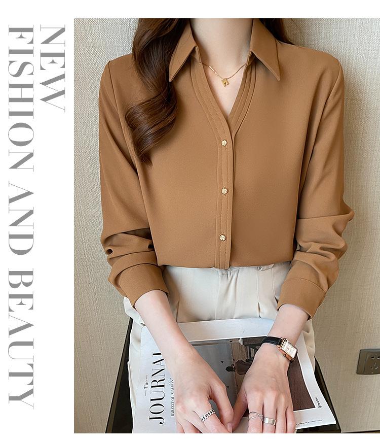 Camisa Profesional Blanca Nueva de Primavera 2025 para Mujer de Manga Larga con Cuello en V Diseño Nicho Top