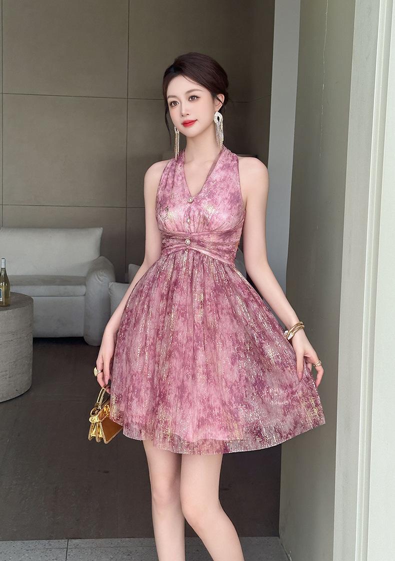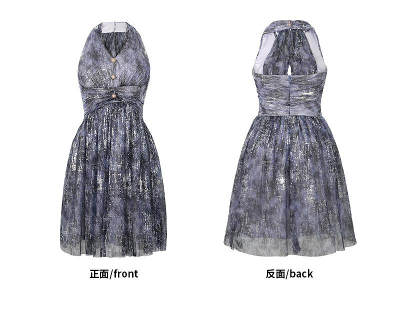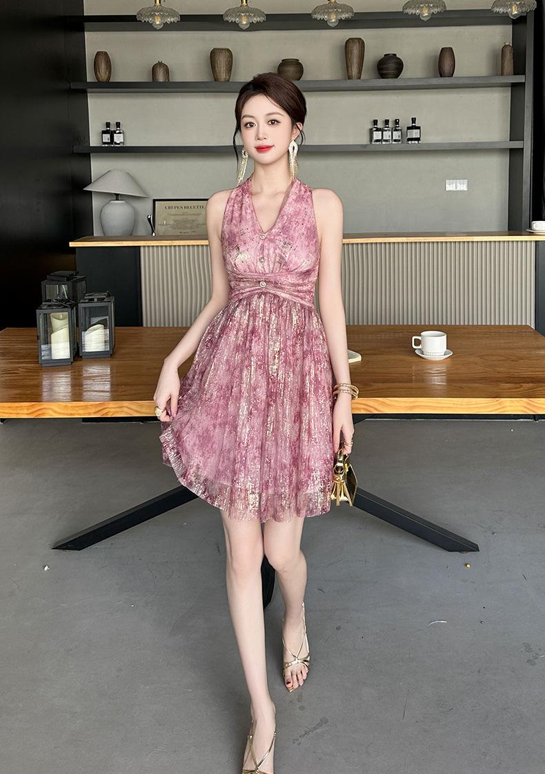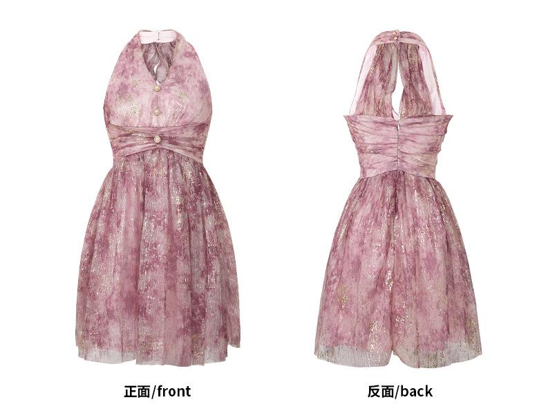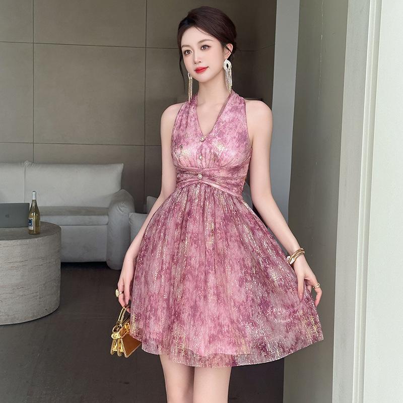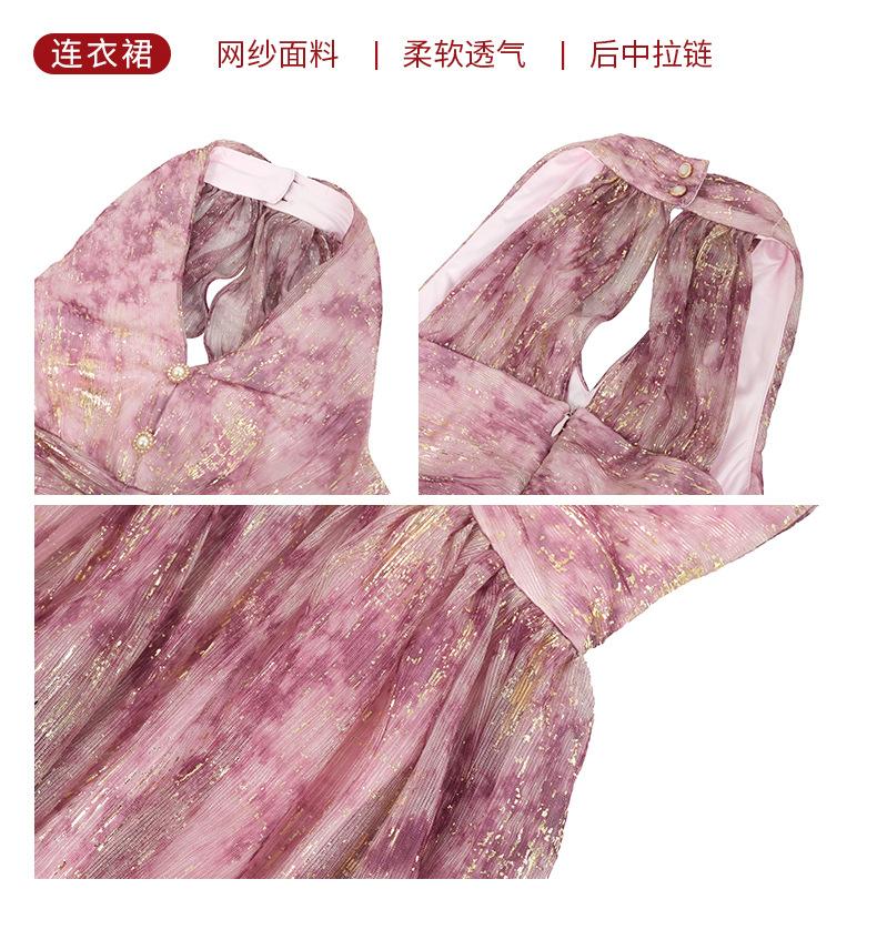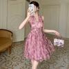 Vestido de verano nuevo con cuello de rosa dorada, de malla y cintura sin mangas, falda de hada festiva para mujer 70331