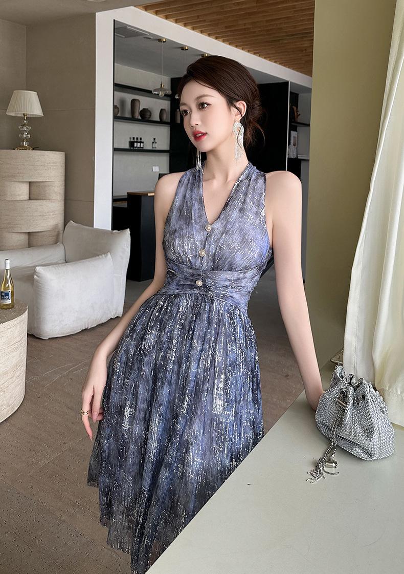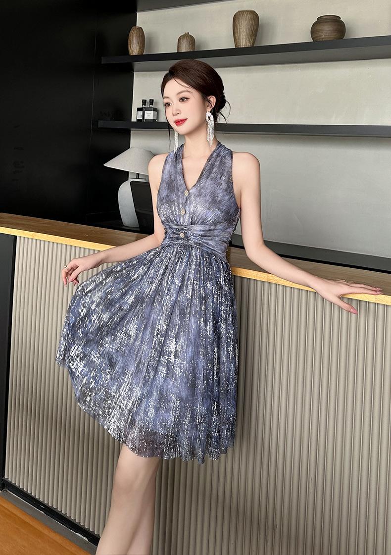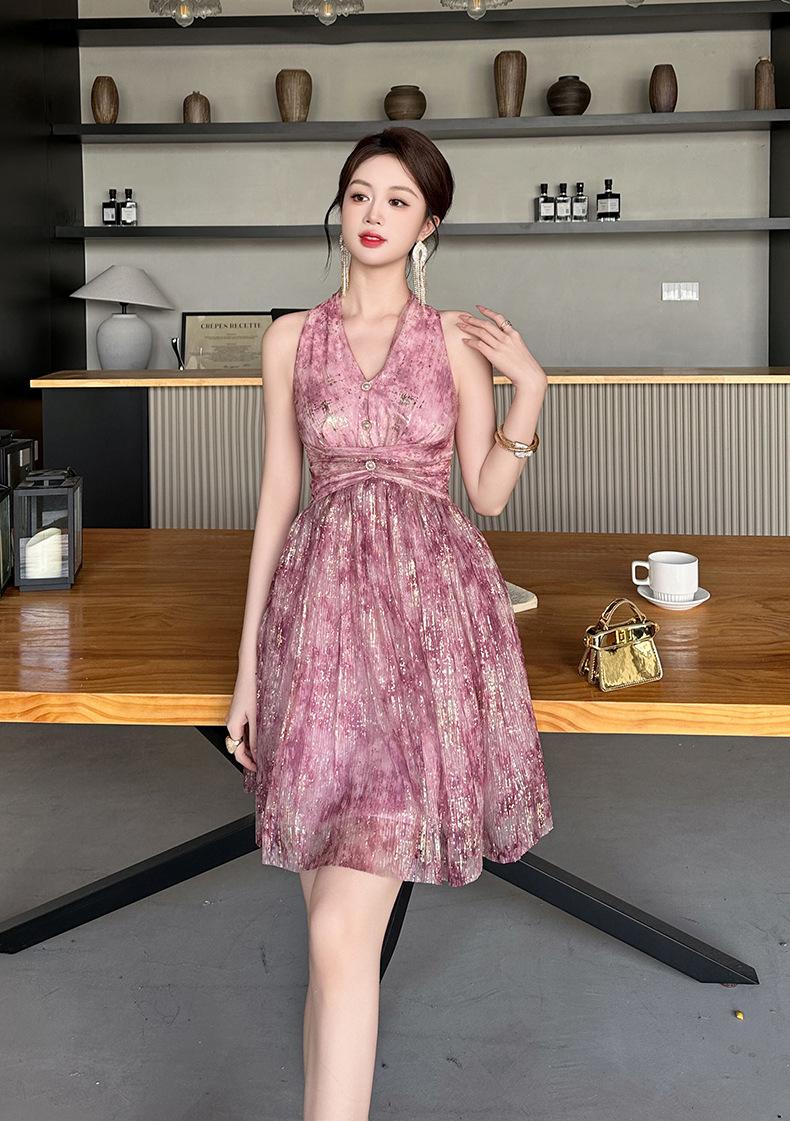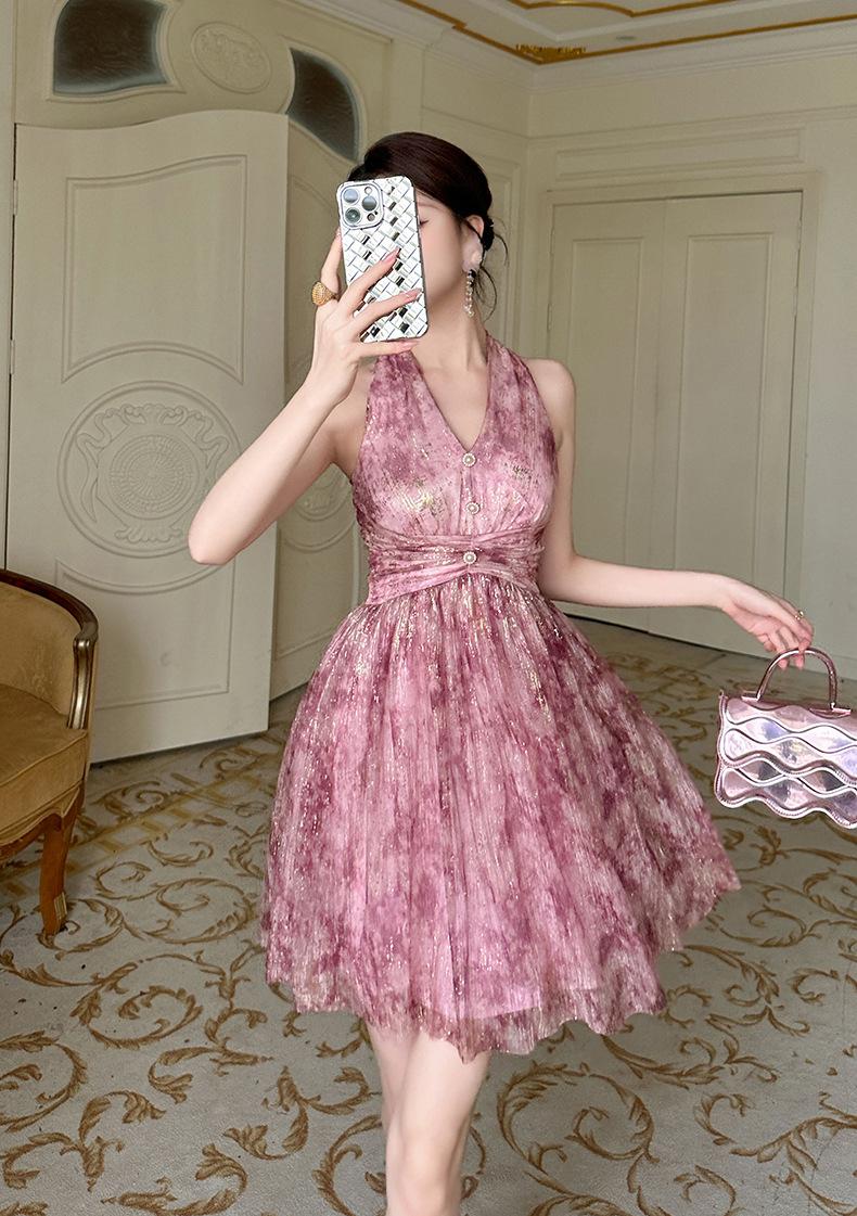 Vestido de verano nuevo con cuello de rosa dorada, de malla y cintura sin mangas, falda de hada festiva para mujer 70331
