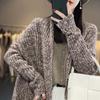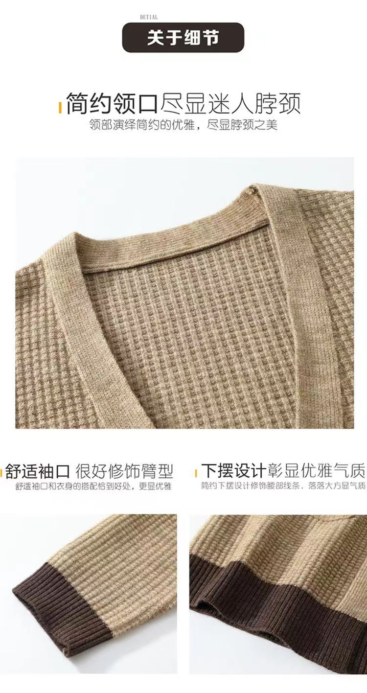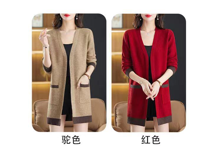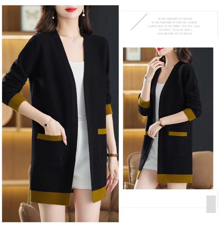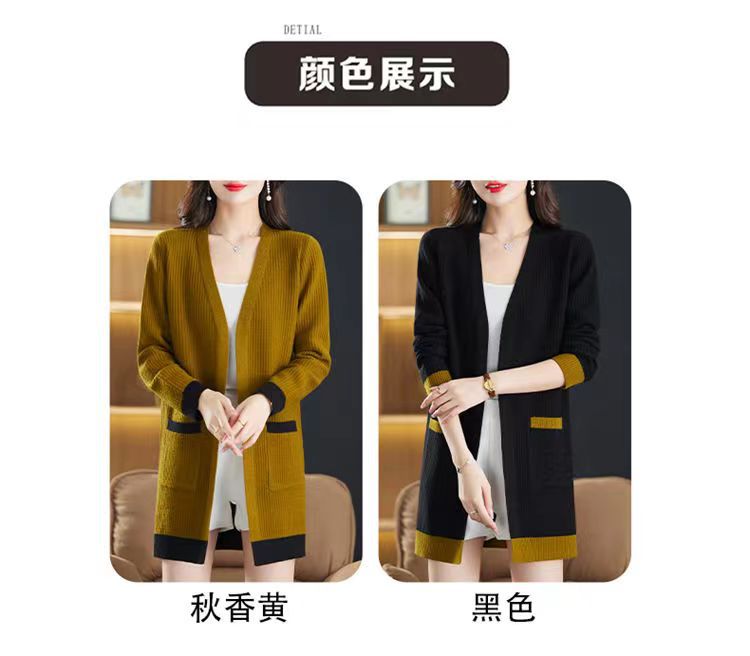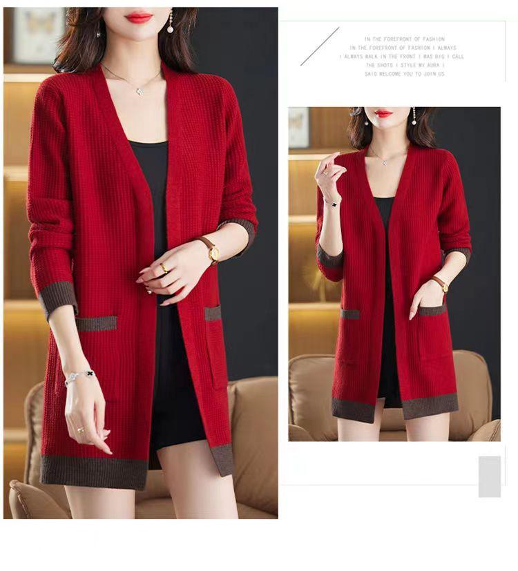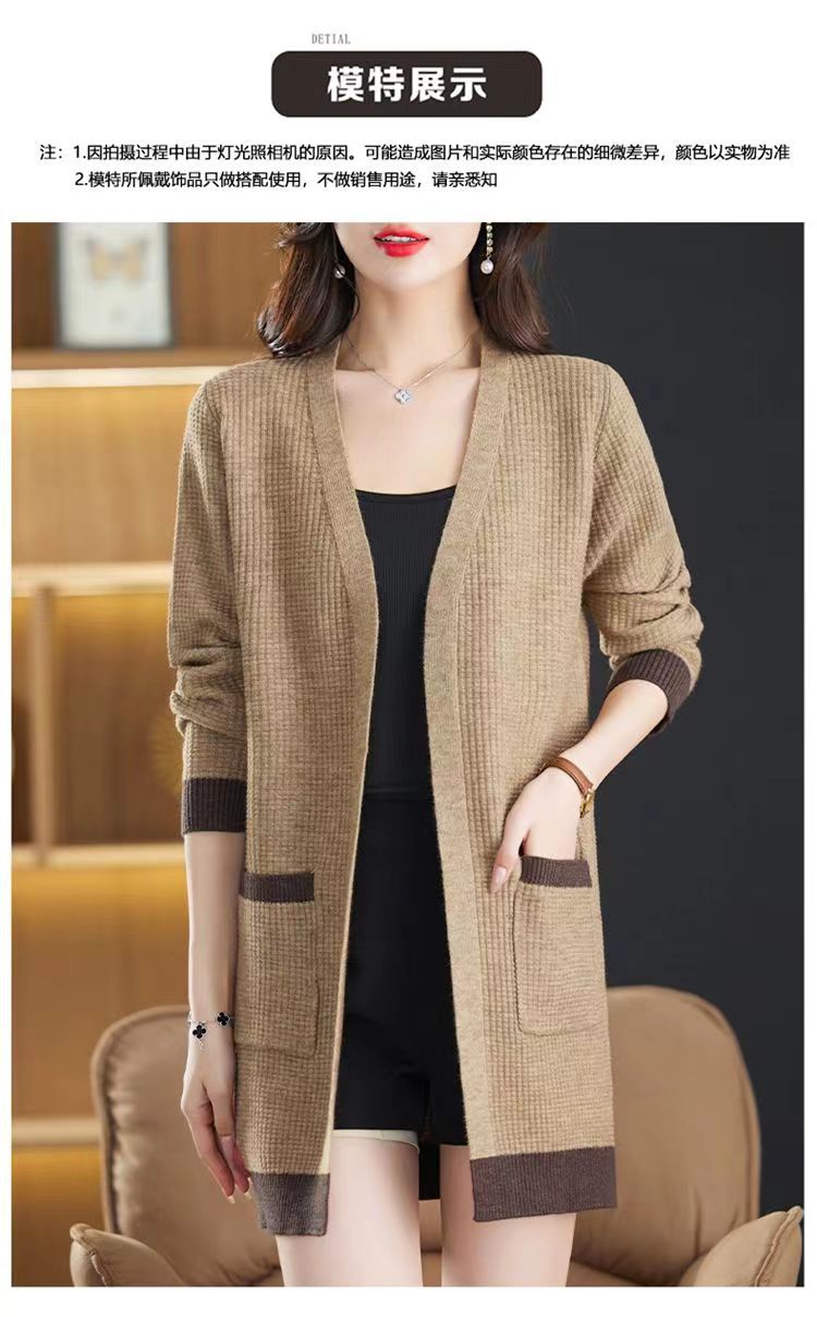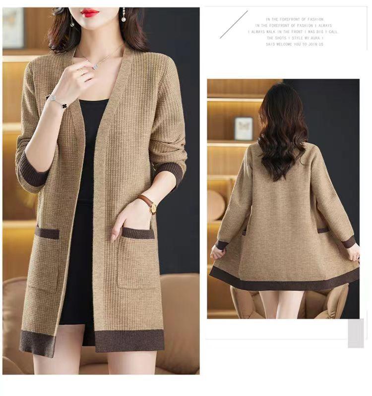 2025 Nuevo Suéter de Punto para Mujer de Largo Medio con Cuello en V Otoño e Invierno Nuevo Estilo Slim Moderno Cárdigan Chal