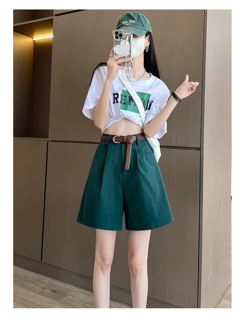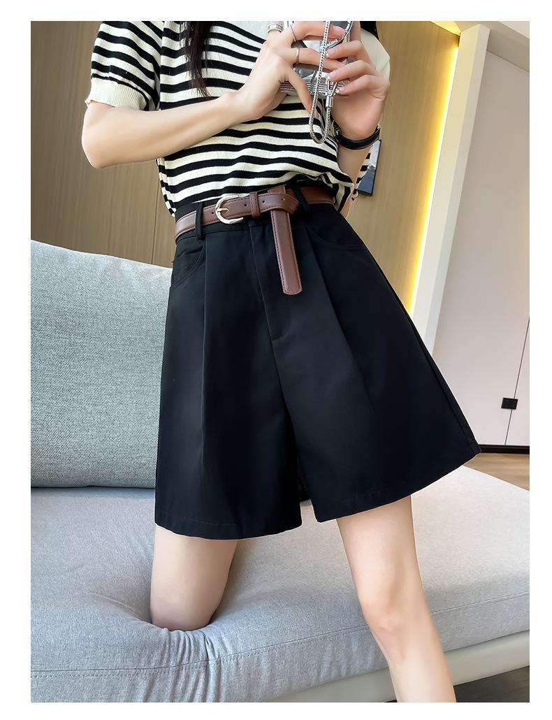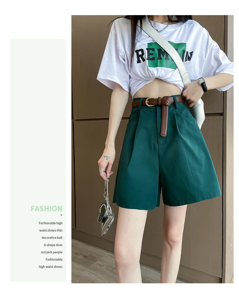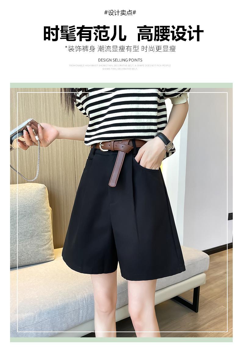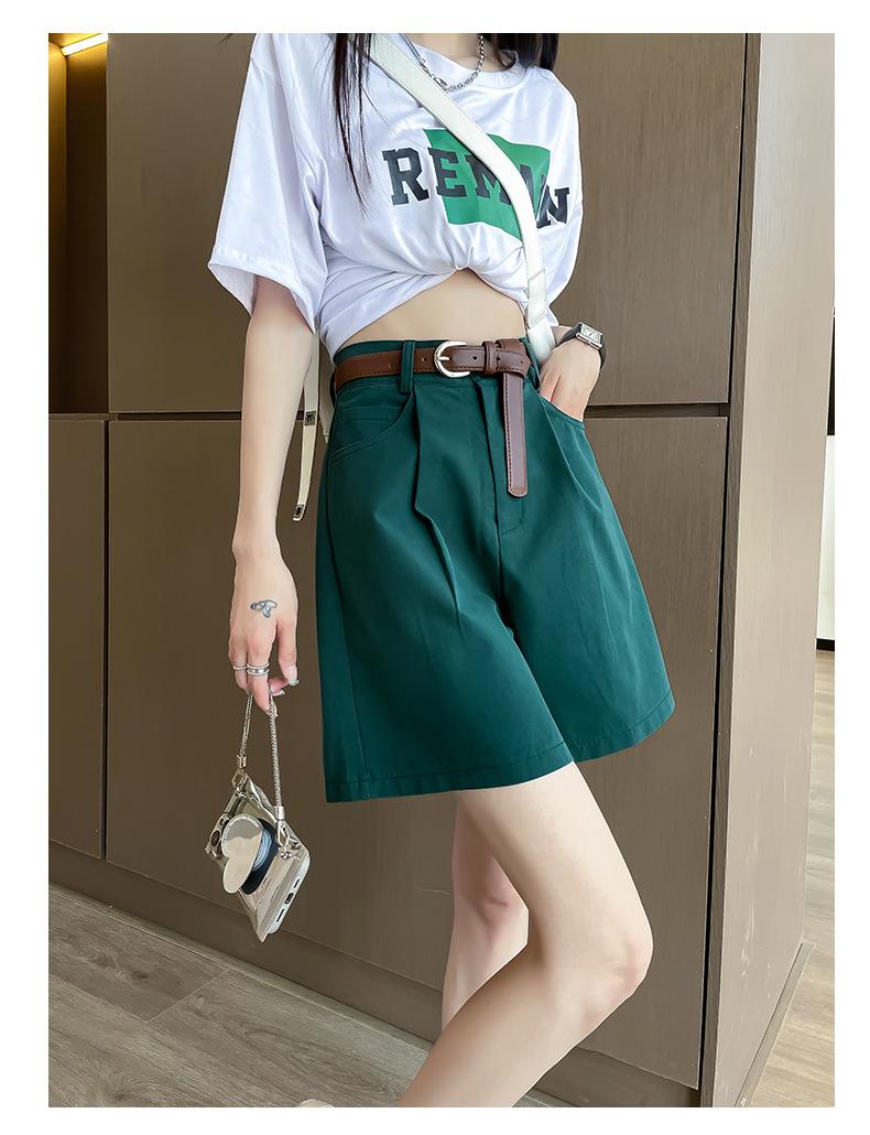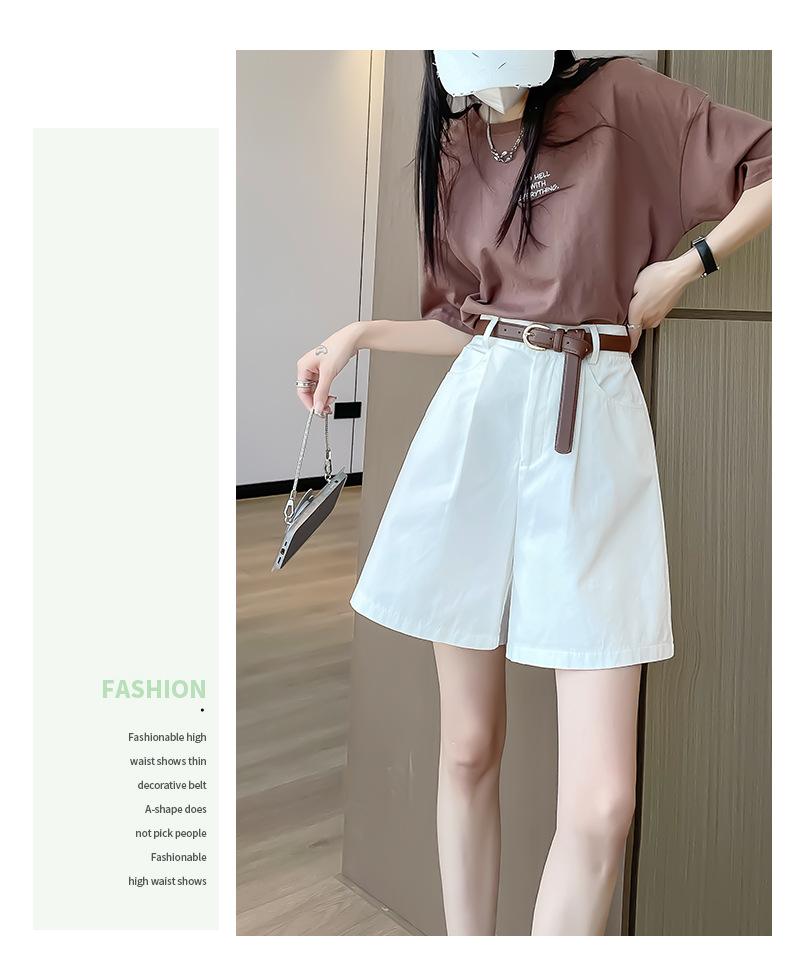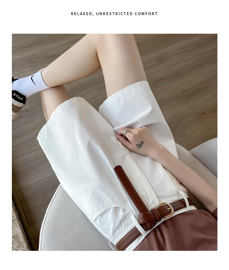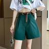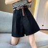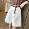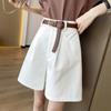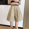 Pantalones cortos de algodón con cinturón para mujer, de verano, finos, de cintura alta, adelgazantes, sencillos, estilo occidental, holgados, informales, de pierna ancha