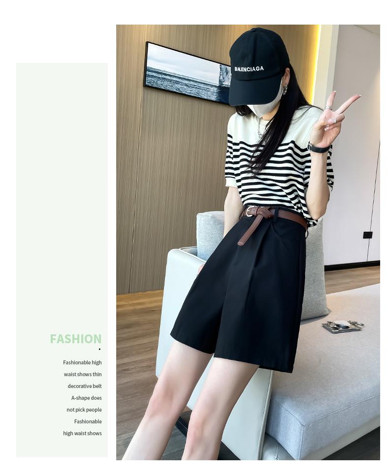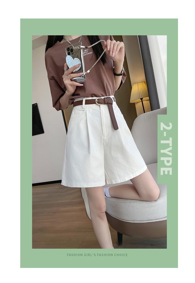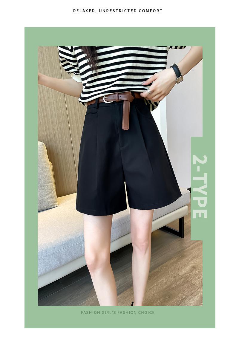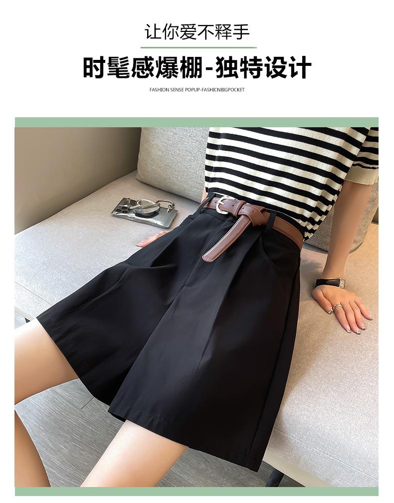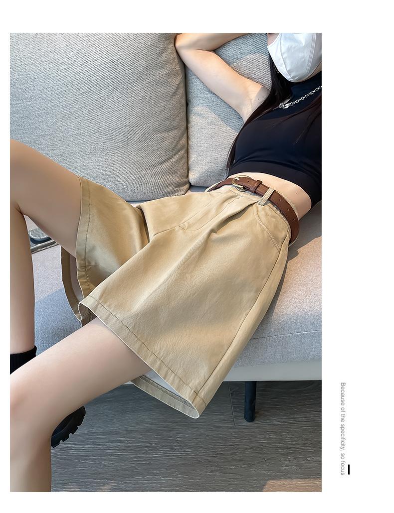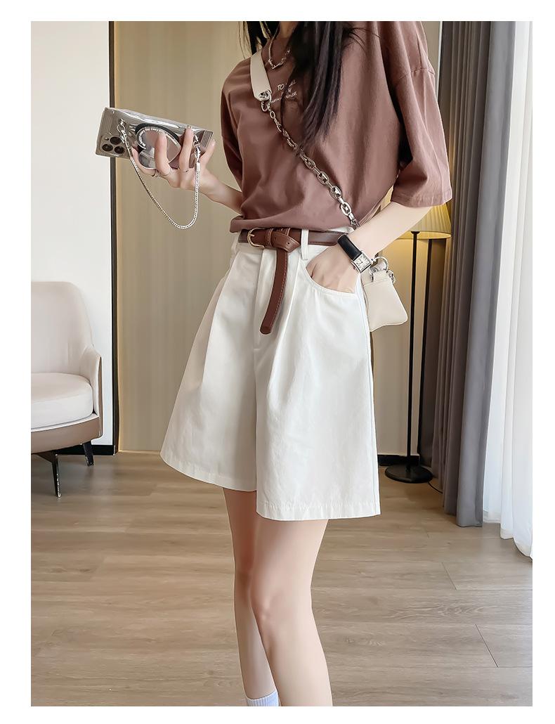 Pantalones cortos de algodón con cinturón para mujer, de verano, finos, de cintura alta, adelgazantes, sencillos, estilo occidental, holgados, informales, de pierna ancha