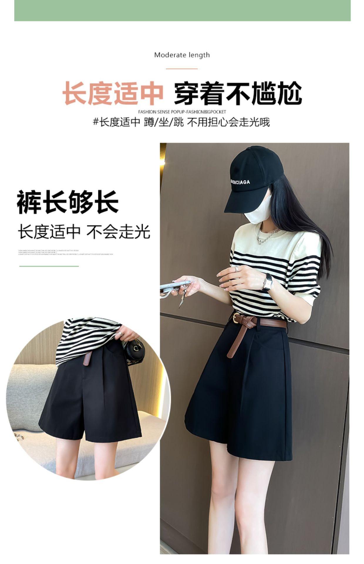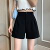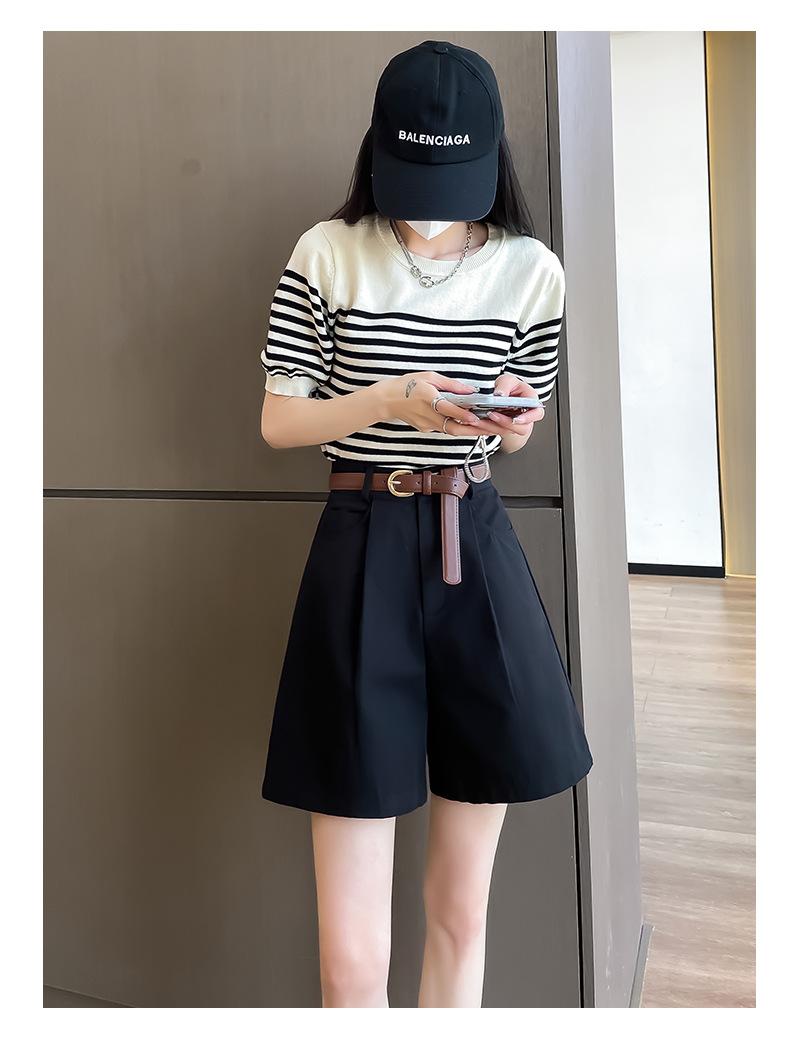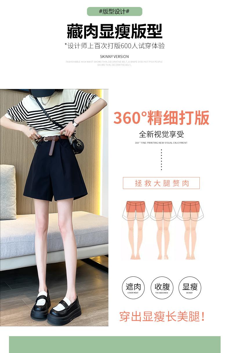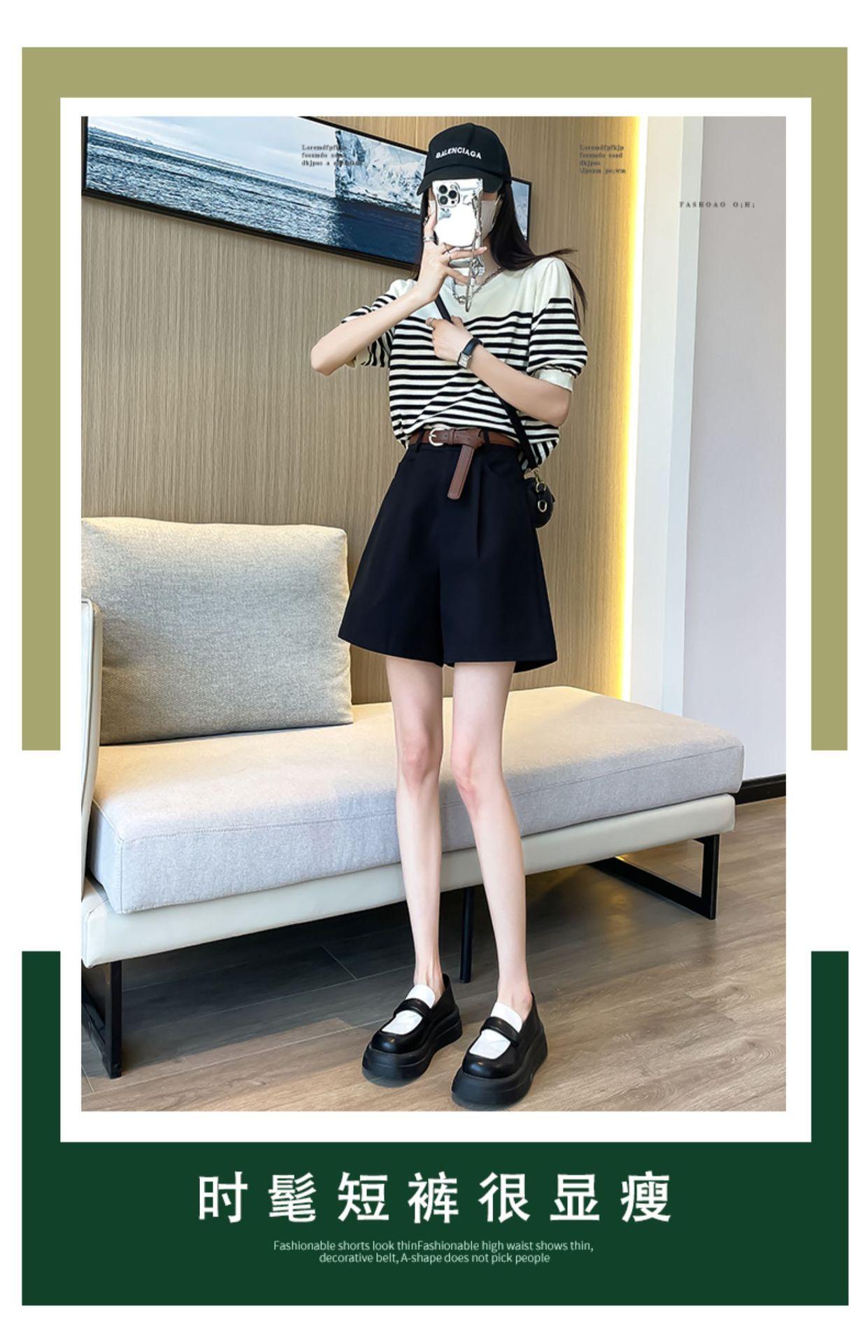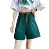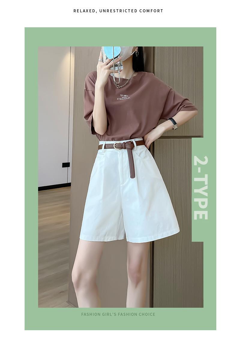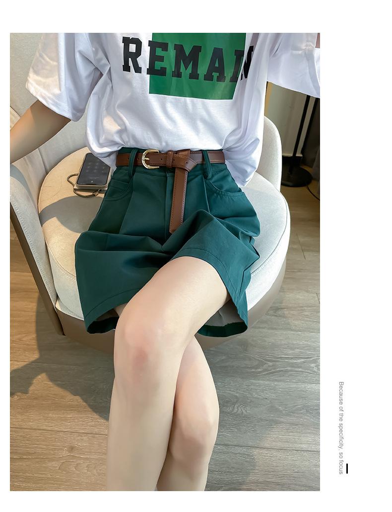Pantalones cortos de algodón con cinturón para mujer, de verano, finos, de cintura alta, adelgazantes, sencillos, estilo occidental, holgados, informales, de pierna ancha
