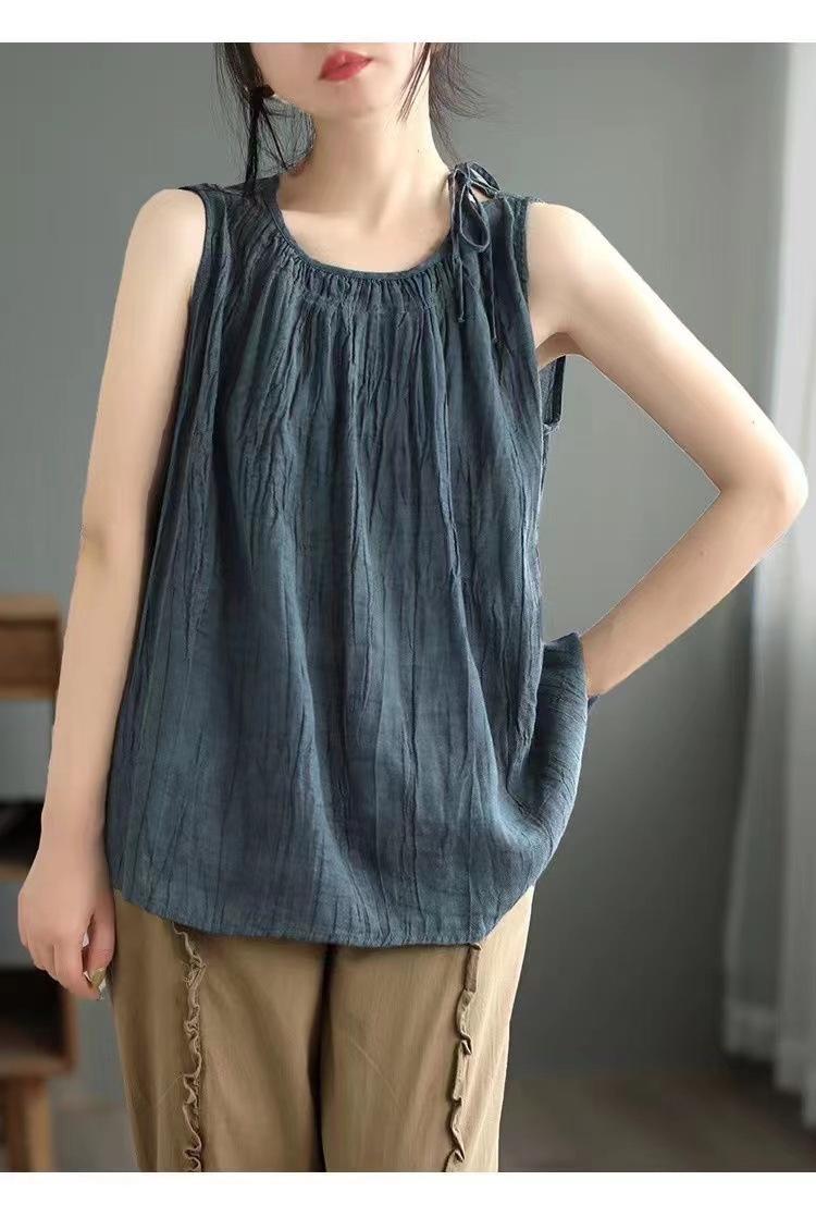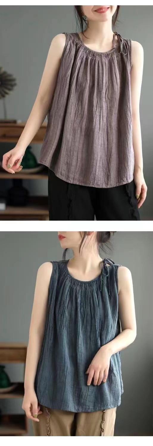 Disponible 2024 Chaleco vintage para mujer, sin mangas, interior holgado, con tirantes finos y elegantes.