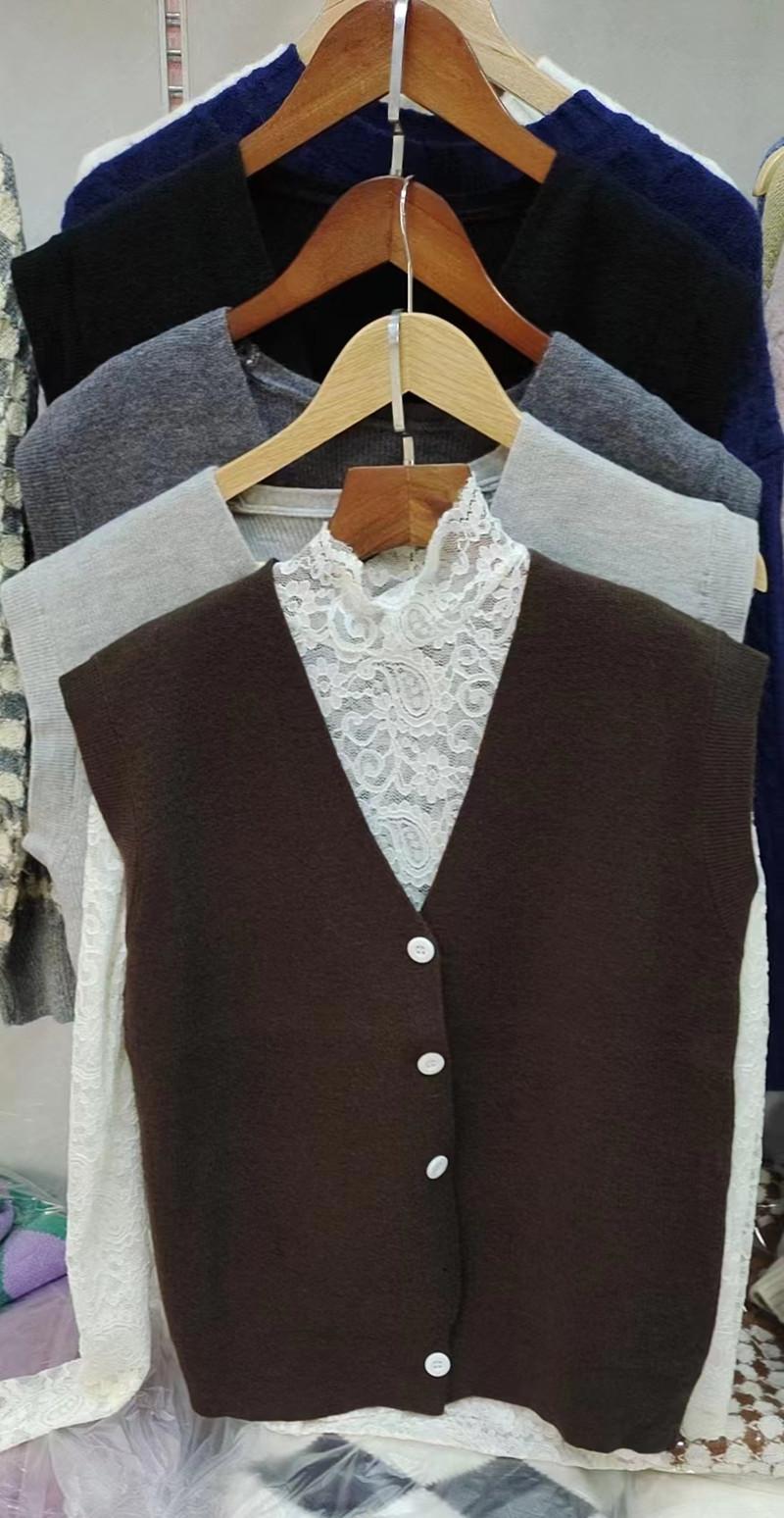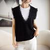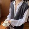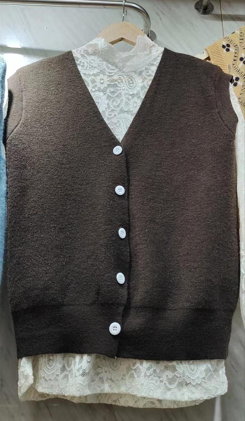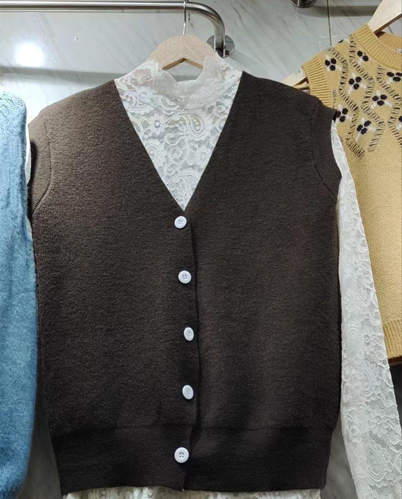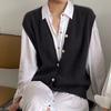 Chaleco de punto con cuello en V estilo coreano para mujer, cárdigan sin mangas de primavera y otoño 2024, chaleco informal de color sólido, suéter de moda