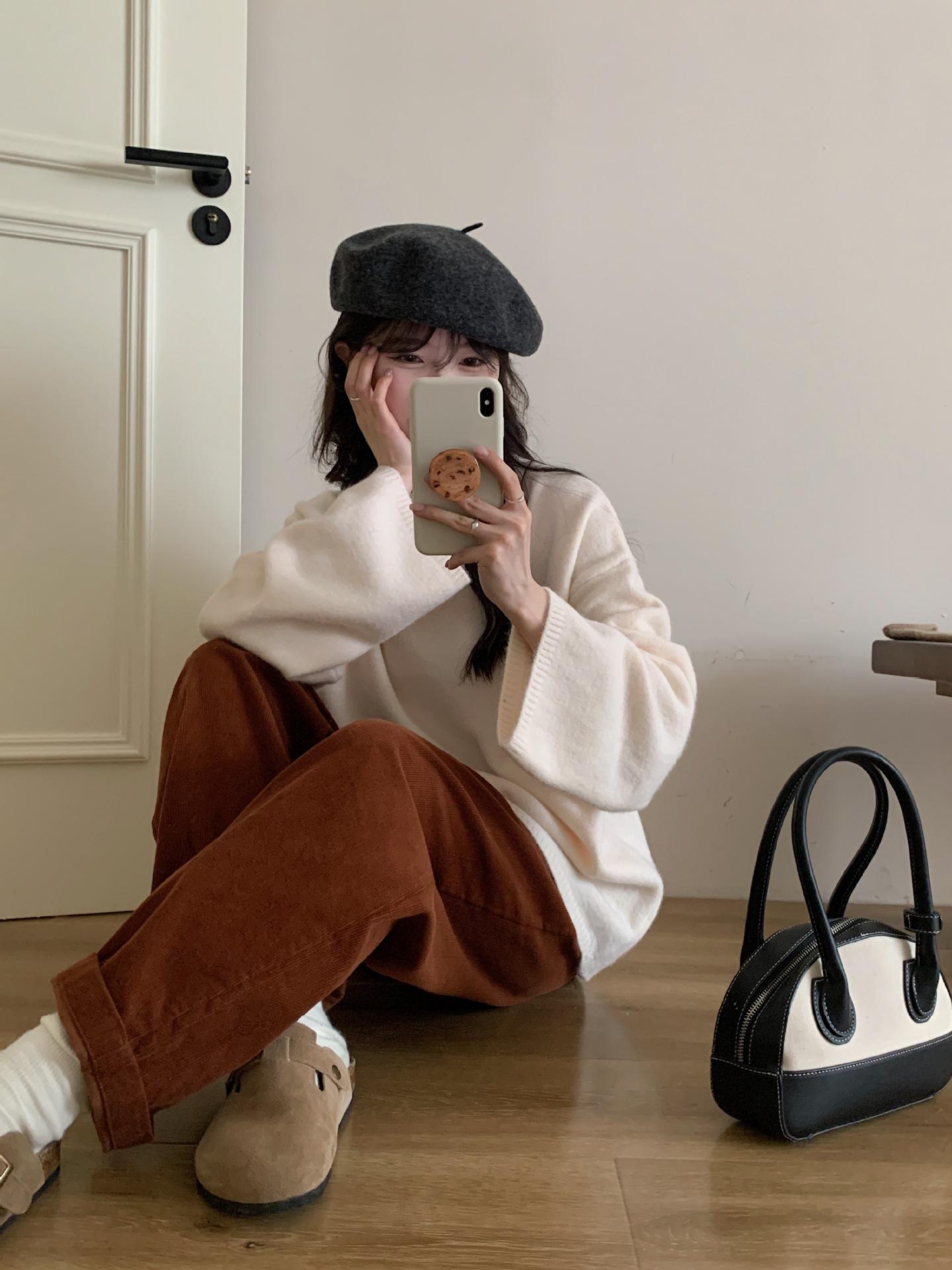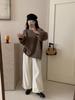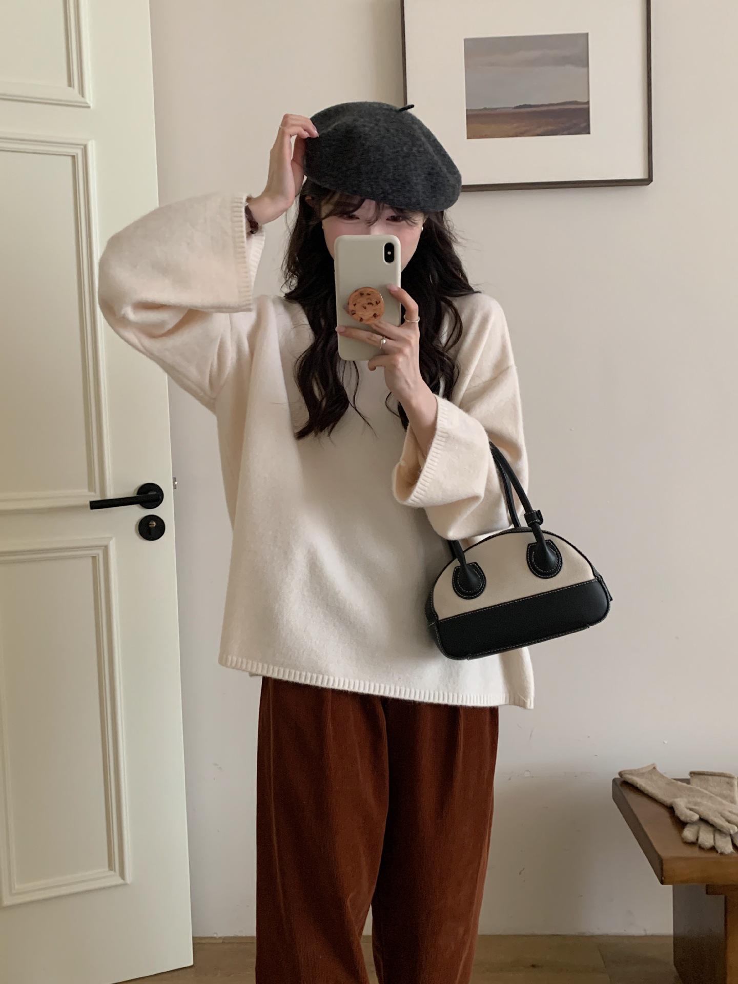 La talla se mide con el suéter extendido, sin estirar. Debido a su alta elasticidad, puede haber un margen de error de 3 a 5 cm al planchar los diferentes lotes.