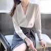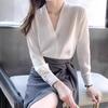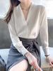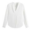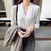 Camisa Blanca de Temperamento para Mujer Top Antiarrugas 2025 Otoño Chifón Cuello en V Ropa Profesional de Trabajo Camisa sin Cuello de Manga Larga