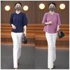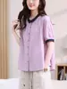 Camisa de gasa blanca con cuello redondo para mujer, cárdigan elegante de otoño 2024, combinable con todo, manga de siete puntos