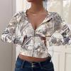 Sudadera de Terciopelo Casual de Manga Larga con Capucha y Cremallera, Estilo Caliente de Amazon para Exportación Europea y Americana Transfronteriza, Ropa de Mujer 2025