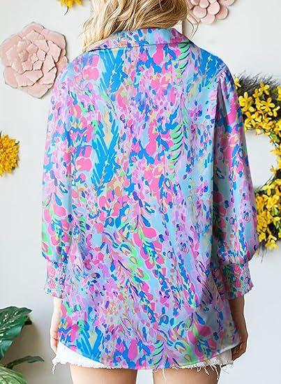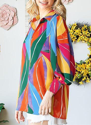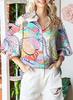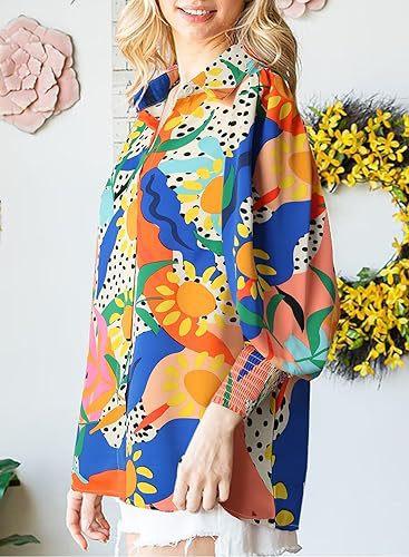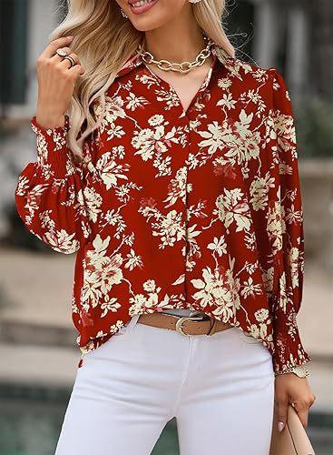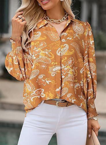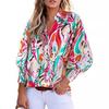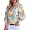 Otoño e Invierno 2025 Ropa de Mujer Transfronteriza de Exportación Europea y Americana Amazon Popular Tops Estampados de Manga Larga Camisas de Solapa Manga Linterna
