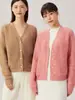 Cárdigan de punto con cuello en V, abrigo, otoño e invierno 2024, nuevo cárdigan informal de manga larga de punto de color sólido europeo y americano para mujer