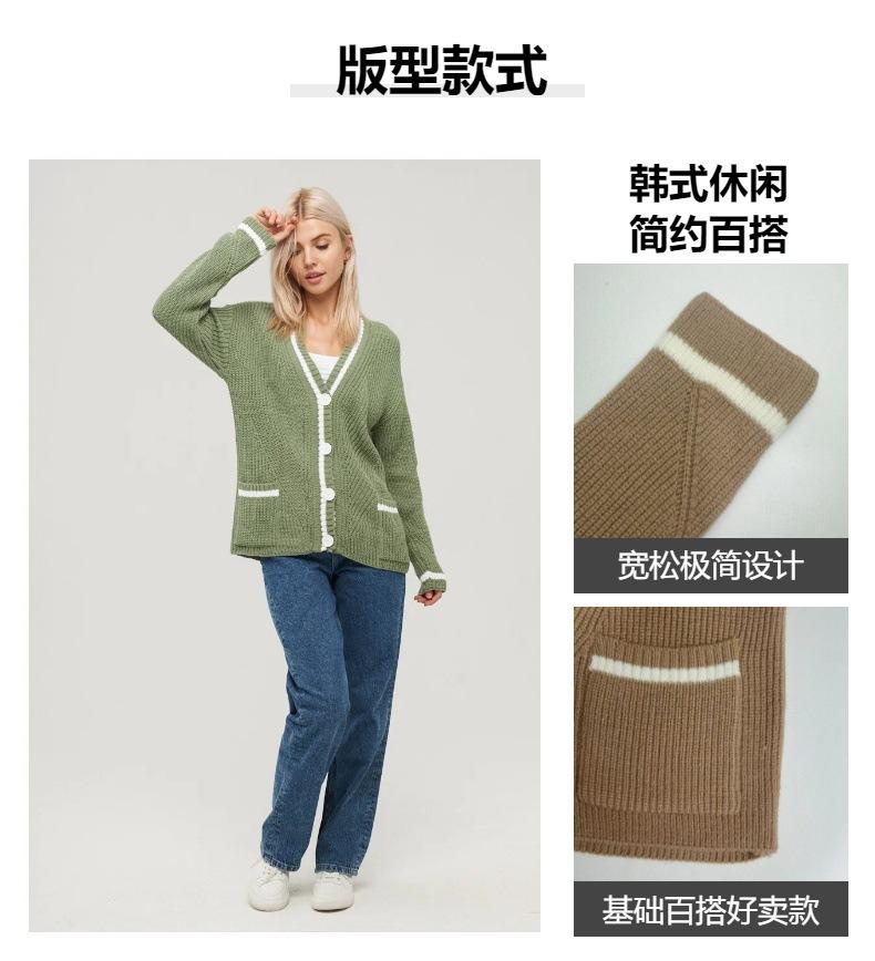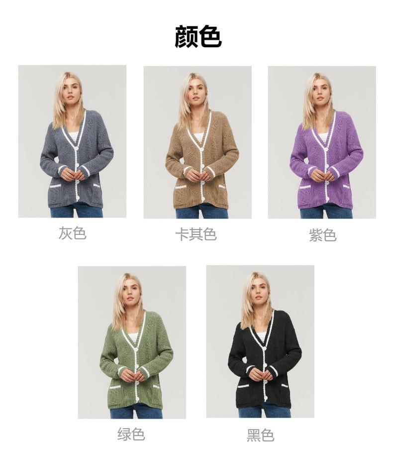 Suéter cárdigan de punto para mujer, otoño e invierno 2024, estilo europeo y americano, combina con todo, cuello en V, bolsillo, color a juego, suéter de punto de manga larga, abrigo para mujer