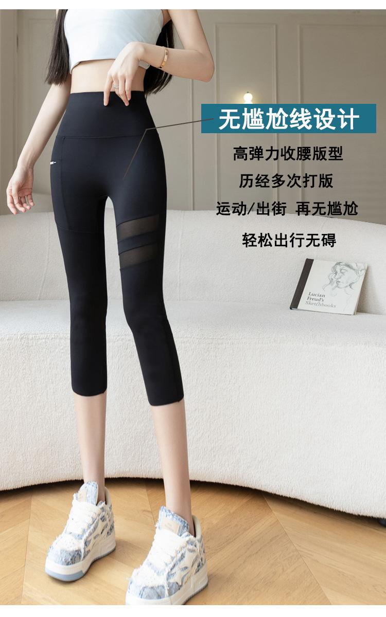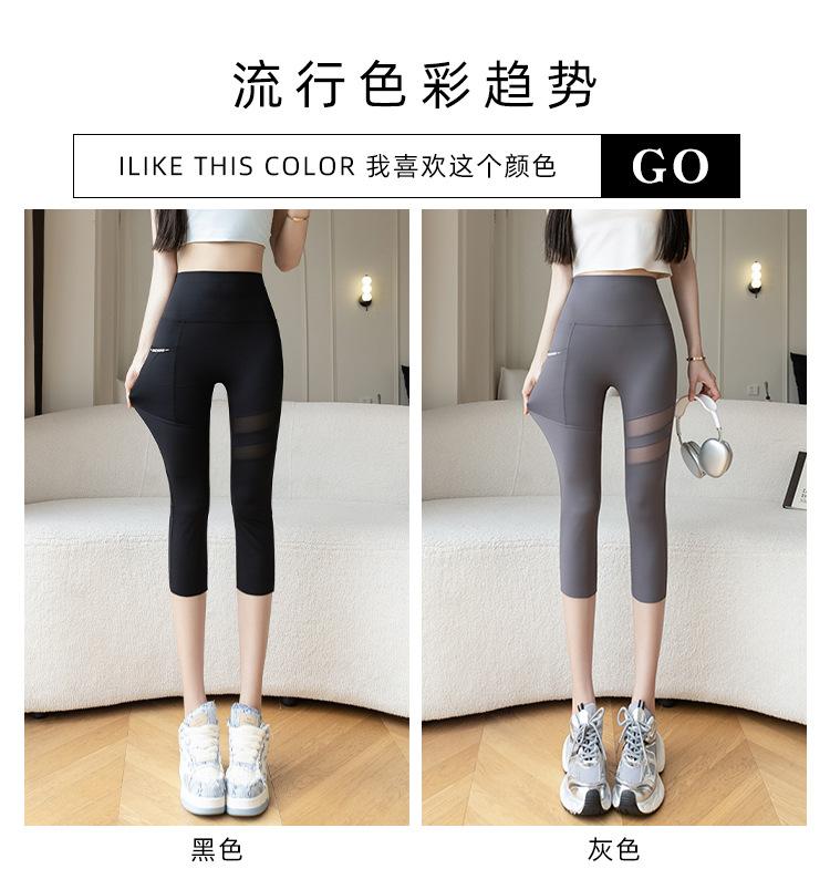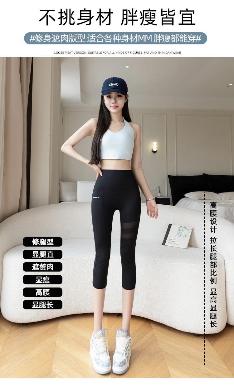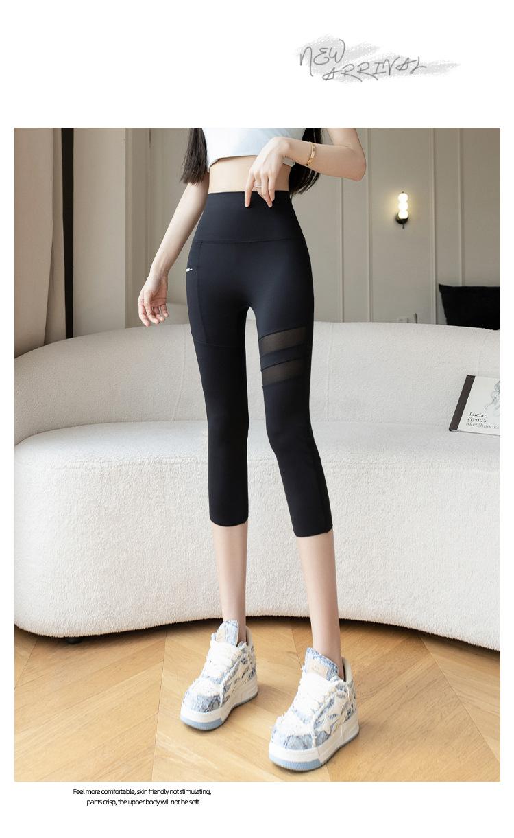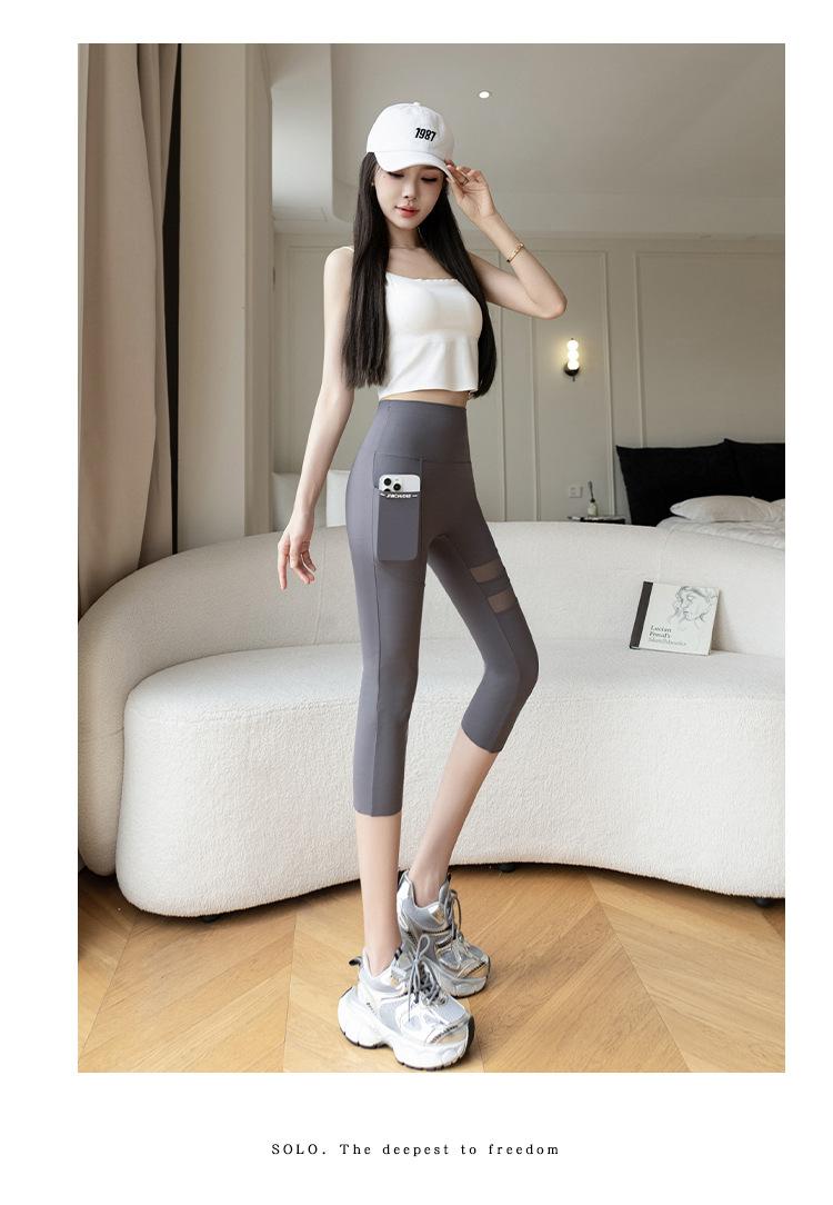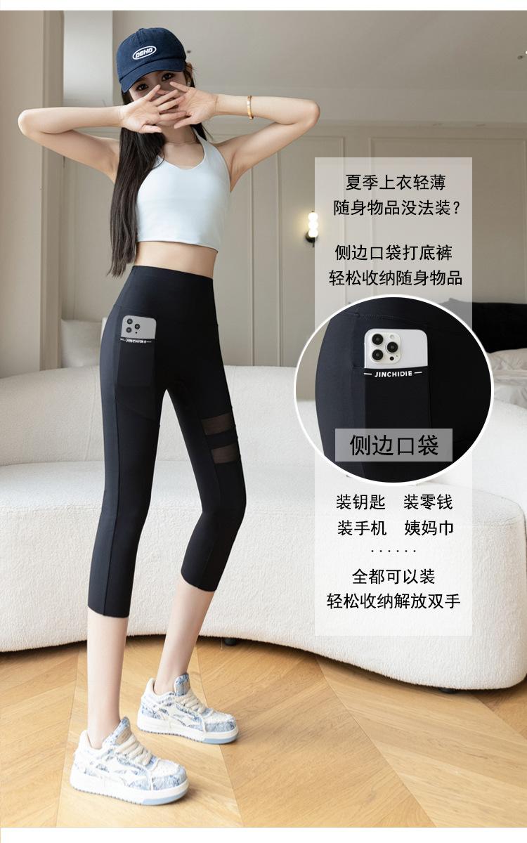 Pantalones Tiburón de Tres Puntos para Mujer Verano Delgados Ropa Exterior Cintura Alta Bolsillo Malla Pantalones de Yoga Talla Grande Elásticos Transpirables Leggings