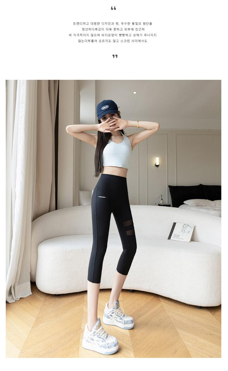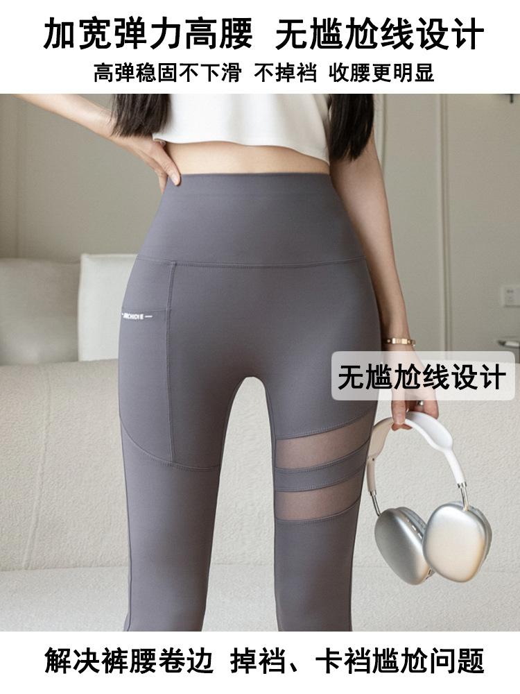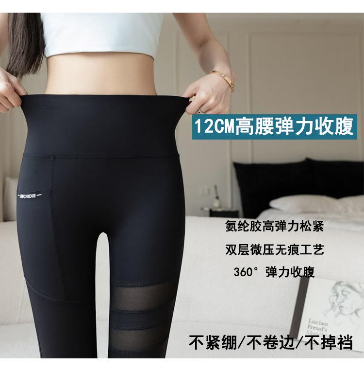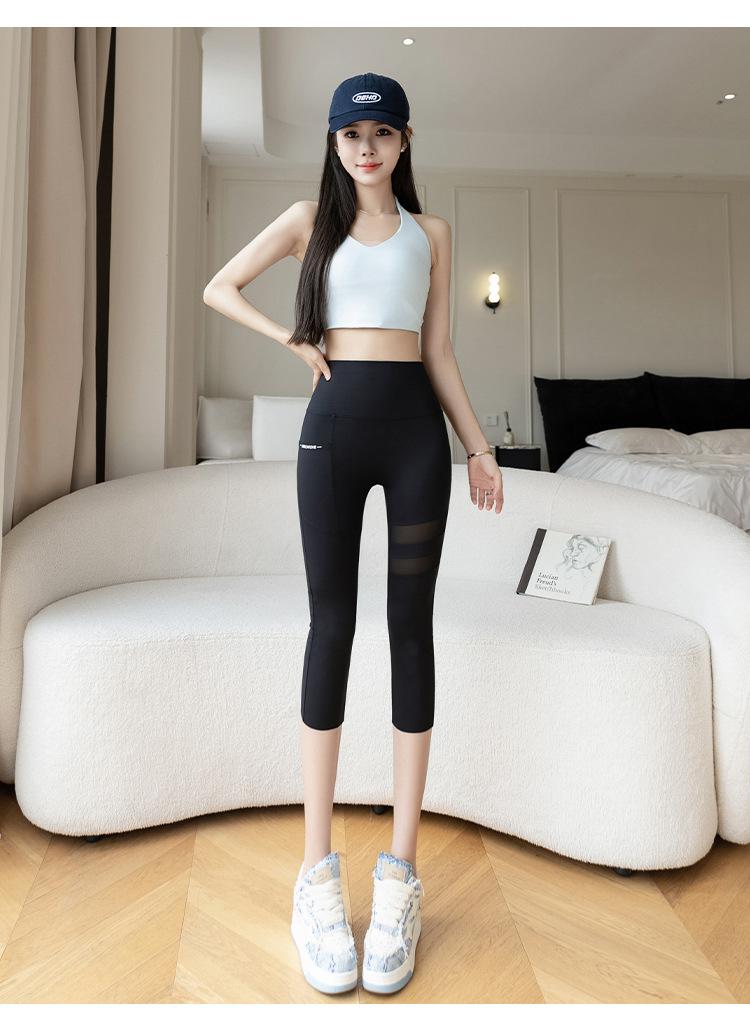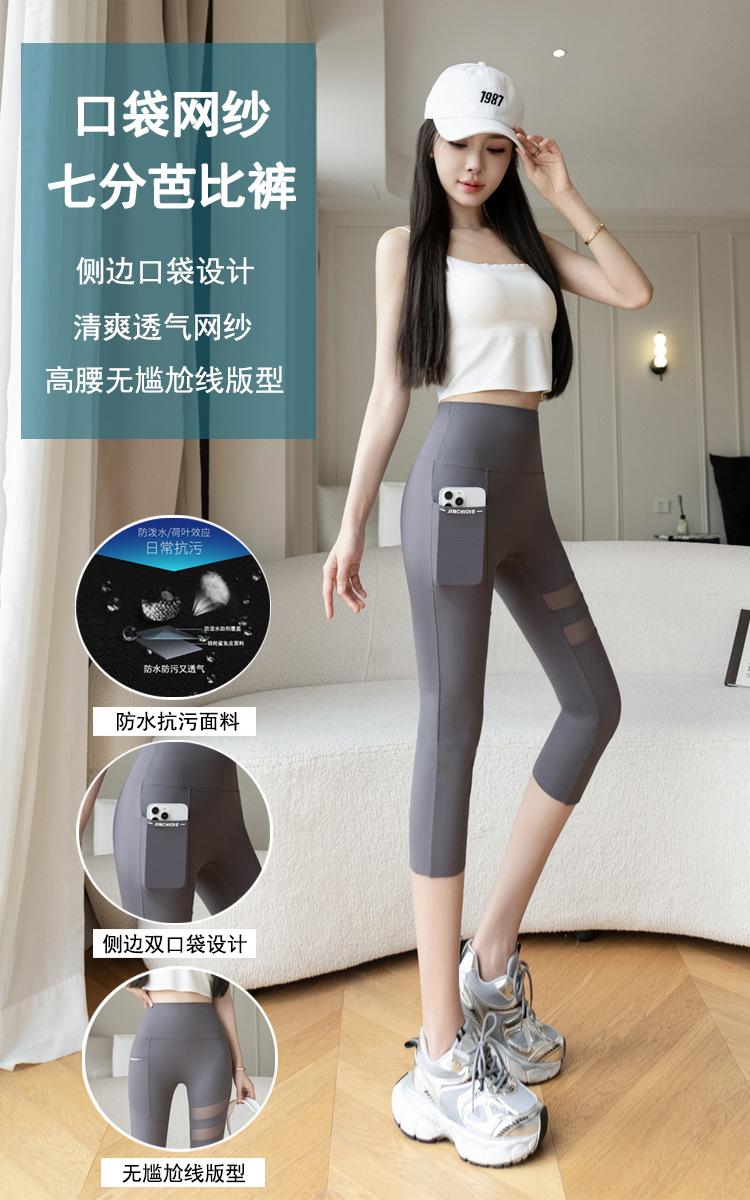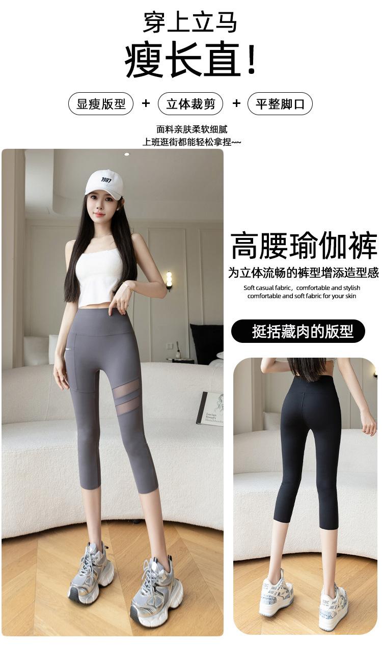 Pantalones Tiburón de Tres Puntos para Mujer Verano Delgados Ropa Exterior Cintura Alta Bolsillo Malla Pantalones de Yoga Talla Grande Elásticos Transpirables Leggings