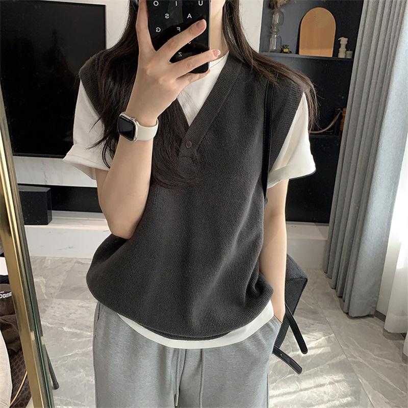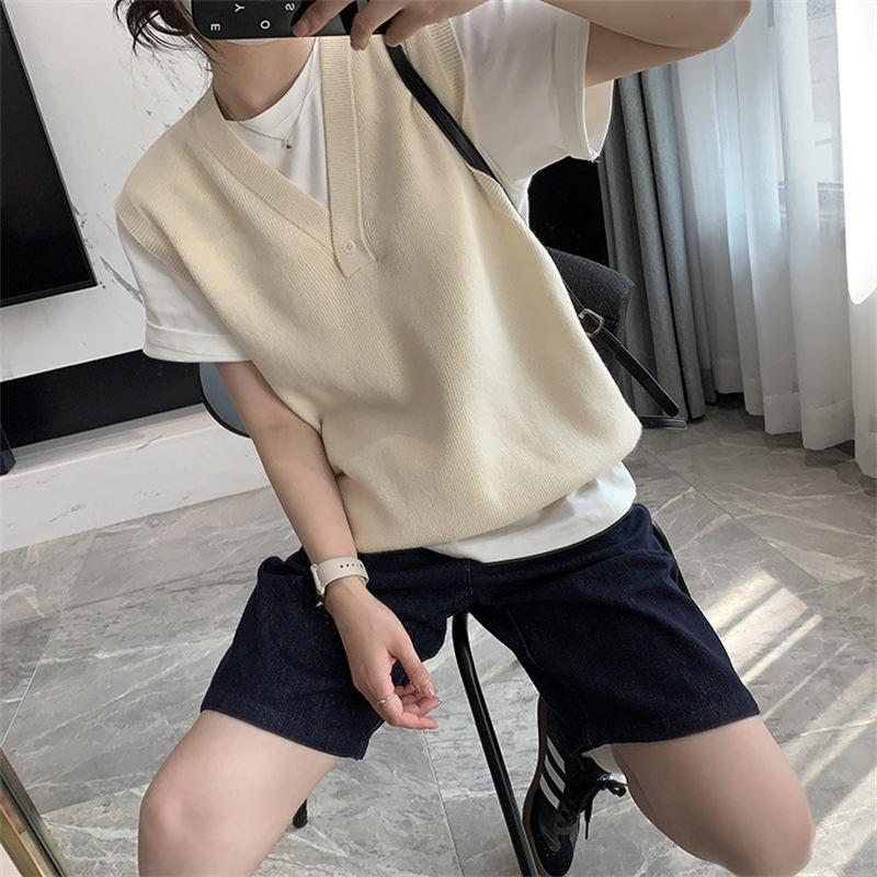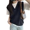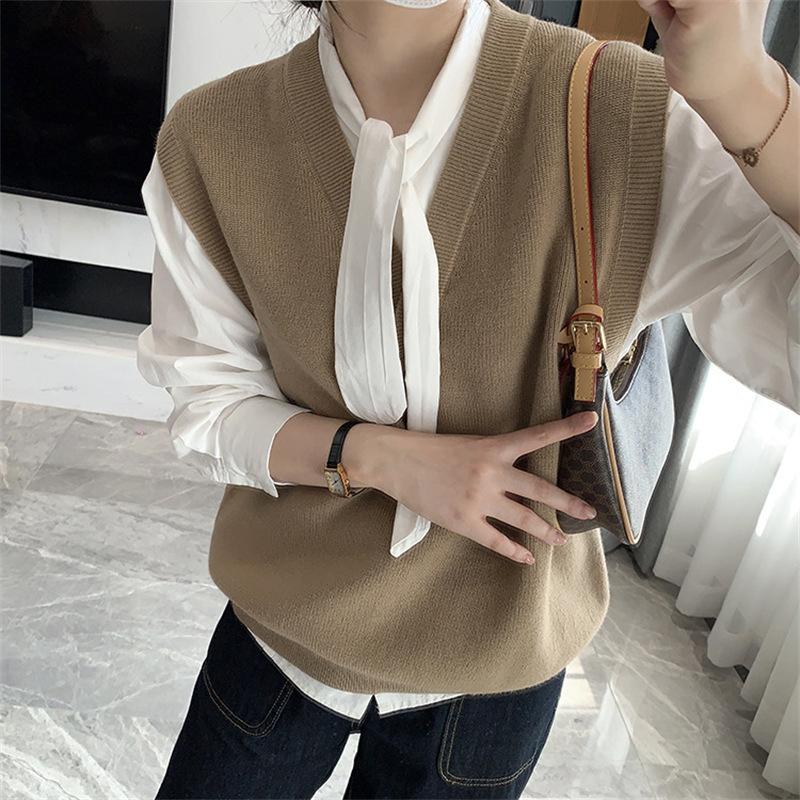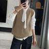 Chaleco coreano retro holgado con cuello en V para ropa exterior, nuevo diseño de otoño 2025, chaleco de punto en capas