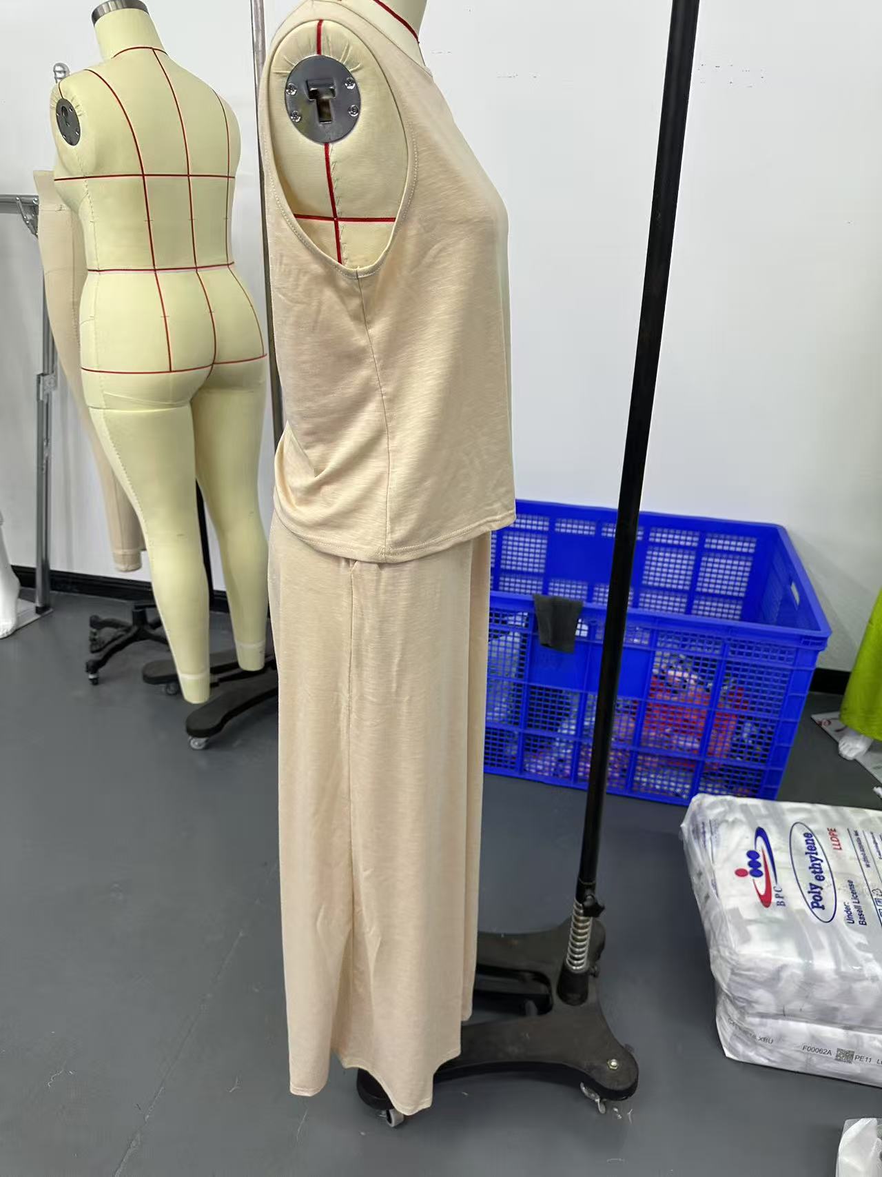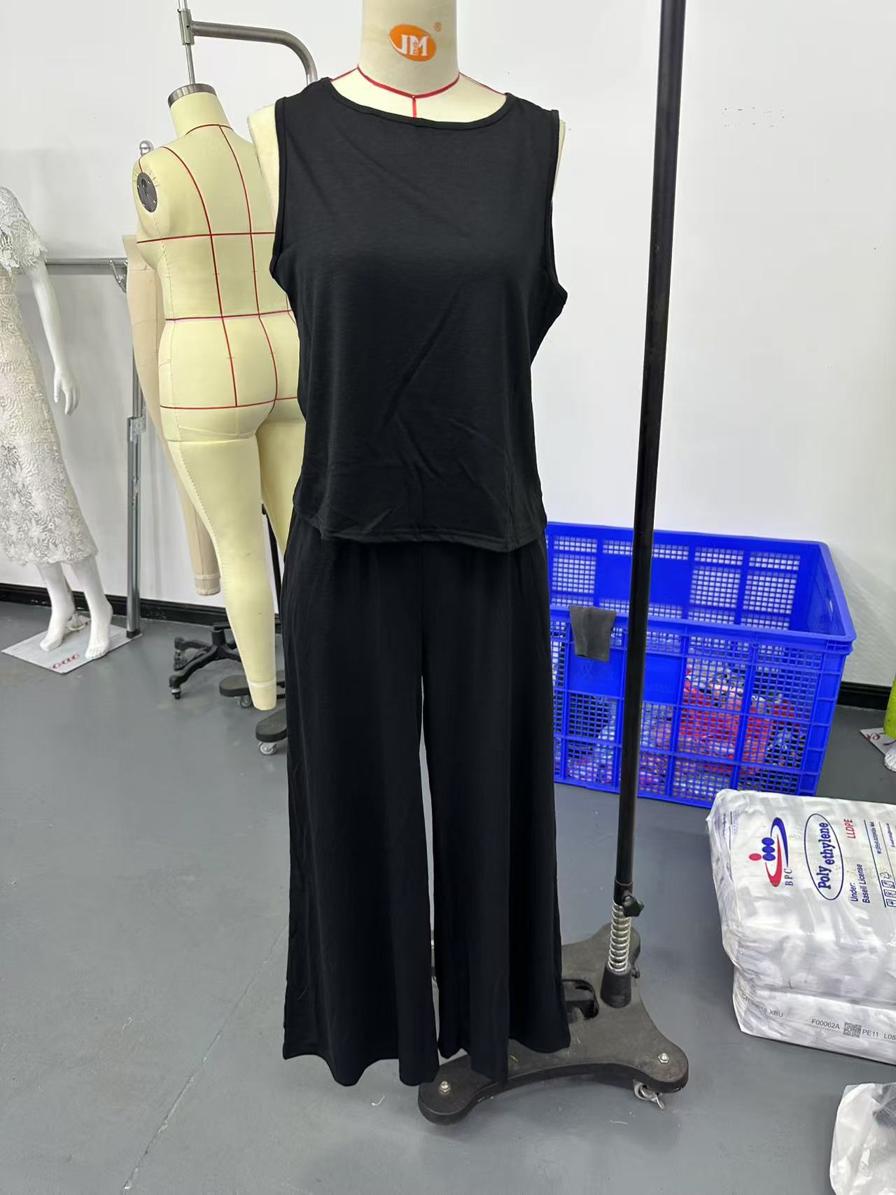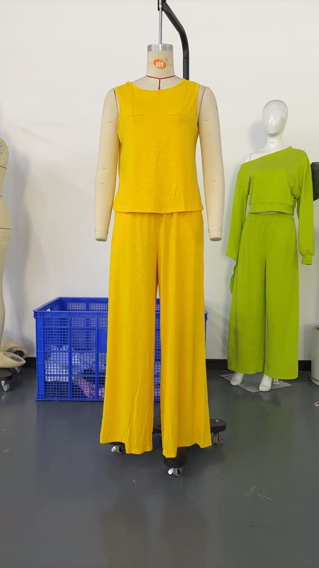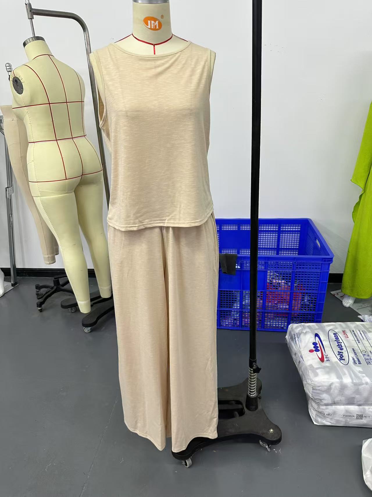 Conjunto de dos piezas de verano nuevo 2025 para mujer Europeo y americano Moderno Versátil Suelto Jersey Cuello redondo Casual Traje de algodón para mujer