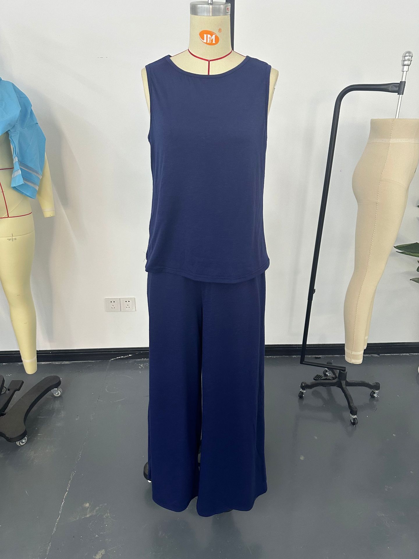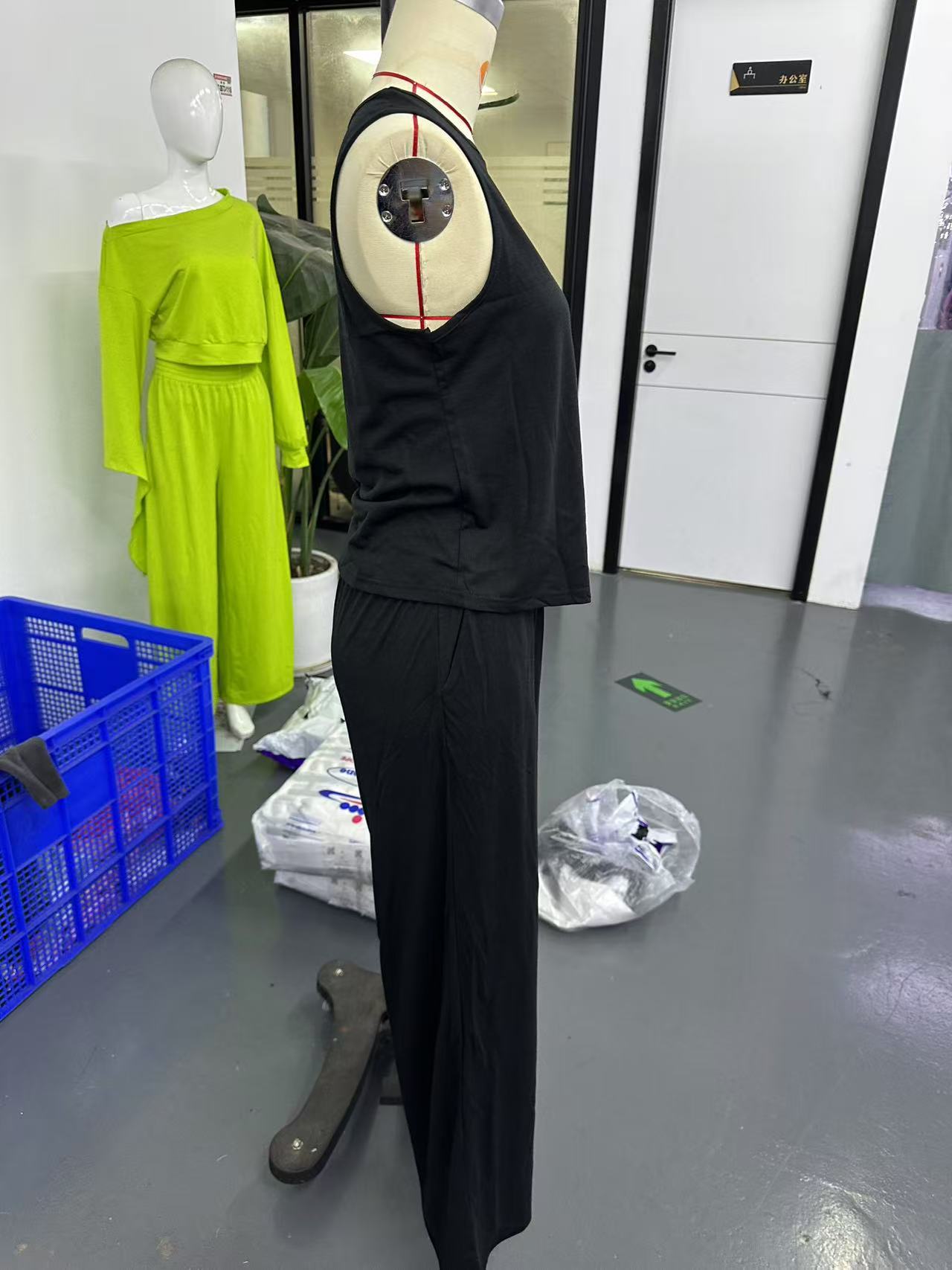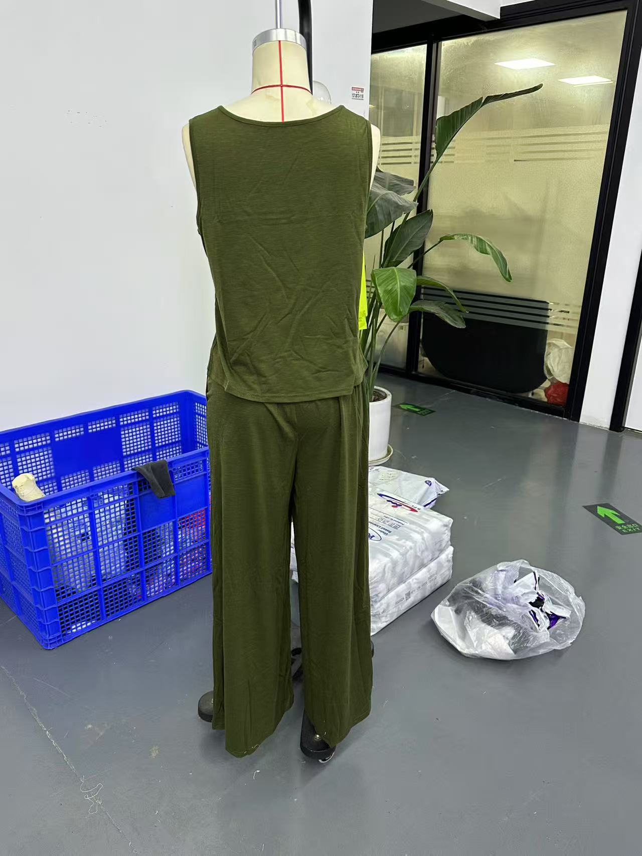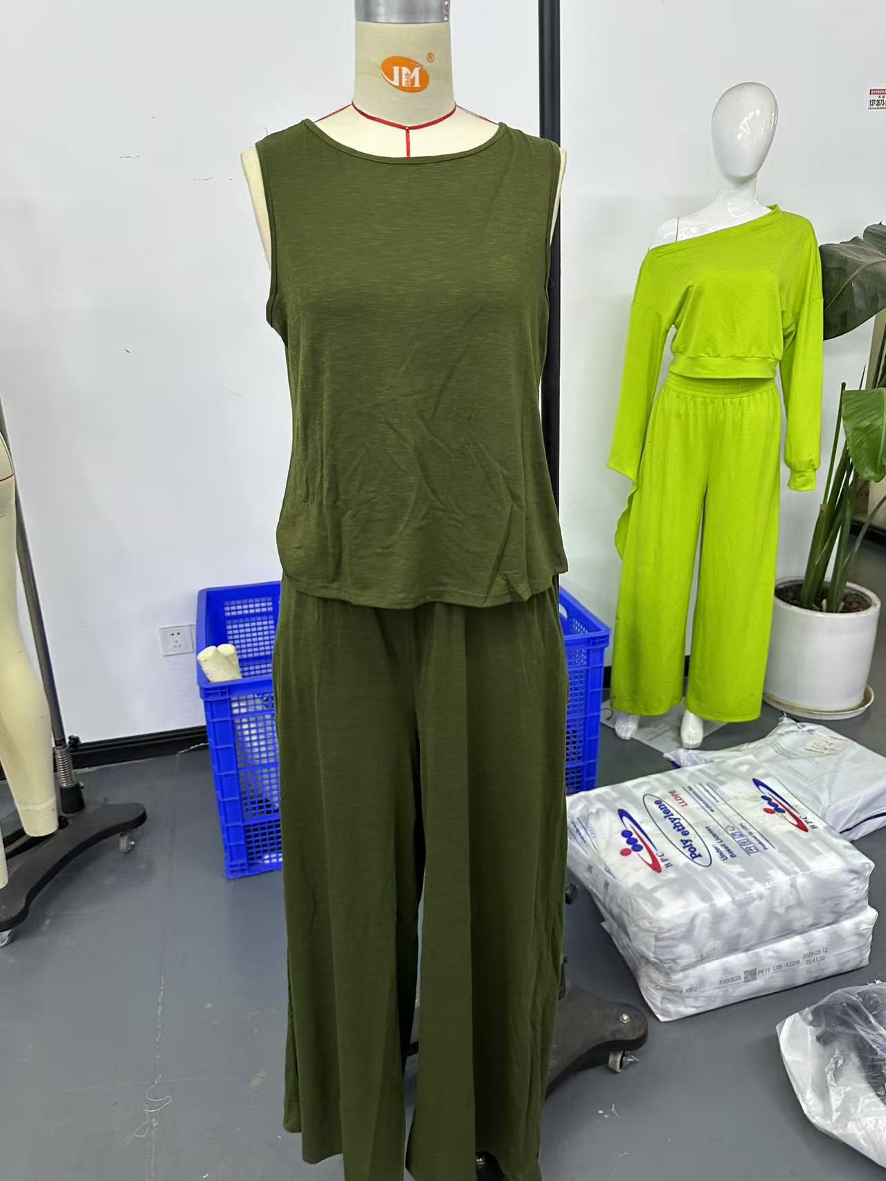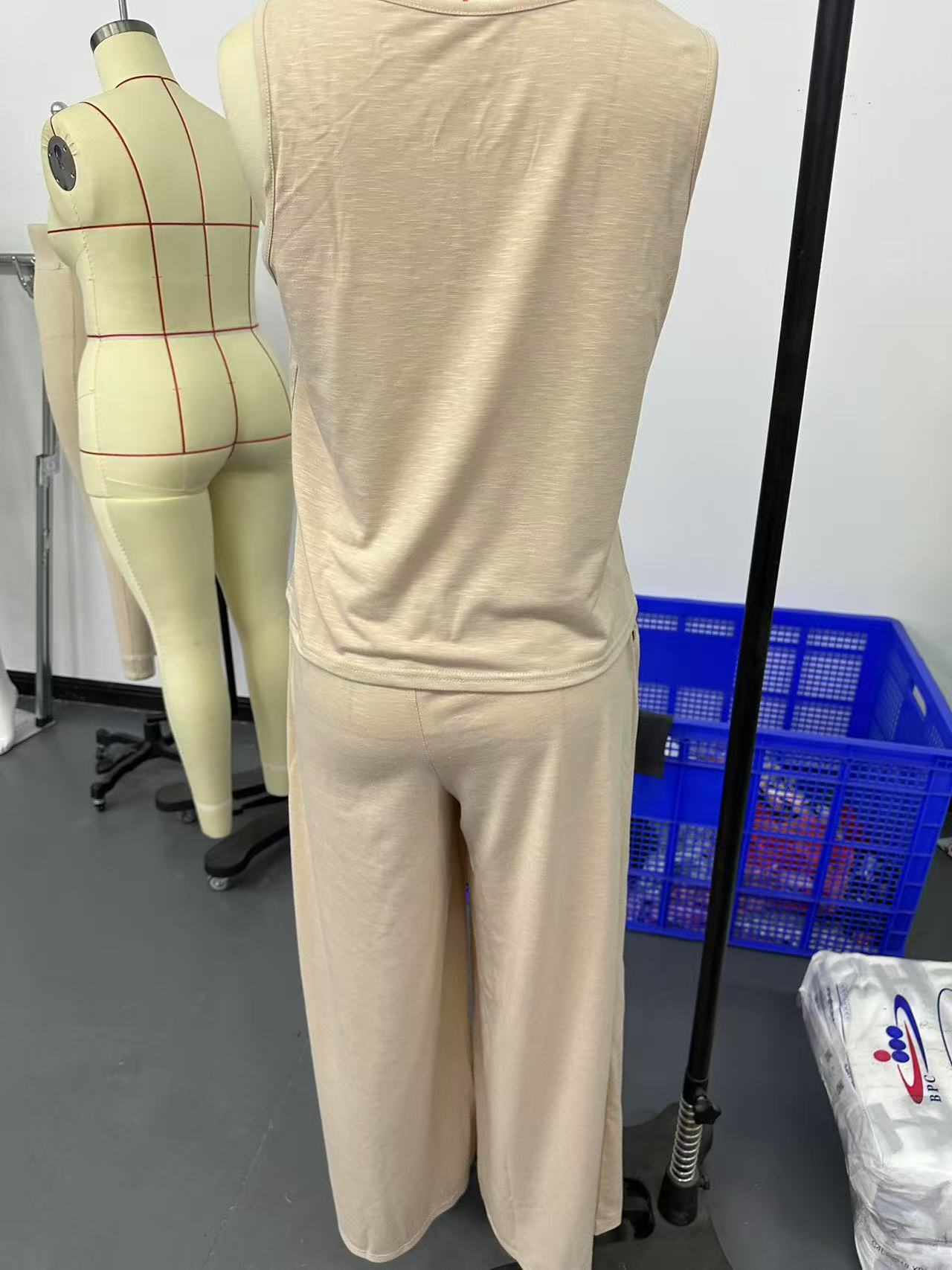 Conjunto de dos piezas de verano nuevo 2025 para mujer Europeo y americano Moderno Versátil Suelto Jersey Cuello redondo Casual Traje de algodón para mujer