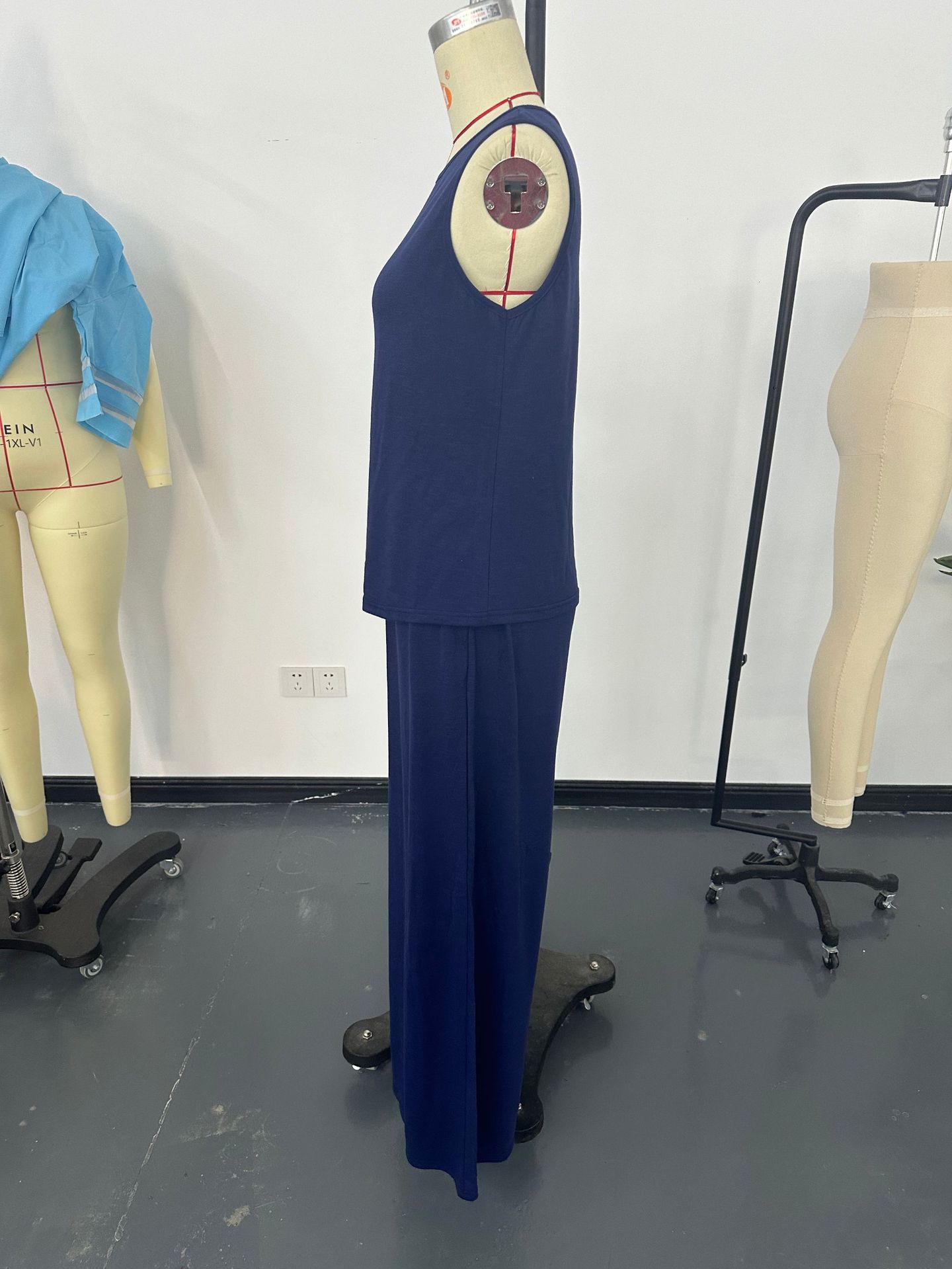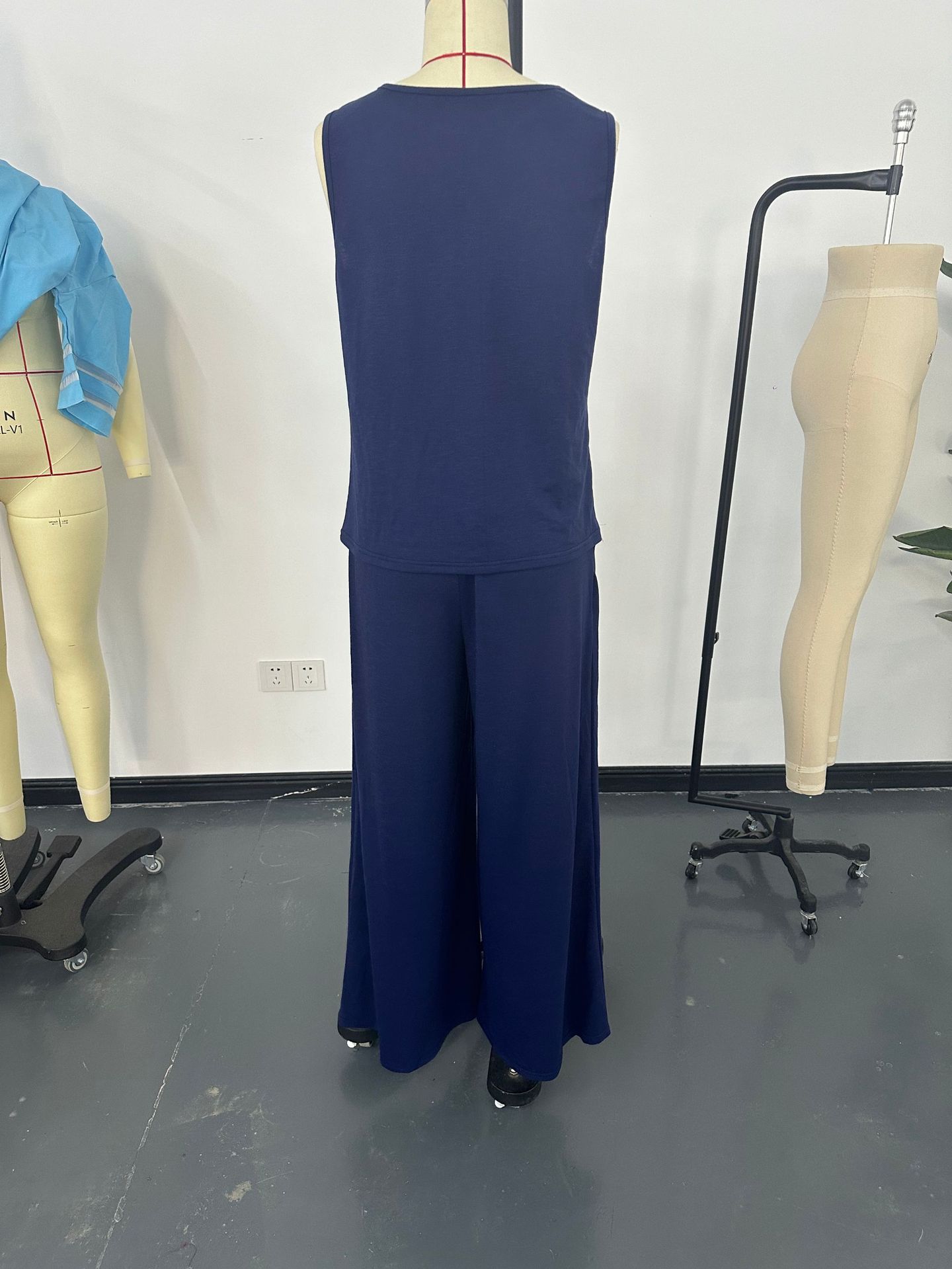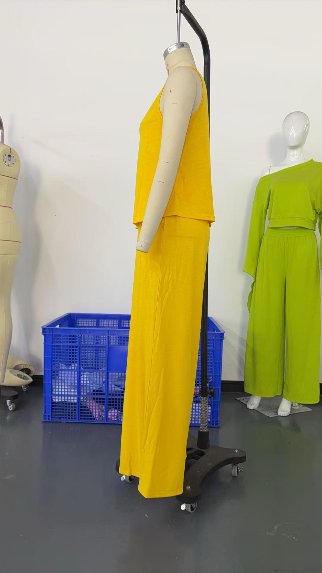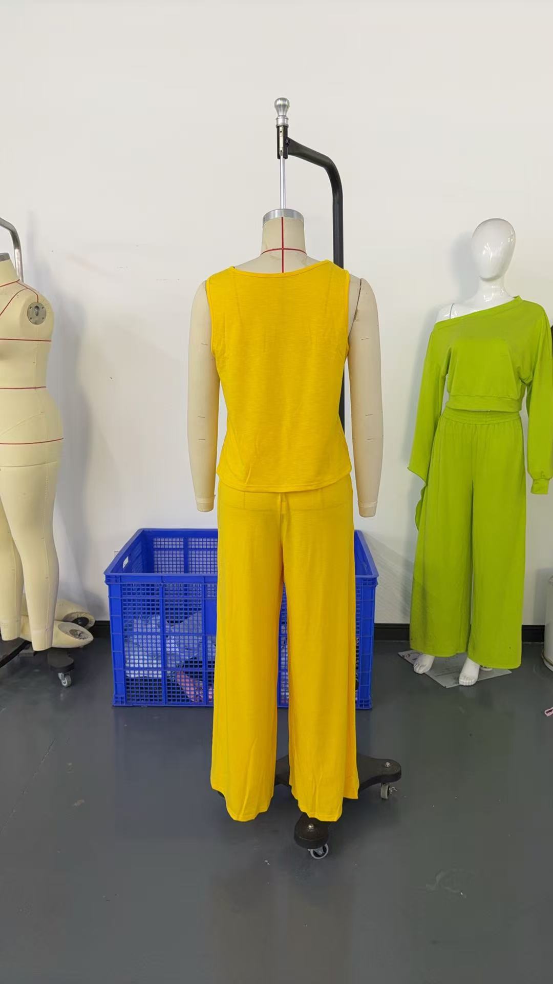 Conjunto de dos piezas de verano nuevo 2025 para mujer Europeo y americano Moderno Versátil Suelto Jersey Cuello redondo Casual Traje de algodón para mujer