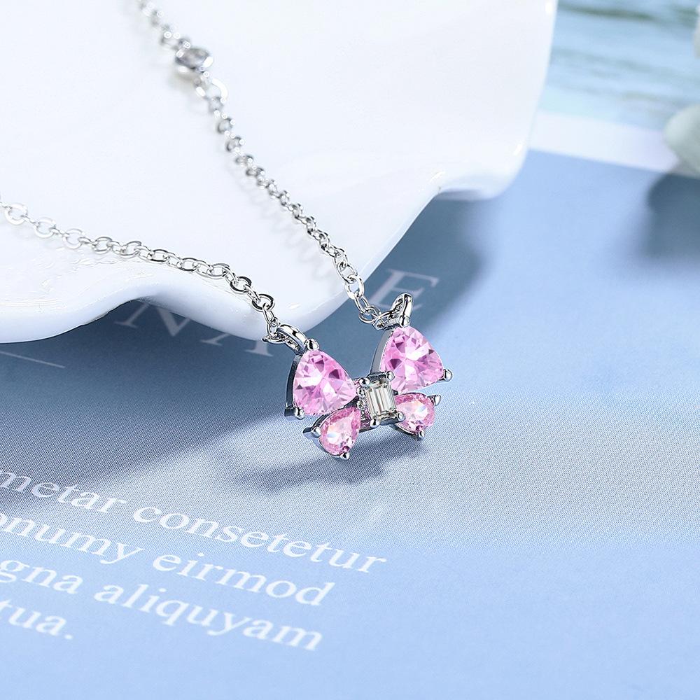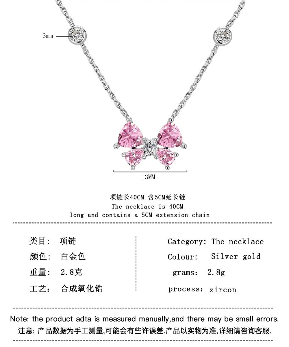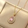 Collar de circonita rosa para mujer, diseño elegante, cadena de clavícula que combina con todo, colgante con personalidad transfronteriza.