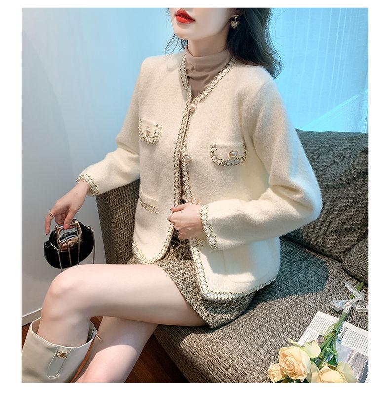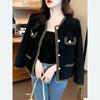 Chaqueta de moda estilo Chanel 2024 para todo tipo de combinaciones, estilo coreano, holgada, de punto, para mujer, primavera y otoño, elegante y socialité.