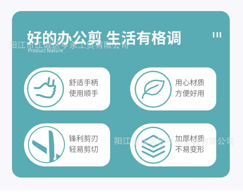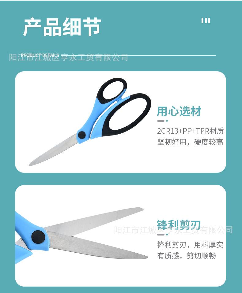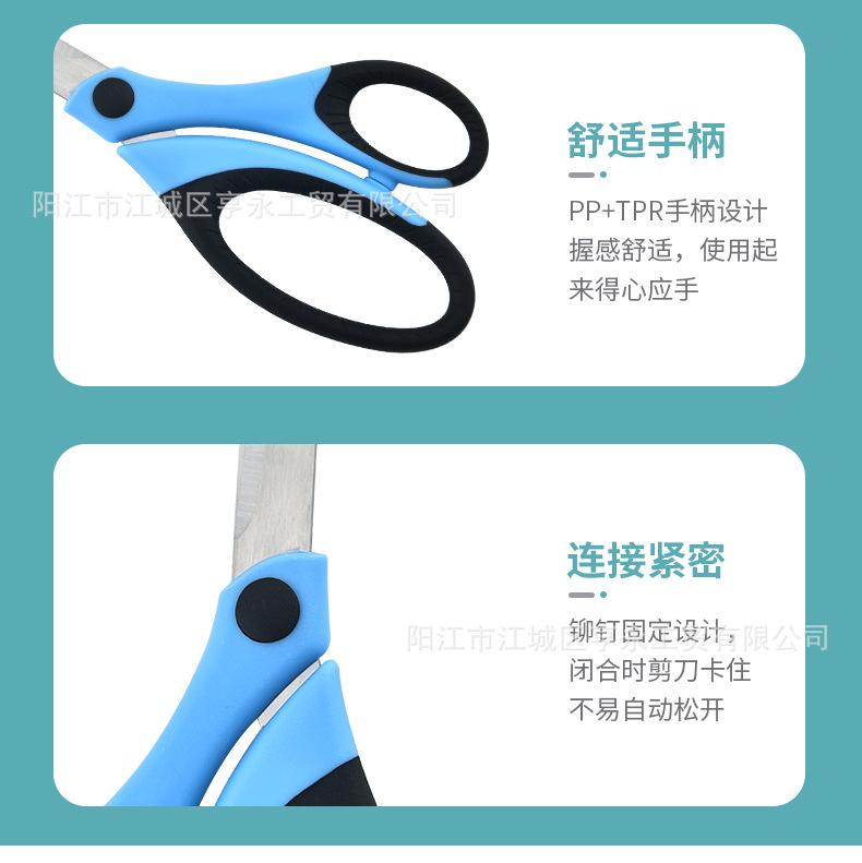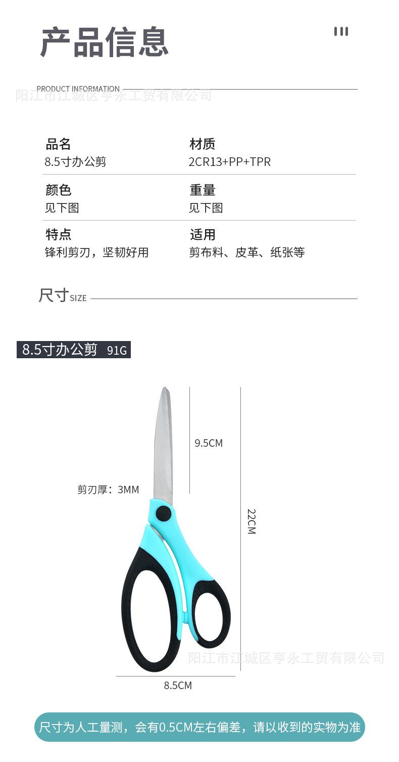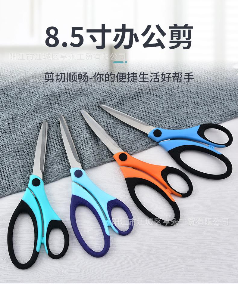 Tijeras de oficina de 8.5 pulgadas de acero inoxidable hechas a mano para uso transfronterizo, tijeras multifuncionales para el hogar, papelería DIY, tijeras de oficina