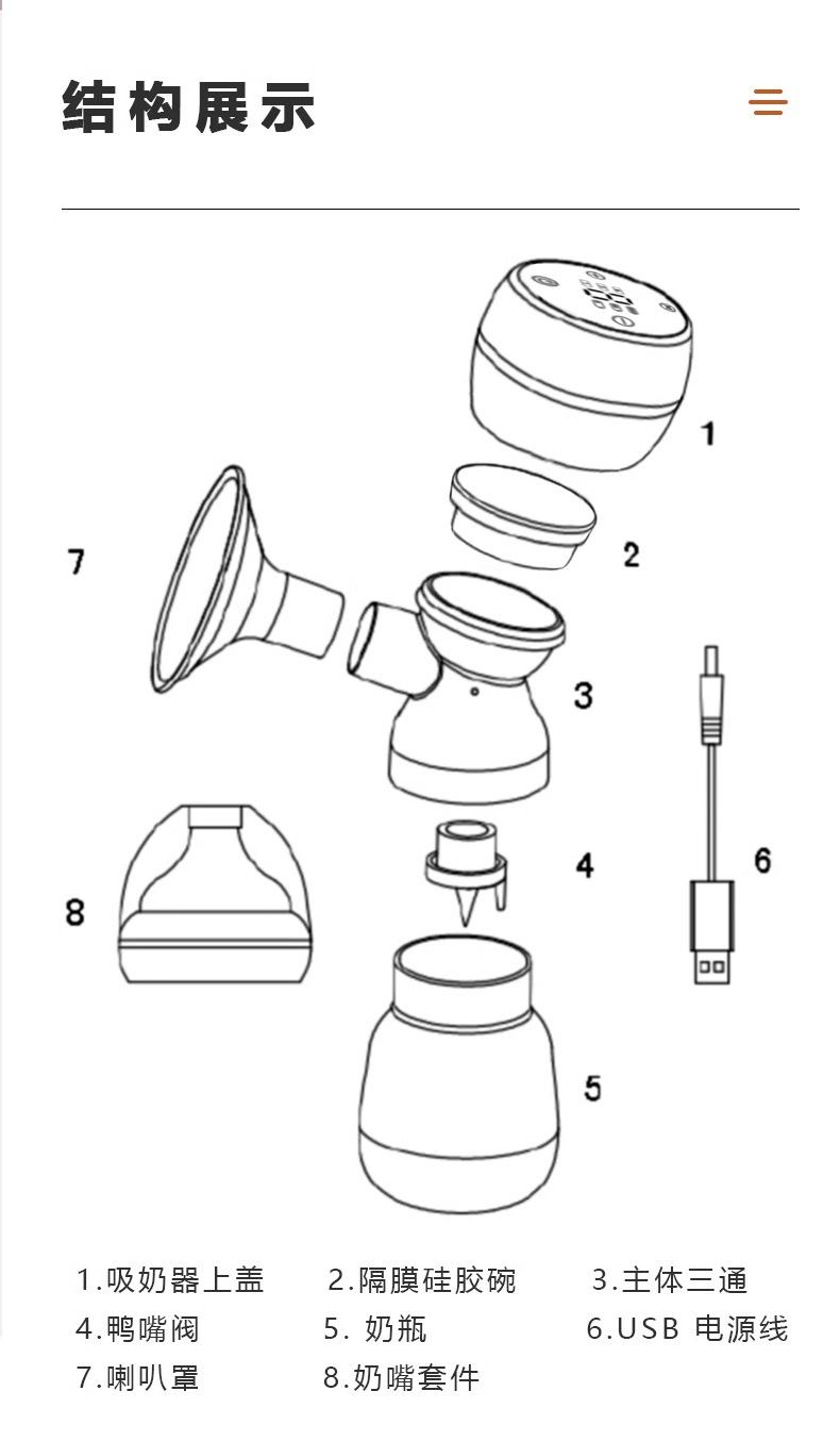 Extractor de Leche Eléctrico Inteligente Integrado Succión Fuerte Leche Materna Masaje Postparto Extractor de Leche Silencioso Extractor de Leche Inteligente