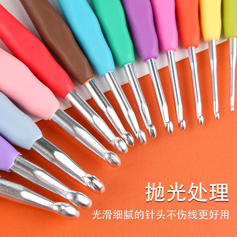 Nueva herramienta de tejer de Amazon, accesorios para suéter, aguja de gancho de óxido de aluminio, color TPR, mango suave, traje de crochet