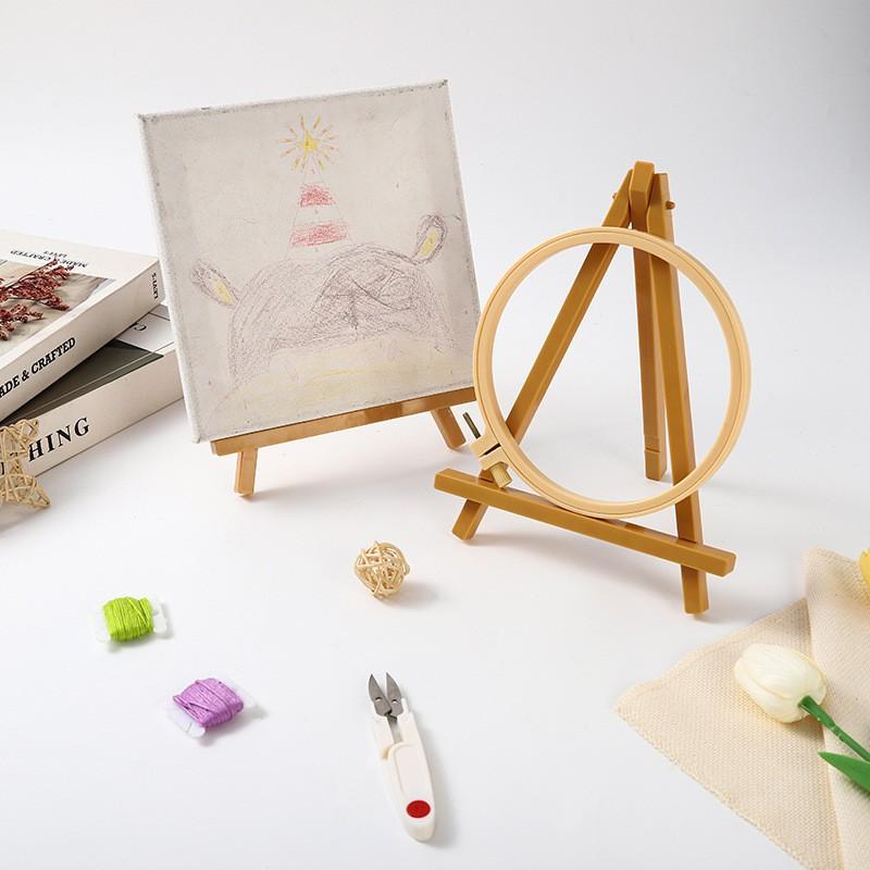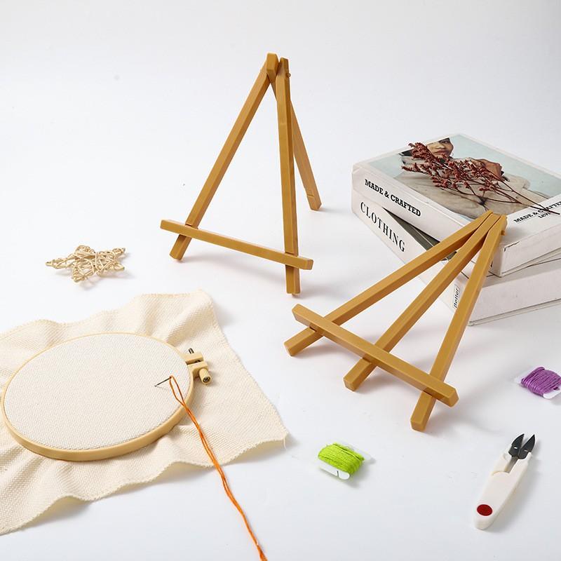 Nuevo mini soporte de exhibición triangular de escritorio plegable de plástico para niños de 18*24, soporte de teléfono móvil de madera maciza, caballete pequeño de escritorio
