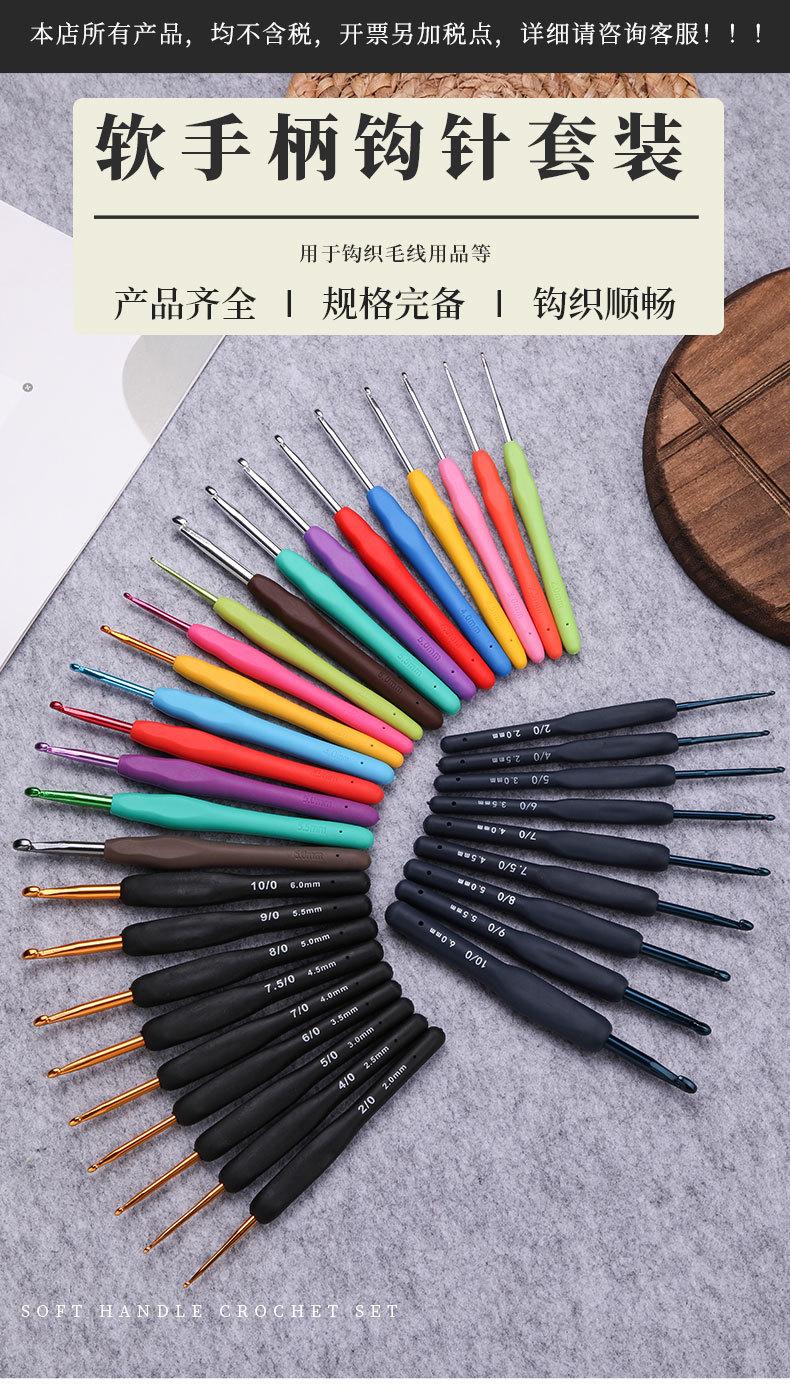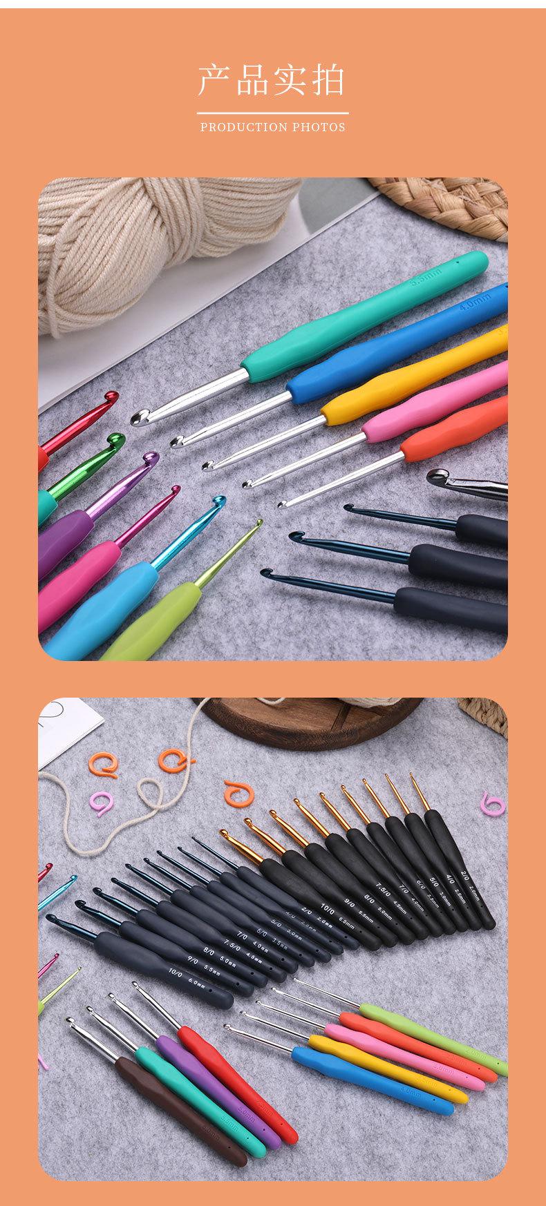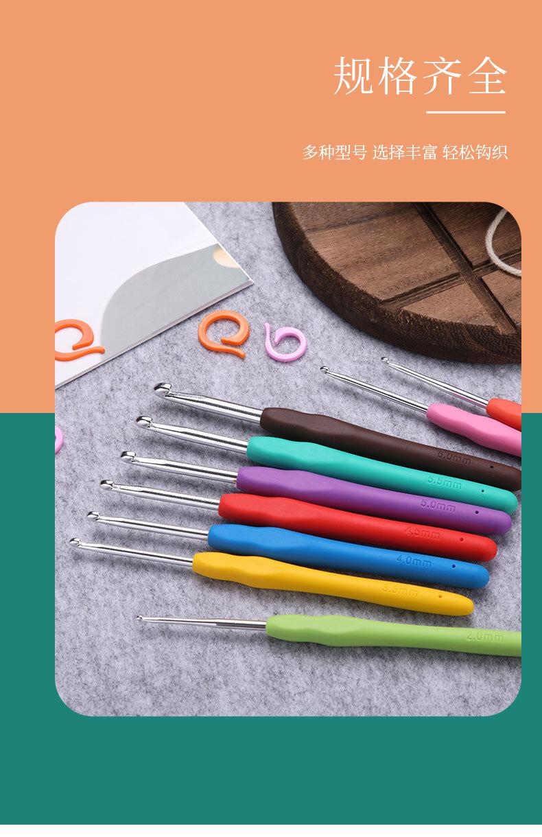 Traje de crochet de aluminio con mango suave de TPR de color hecho a mano, suéter de ganchillo de plástico con gancho, venta al por mayor, de metal.