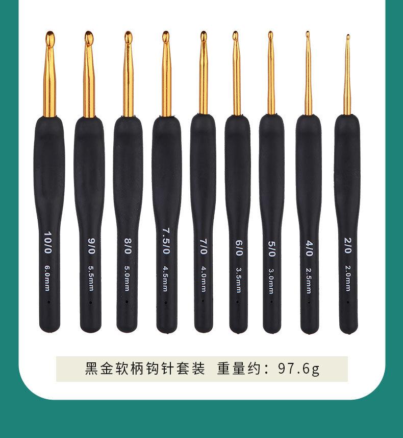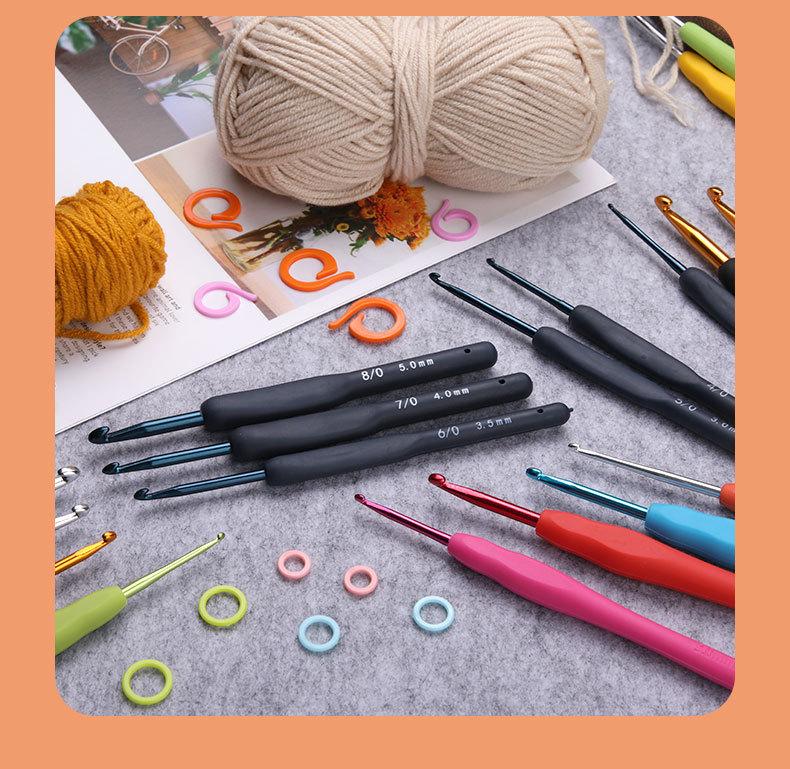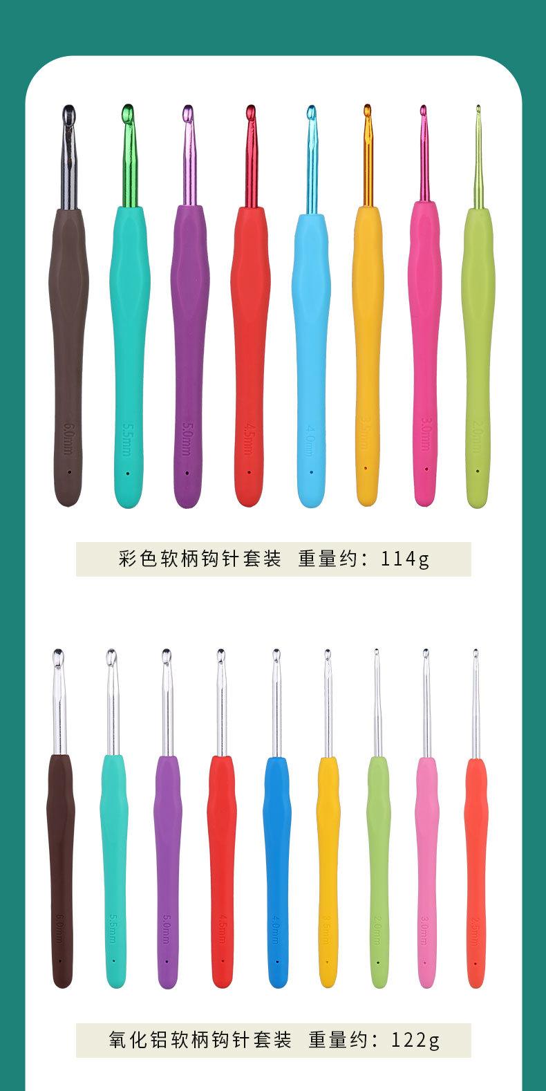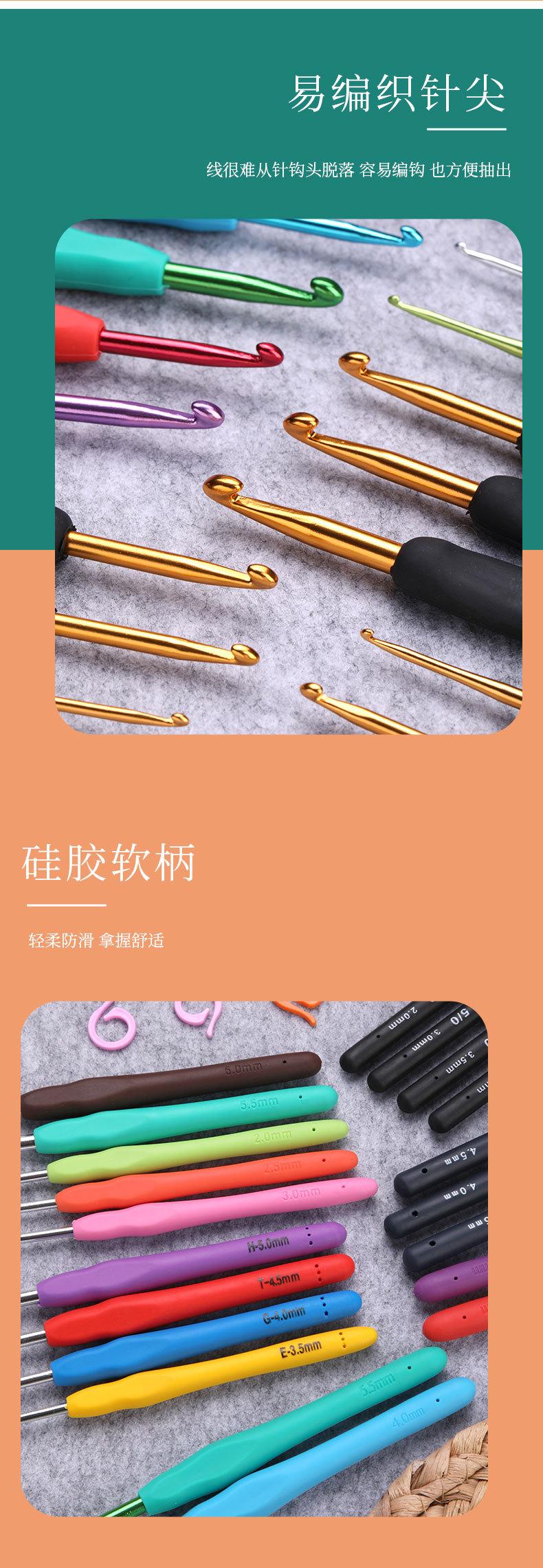 Traje de crochet de aluminio con mango suave de TPR de color hecho a mano, suéter de ganchillo de plástico con gancho, venta al por mayor, de metal.