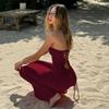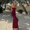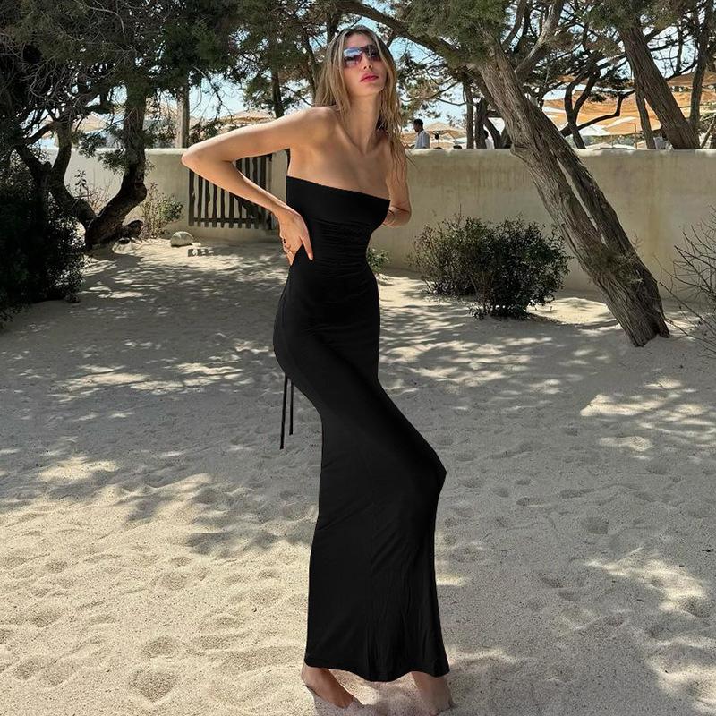 Ropa de mujer estilo europeo y americano, primavera y verano 2025, nuevo top de tubo sexy, vestido con abertura y cintura a juego en blanco y negro |