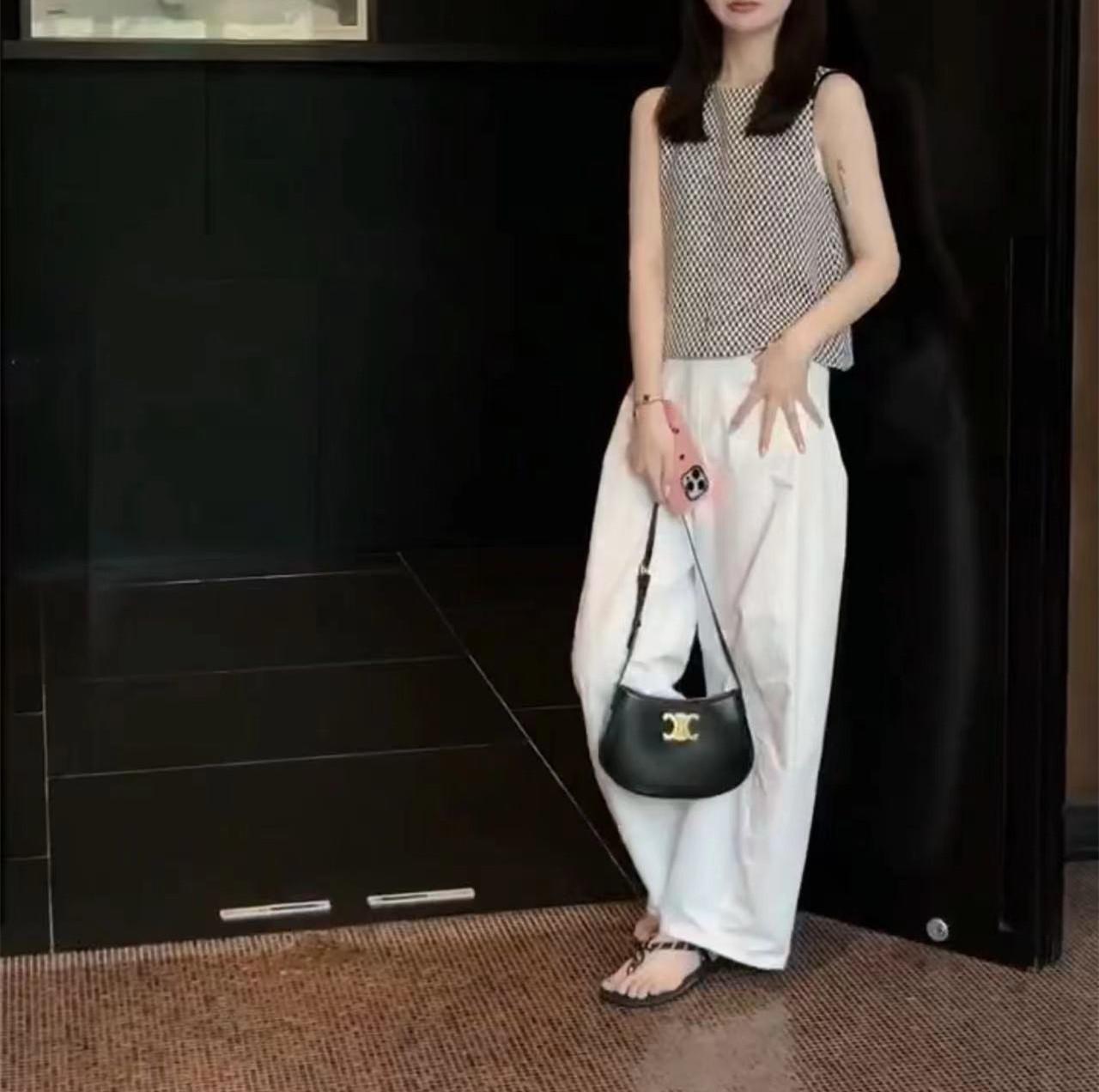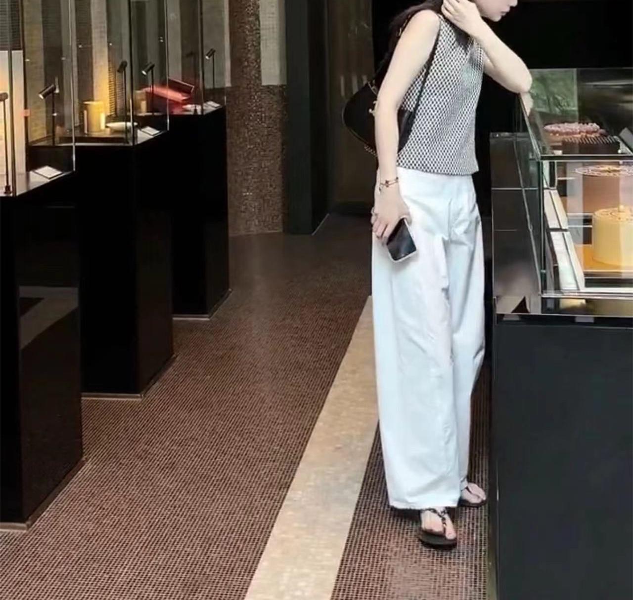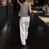 24386 Gran Amor Meiyuan 2025 Verano Nuevo Exquisito Top Chaleco a Cuadros Moda Casual Pantalones Pierna Ancha Mujer