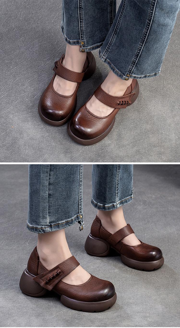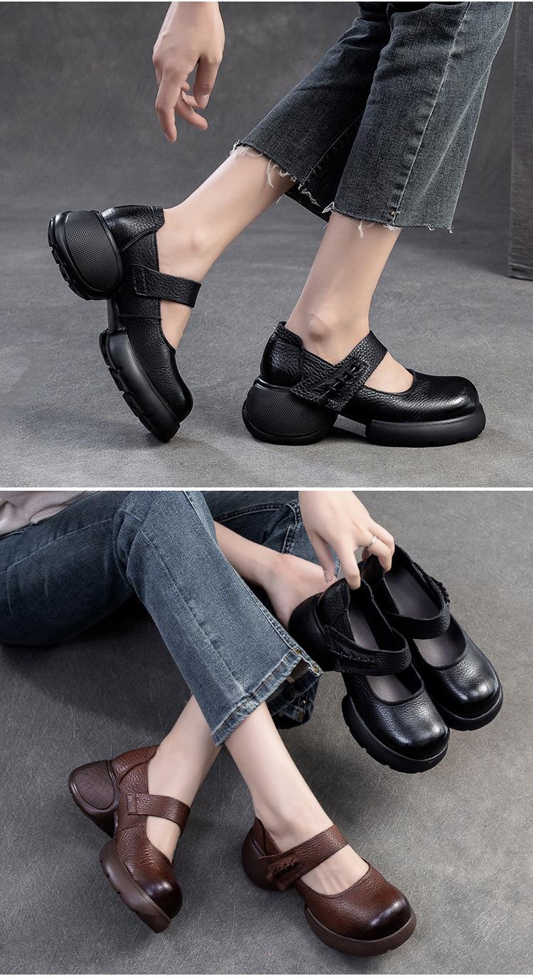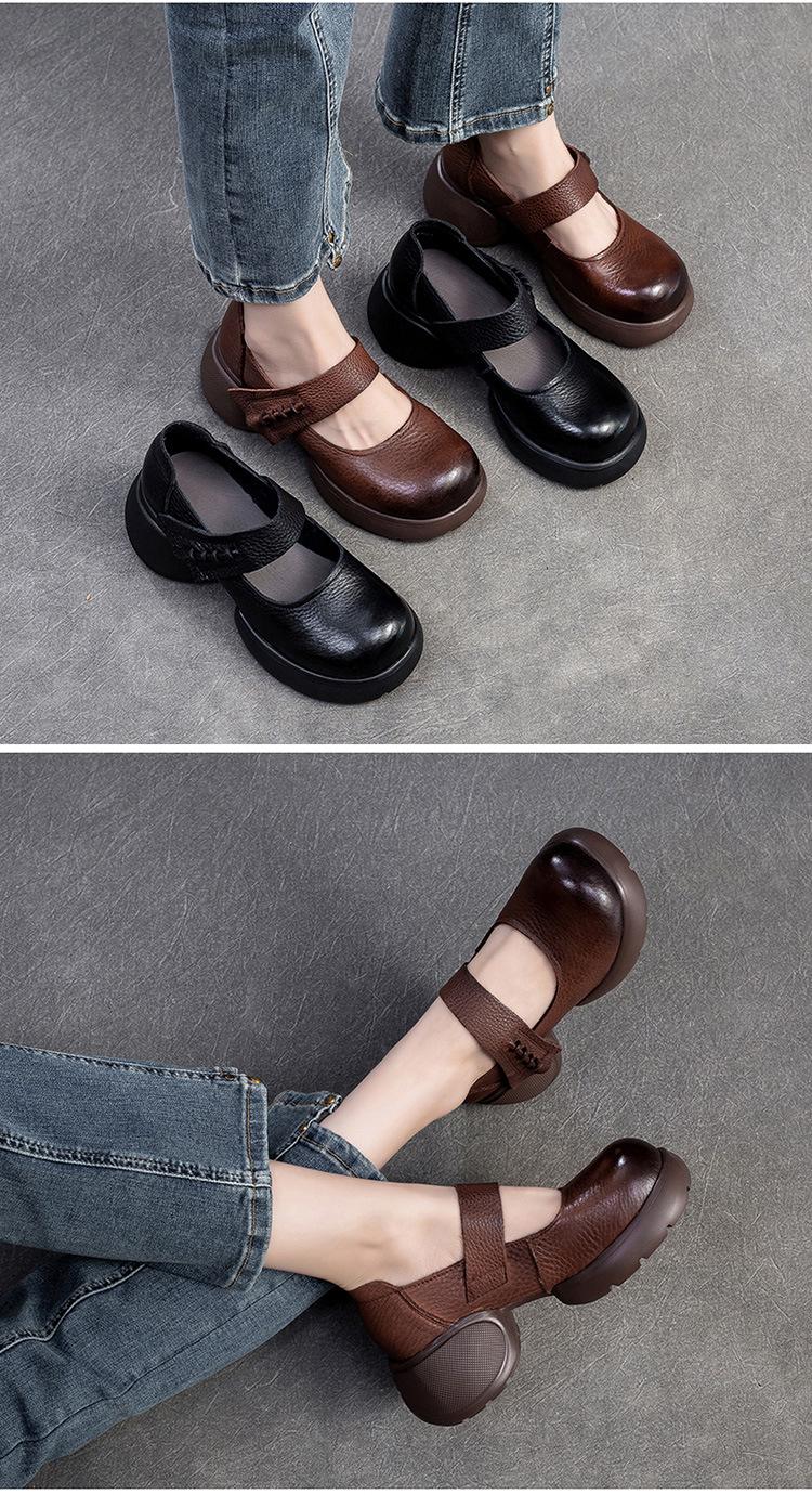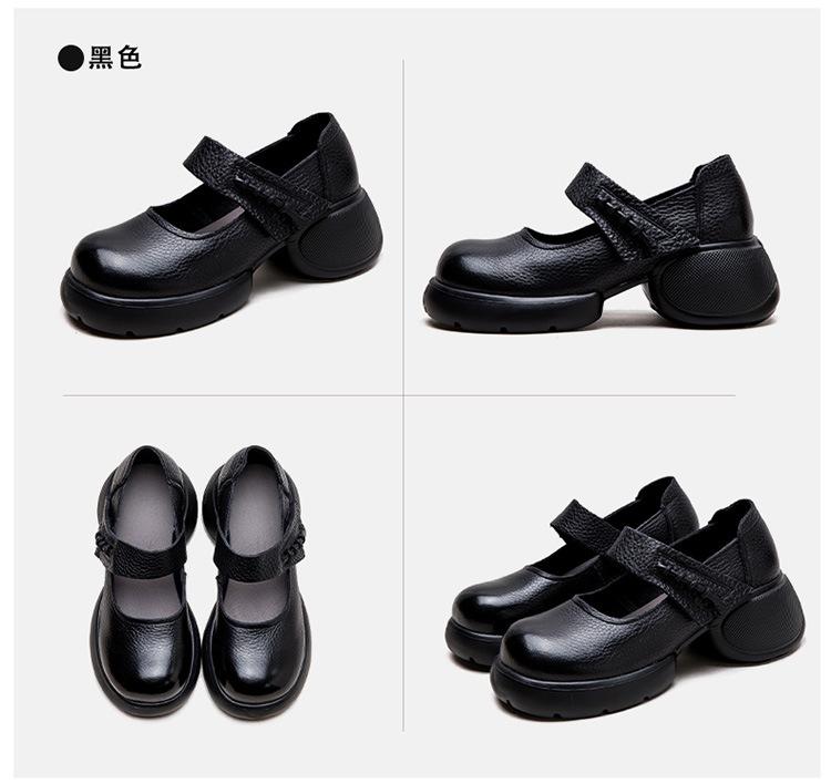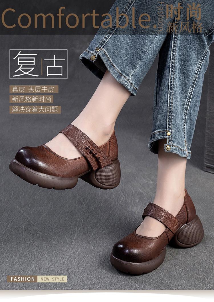 Shanghai Jiejie 2024 Otoño Nuevo Velcro Suela Gruesa Retro Cómodos Zapatos de Una Capa Mocasines Franceses Zapatos de Mujer Combinables