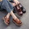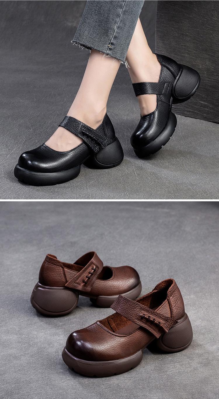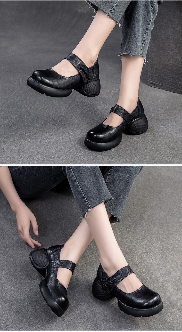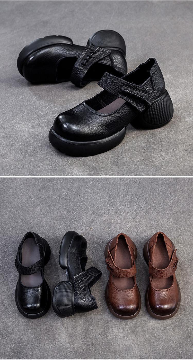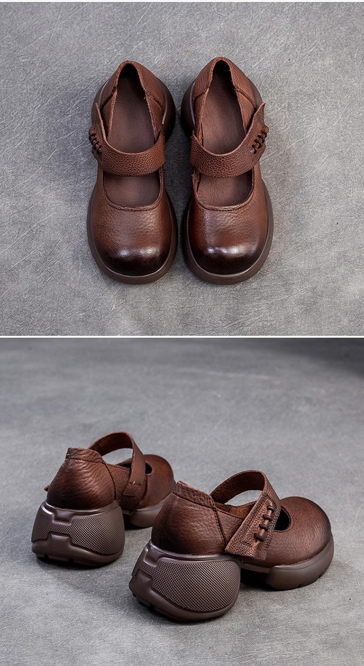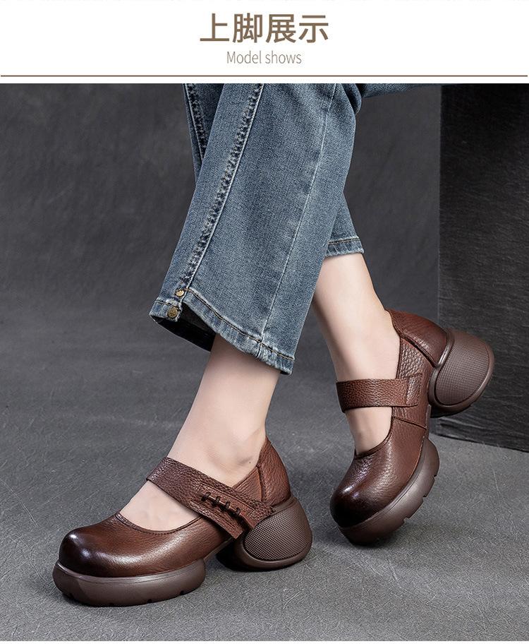 Shanghai Jiejie 2024 Otoño Nuevo Velcro Suela Gruesa Retro Cómodos Zapatos de Una Capa Mocasines Franceses Zapatos de Mujer Combinables