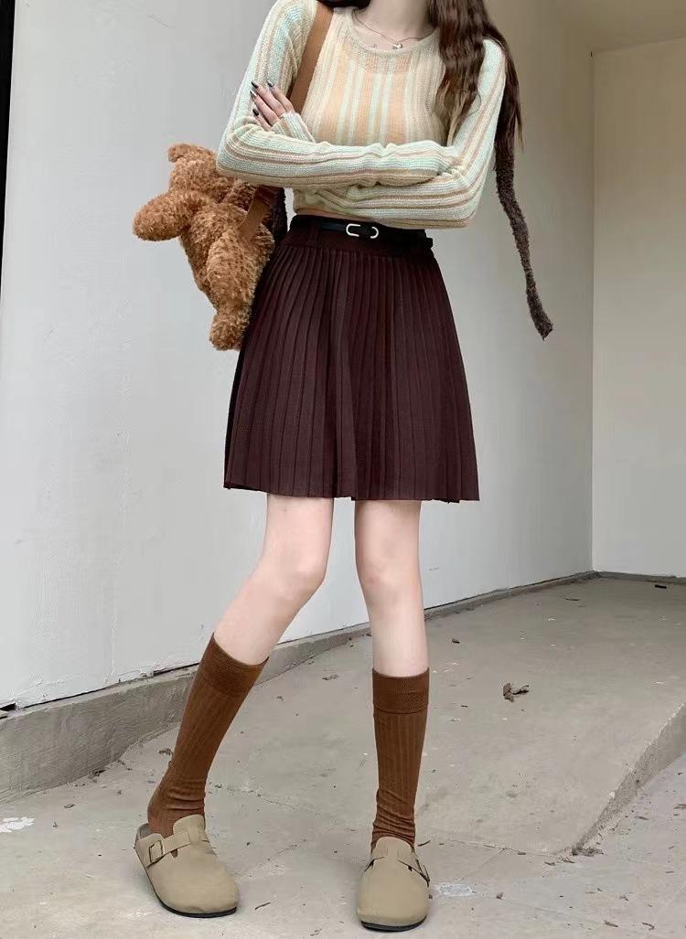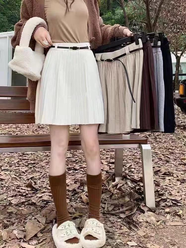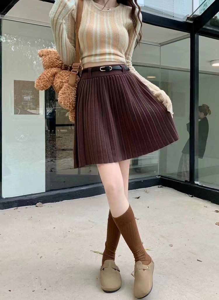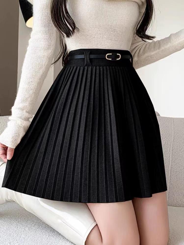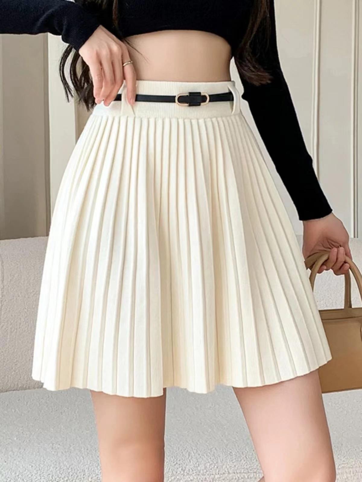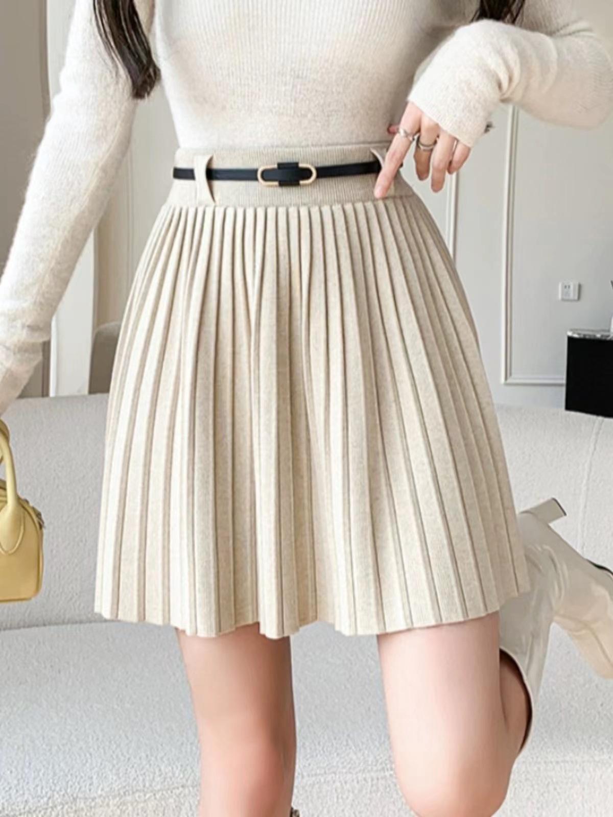 Falda Plisada Mujer 2025 Nueva Mujer Primavera y Otoño Cintura Alta Línea A Cinturón Falda Ajustada Cintura Elástica Falda de Punto
