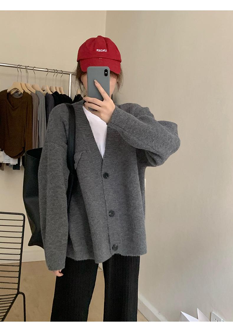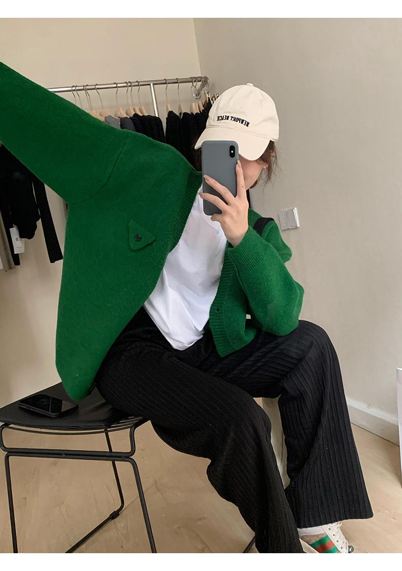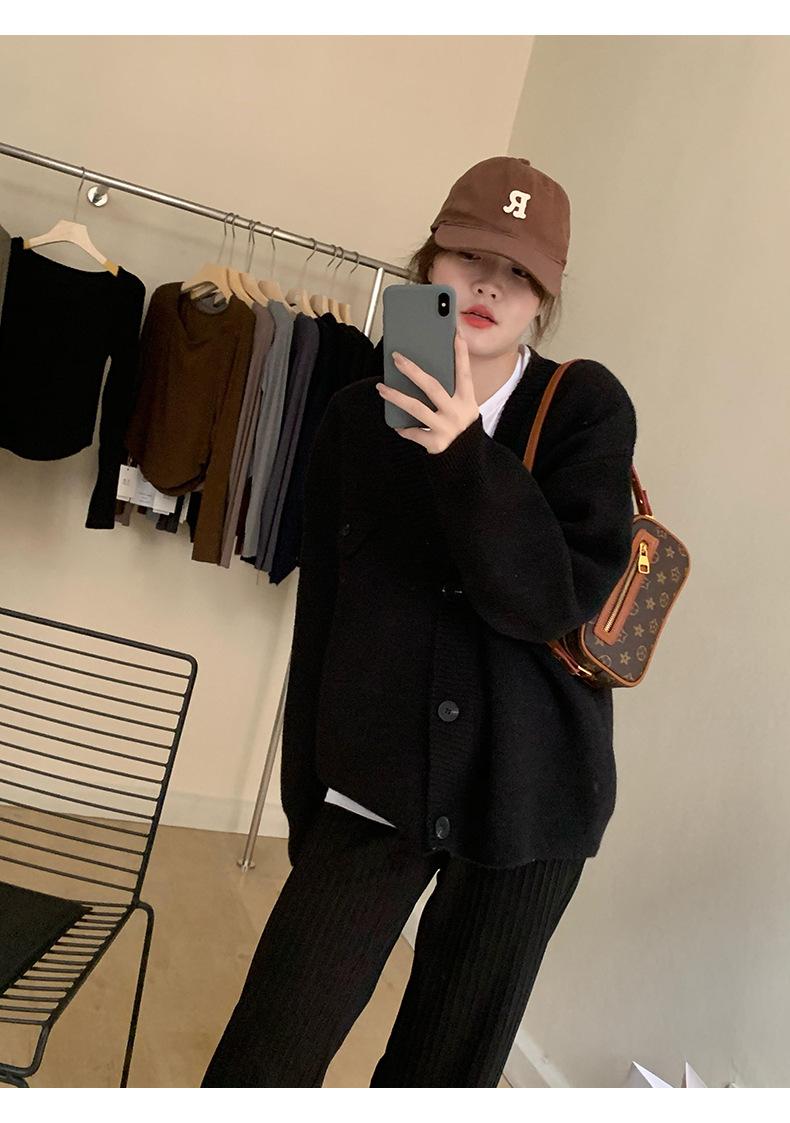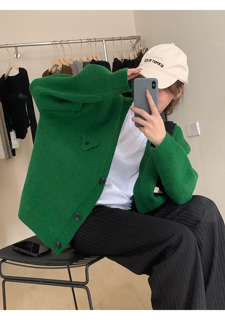 Suéter de Bolsillo Triangular Cárdigan Tejido Otoño Invierno Nueva Moda Diseño Versátil Chaqueta de Manga Larga Top Base para Mujer