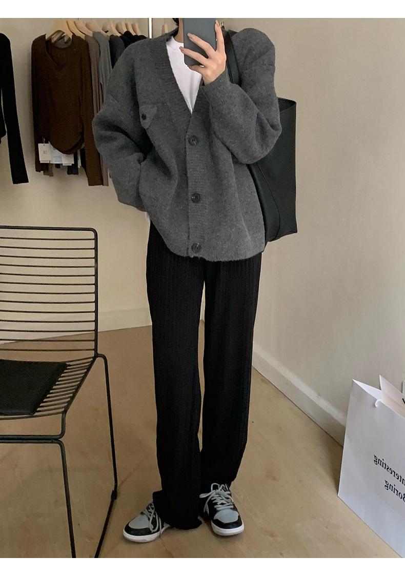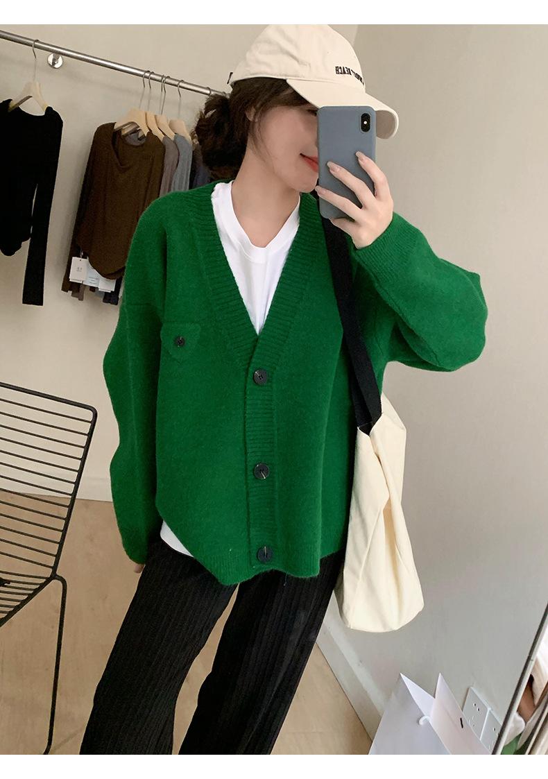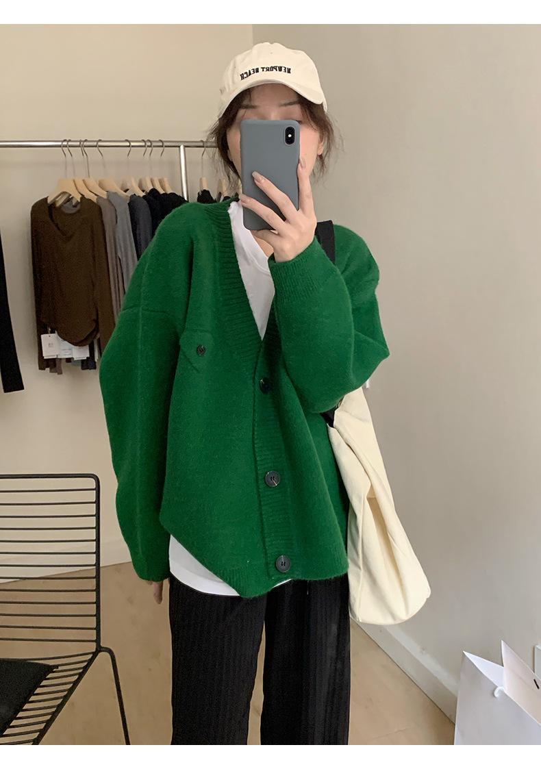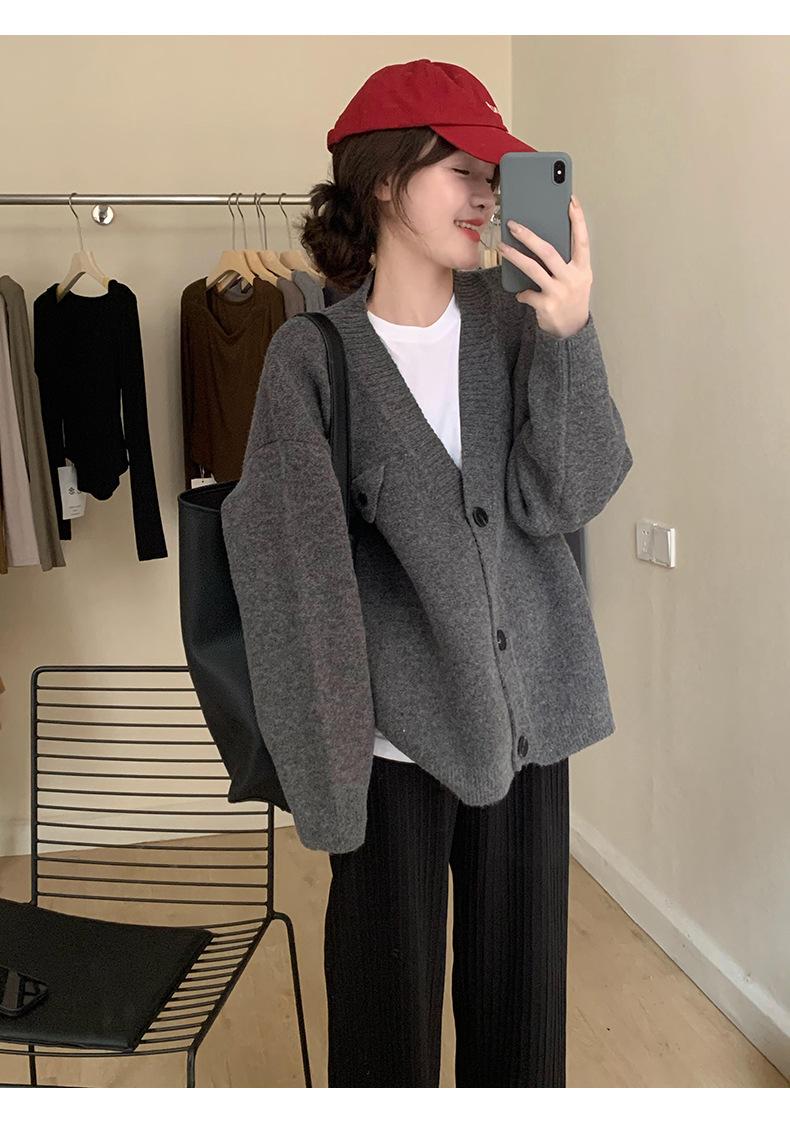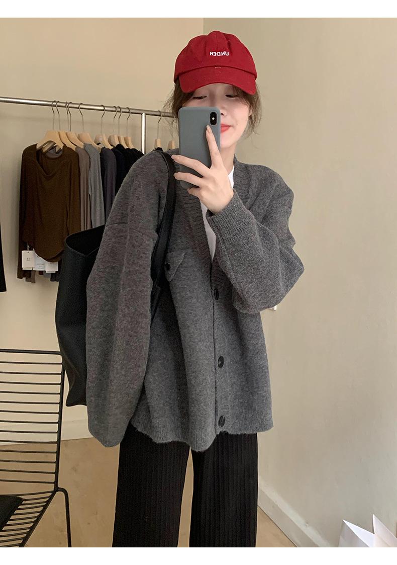 Suéter de Bolsillo Triangular Cárdigan Tejido Otoño Invierno Nueva Moda Diseño Versátil Chaqueta de Manga Larga Top Base para Mujer