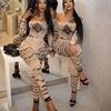 Ropa de mujer estilo europeo y americano con estampado de tigre, escote en V bajo sexy, cintura adelgazante, orejas de madera, chaleco pequeño |