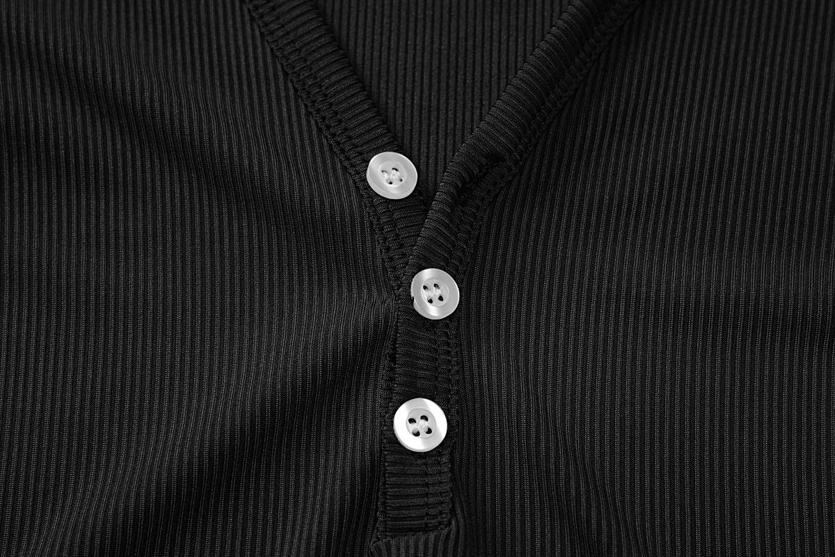 Ropa de mujer de estilo europeo y americano, primavera 2025, nuevo estilo, moda, temperamento, decoración de botones de metal, cuello redondo, manga corta, vestido corto |