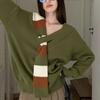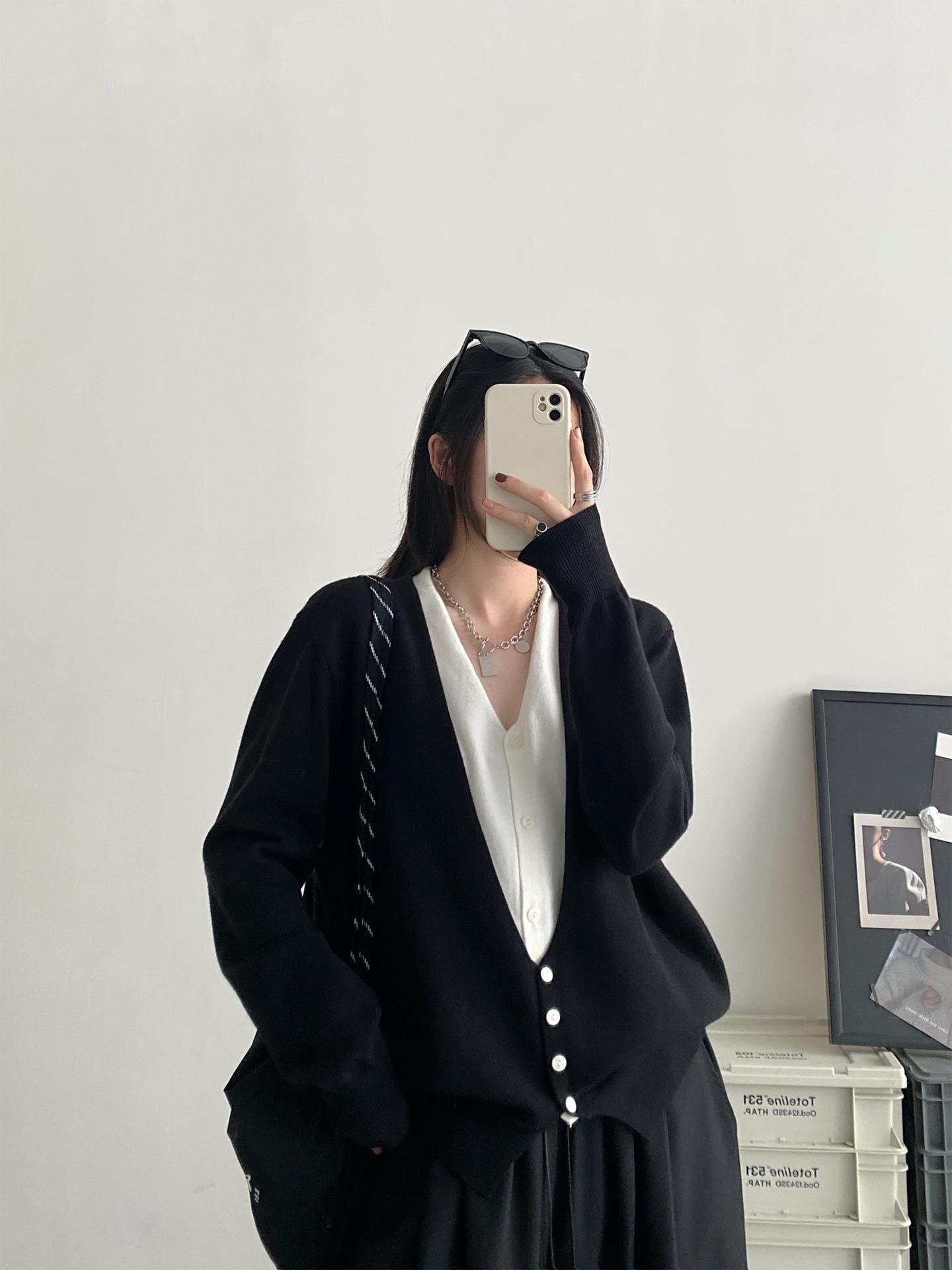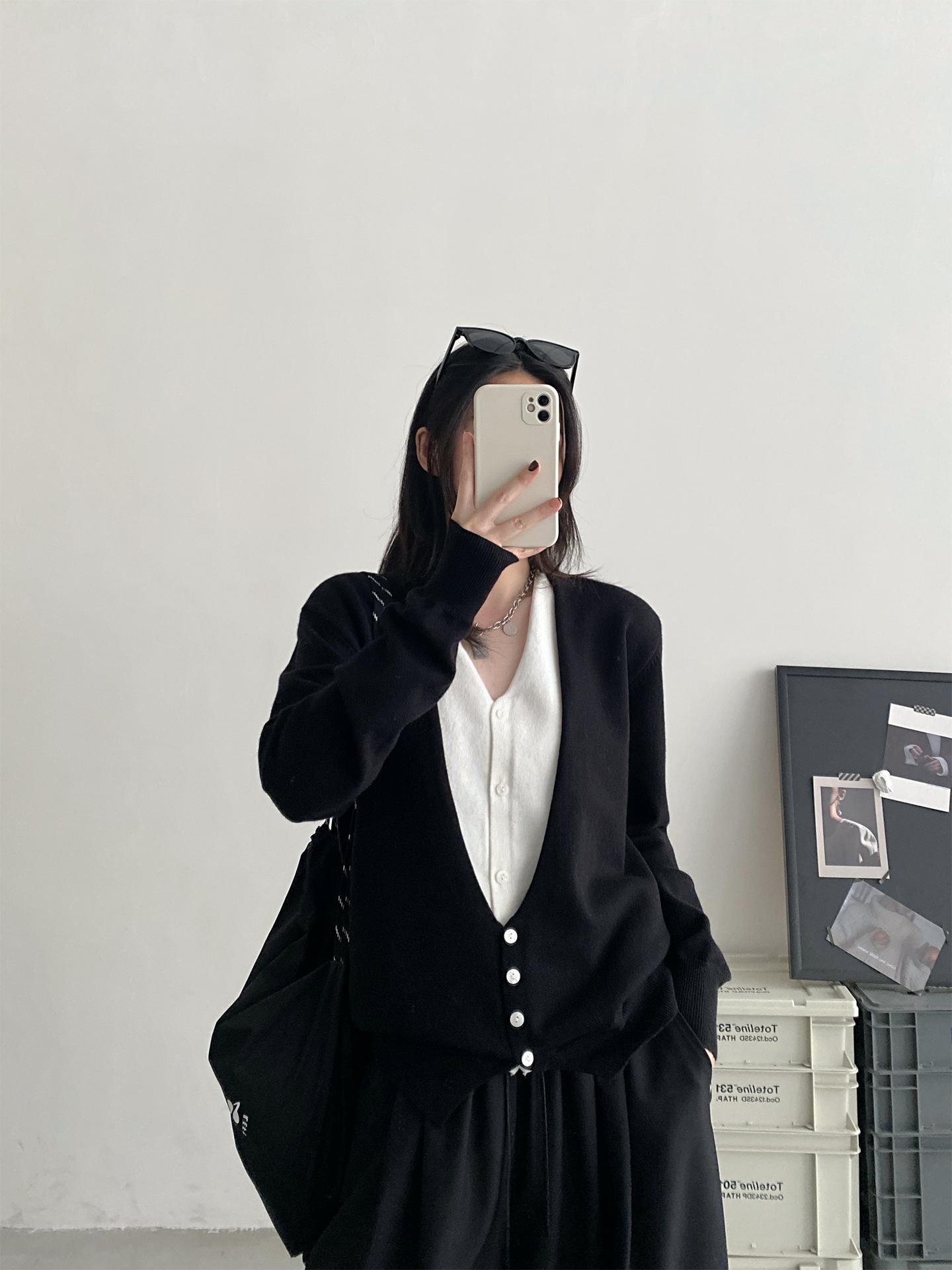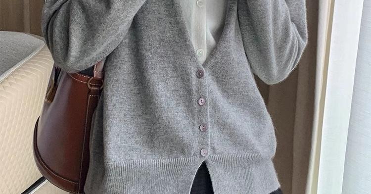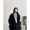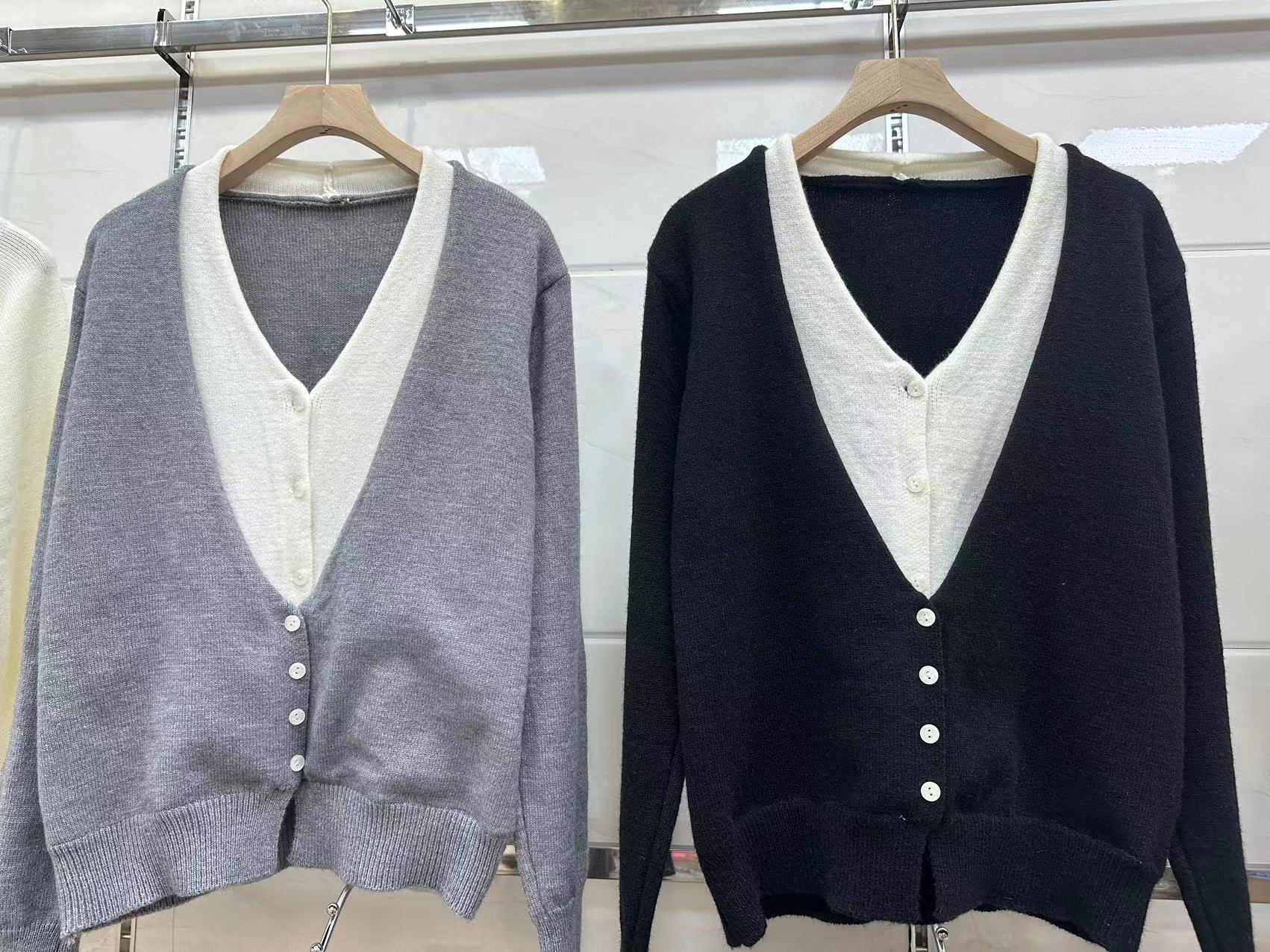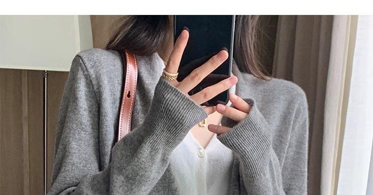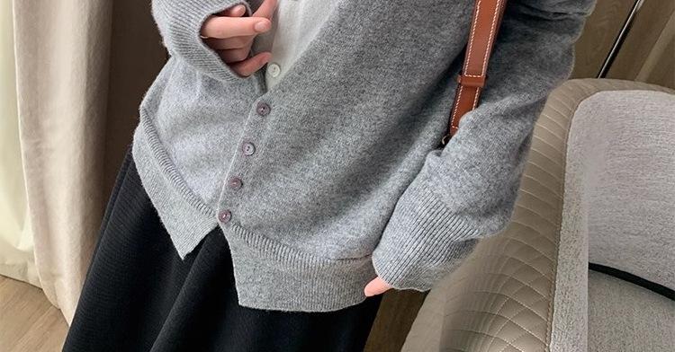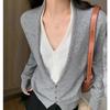 Cárdigan de punto gris falso de dos piezas con cuello en V Otoño e Invierno Diseño nicho francés suelto corto de manga larga para mujer